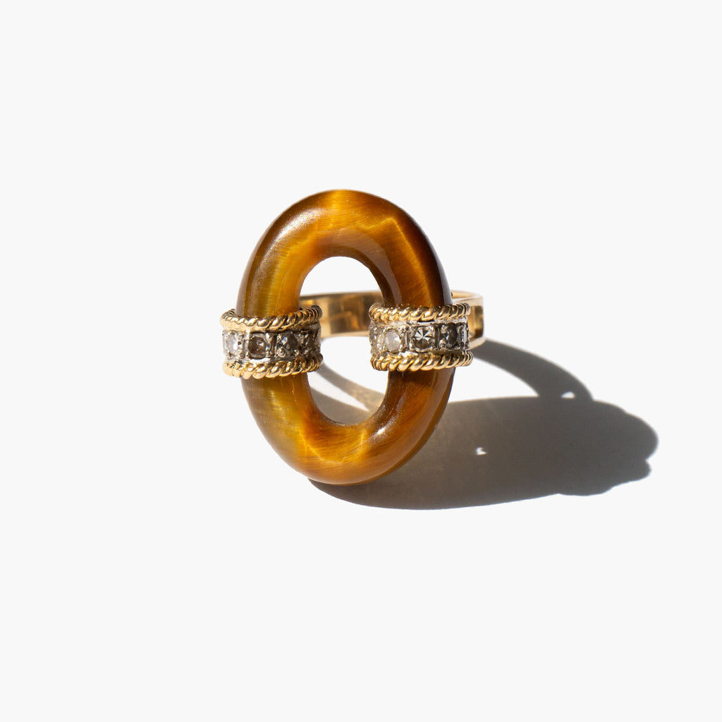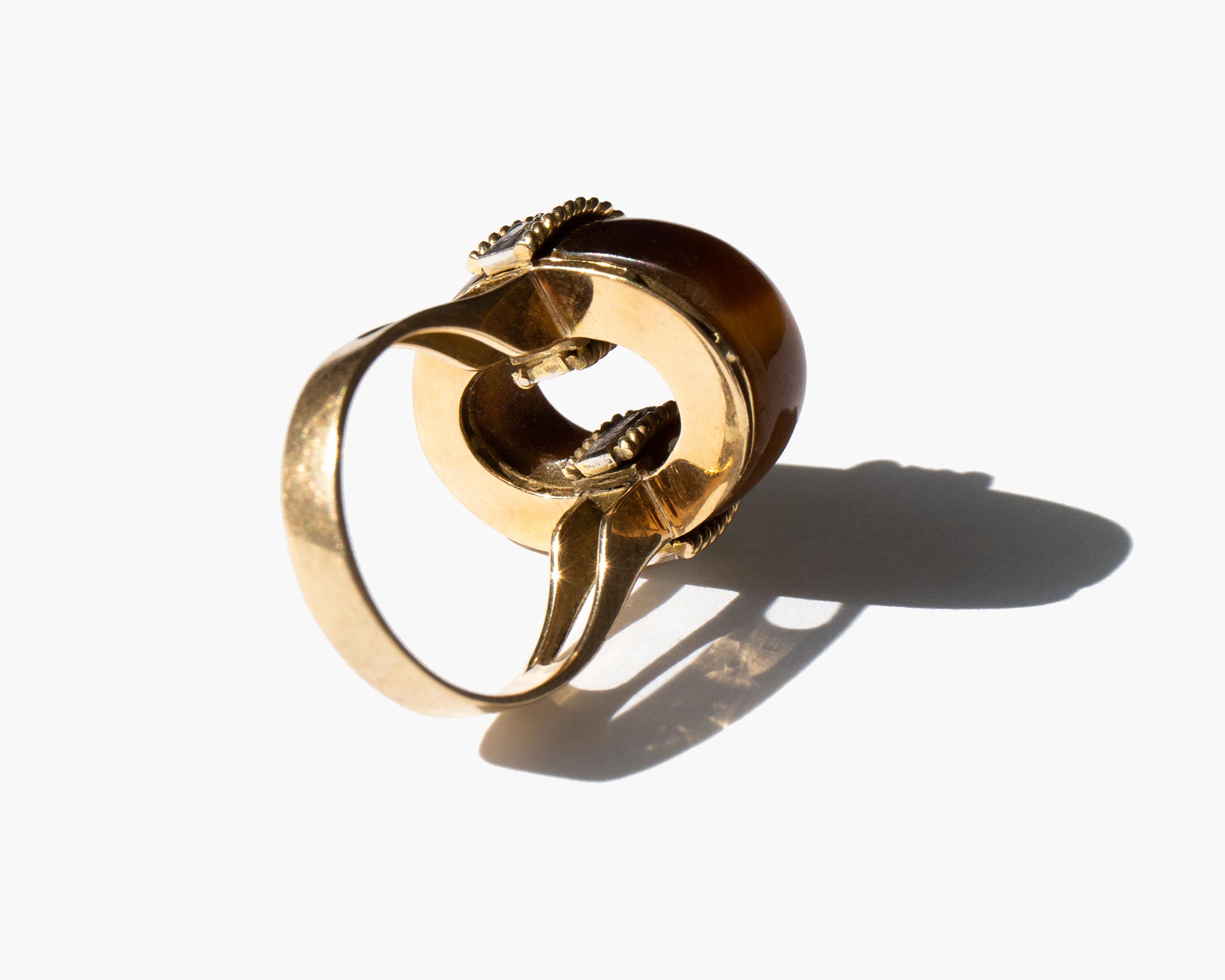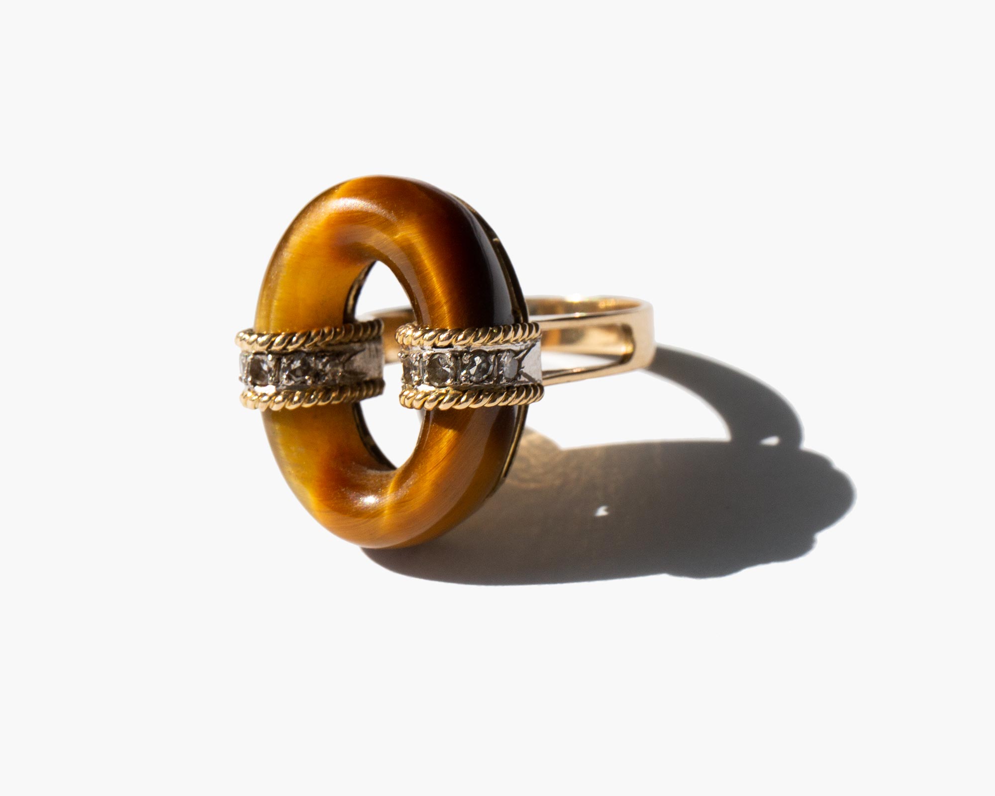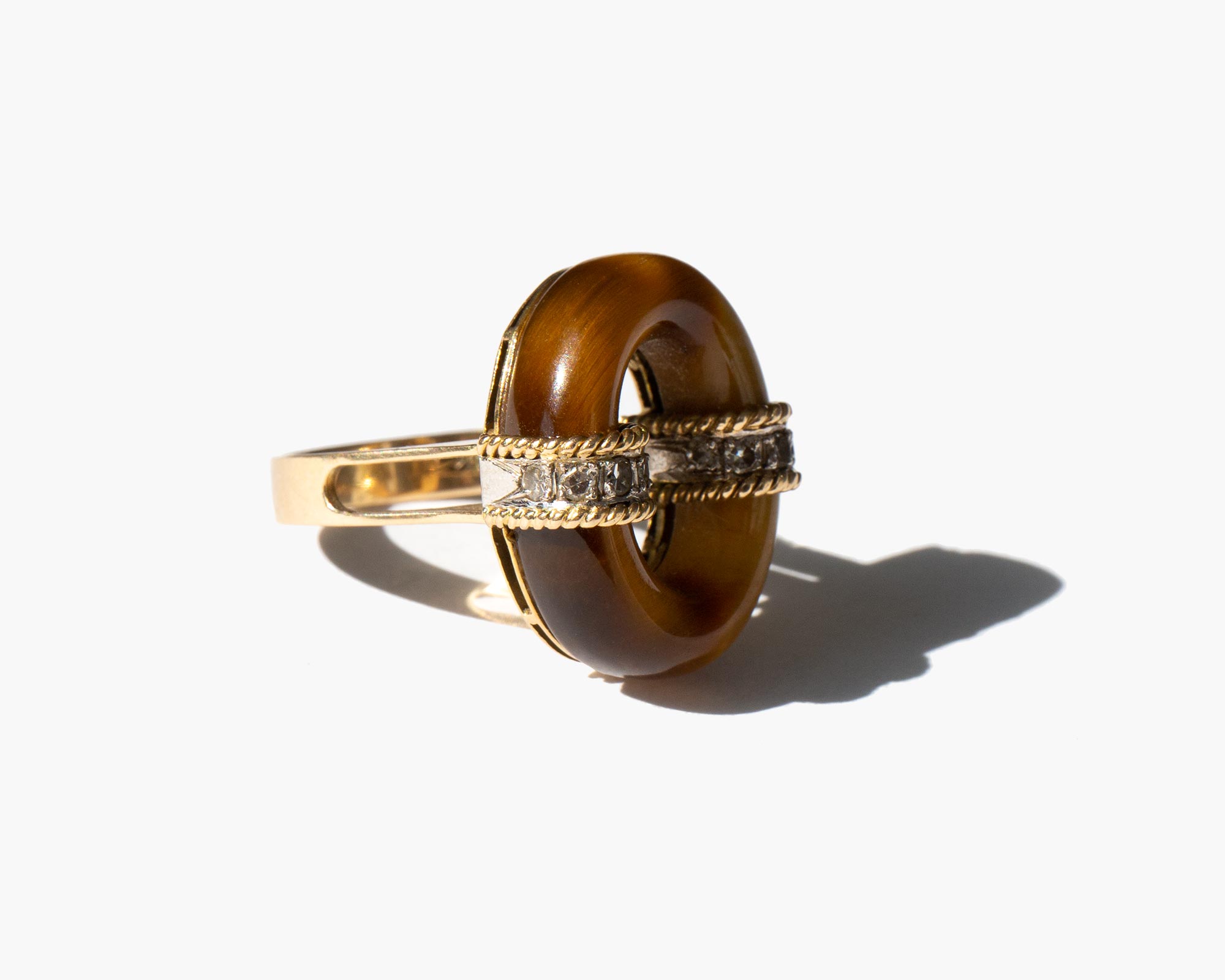 Mid-century 14k gold, tiger's eye, and diamond ring.