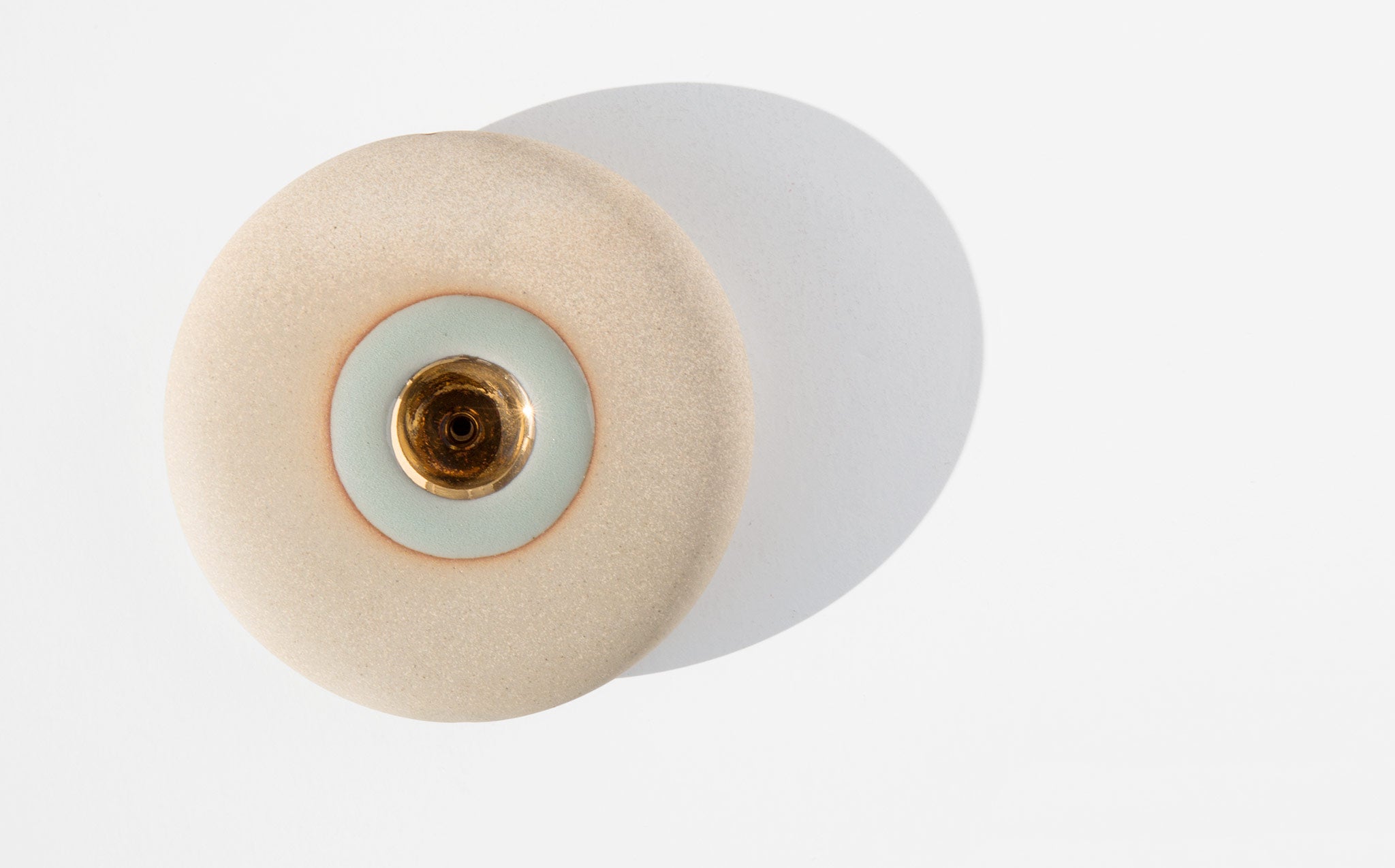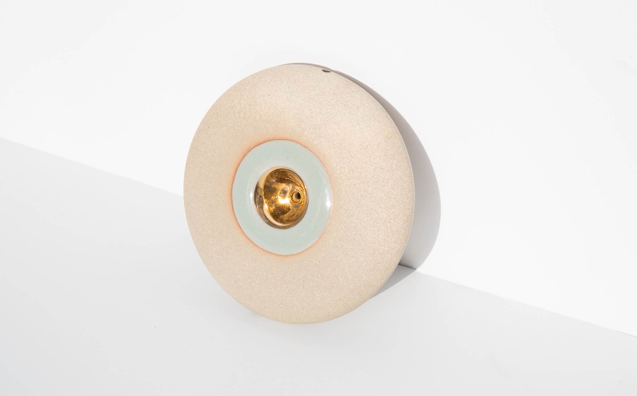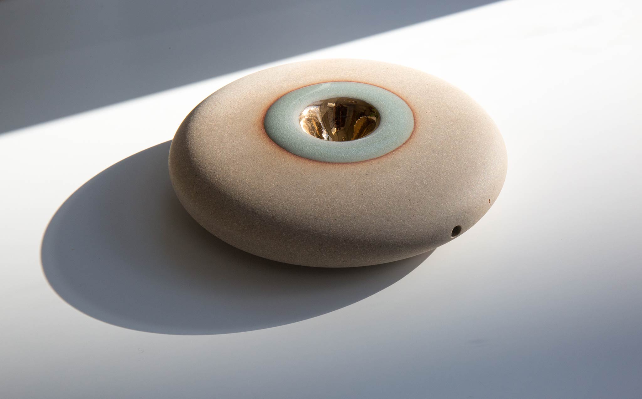 Pronounced nah-vay, spaceship in Spanish, the Miwak Junior Oro Nave is a large disk pipe, handmade of stoneware clay with a celadon glaze and 22K gold bowl.