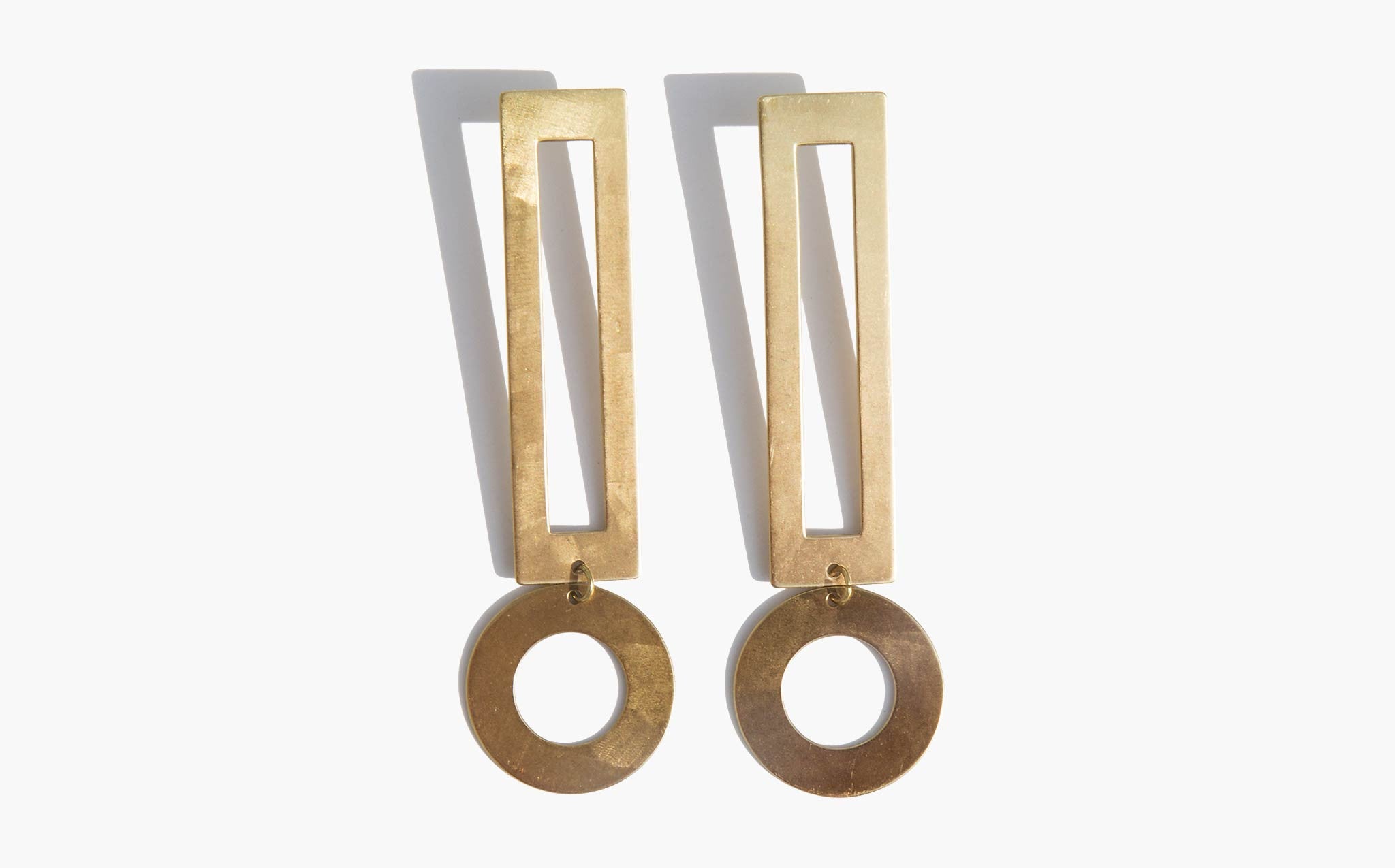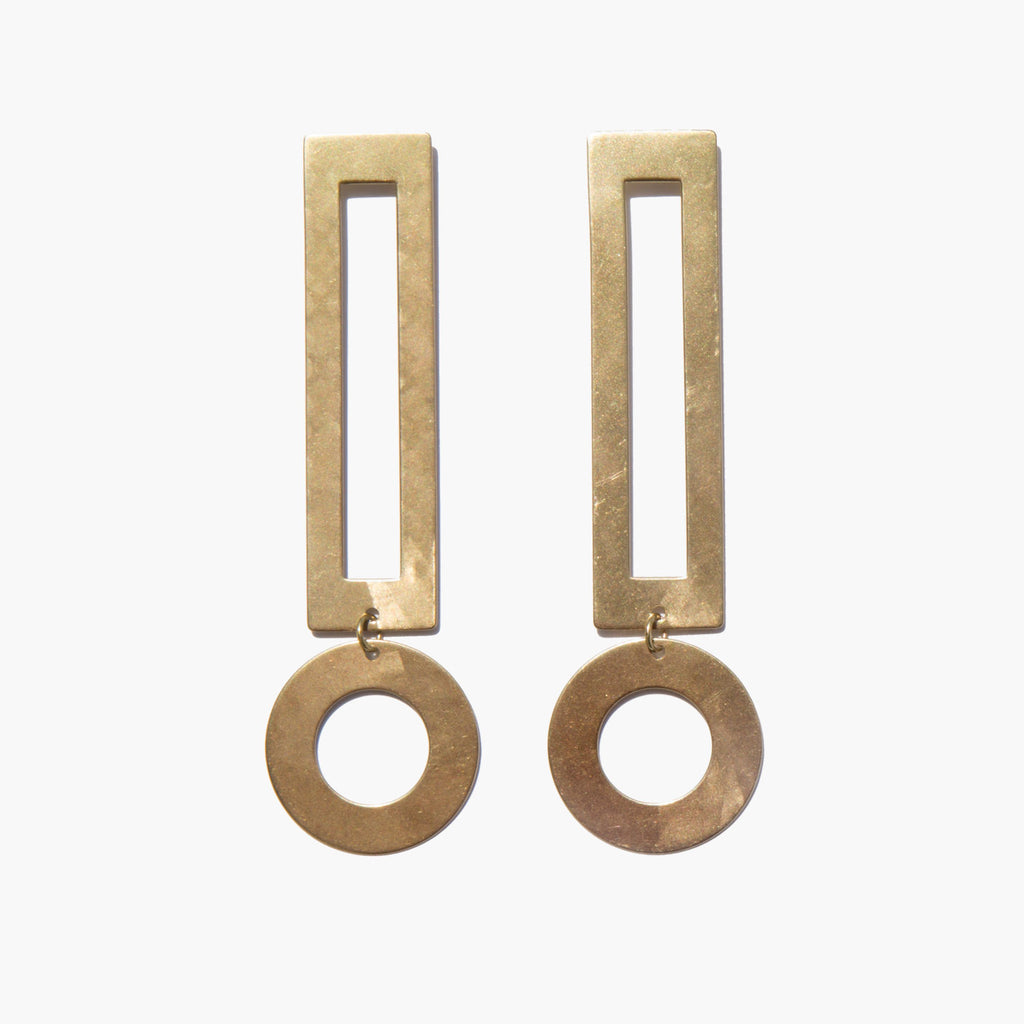 Matte brass statement earrings with sterling Silver posts and ear-nuts.