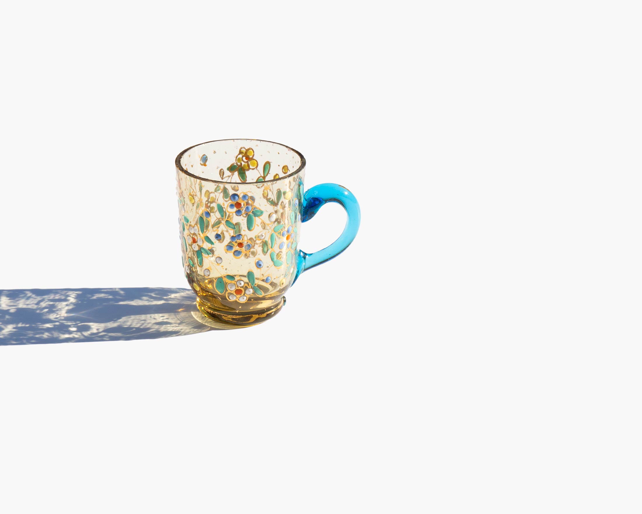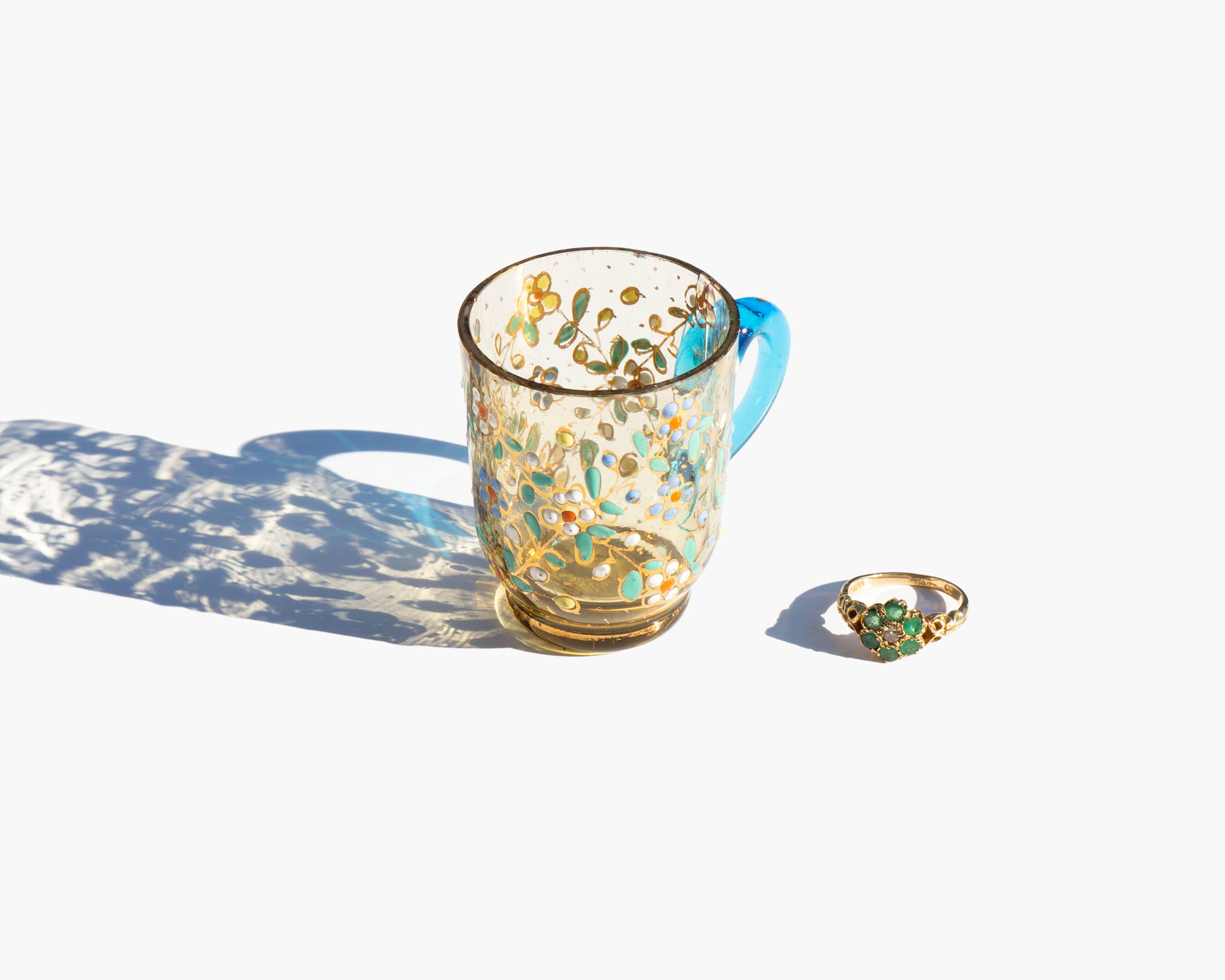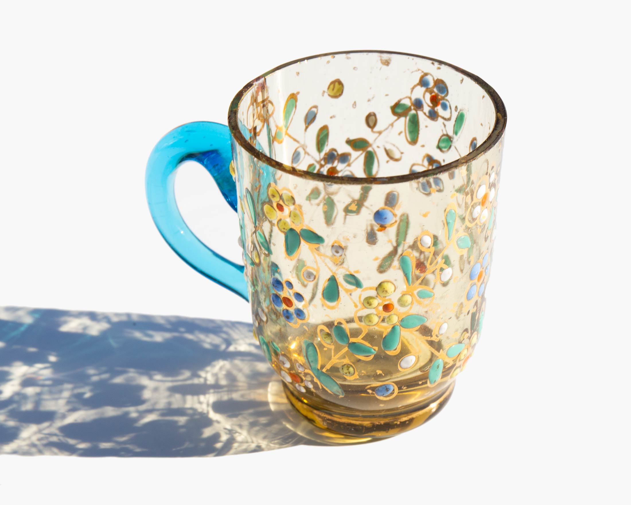 Antique Moser Bohemian glass hand painted vanity cup with handle.