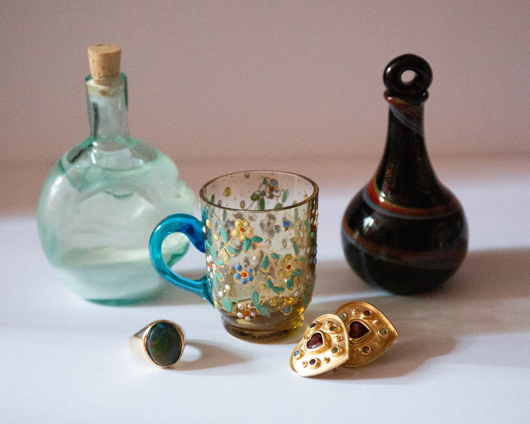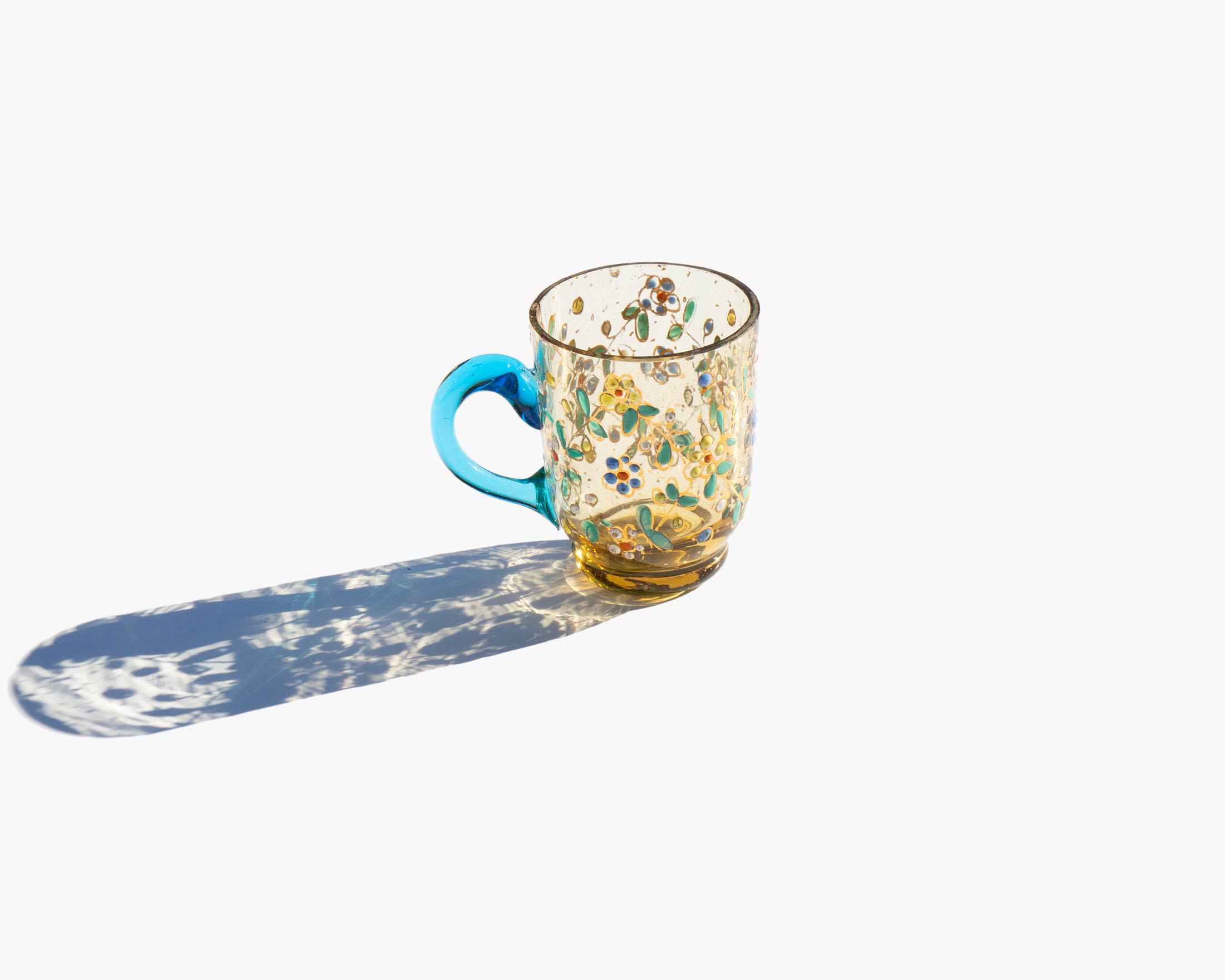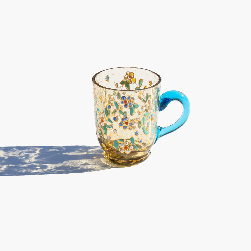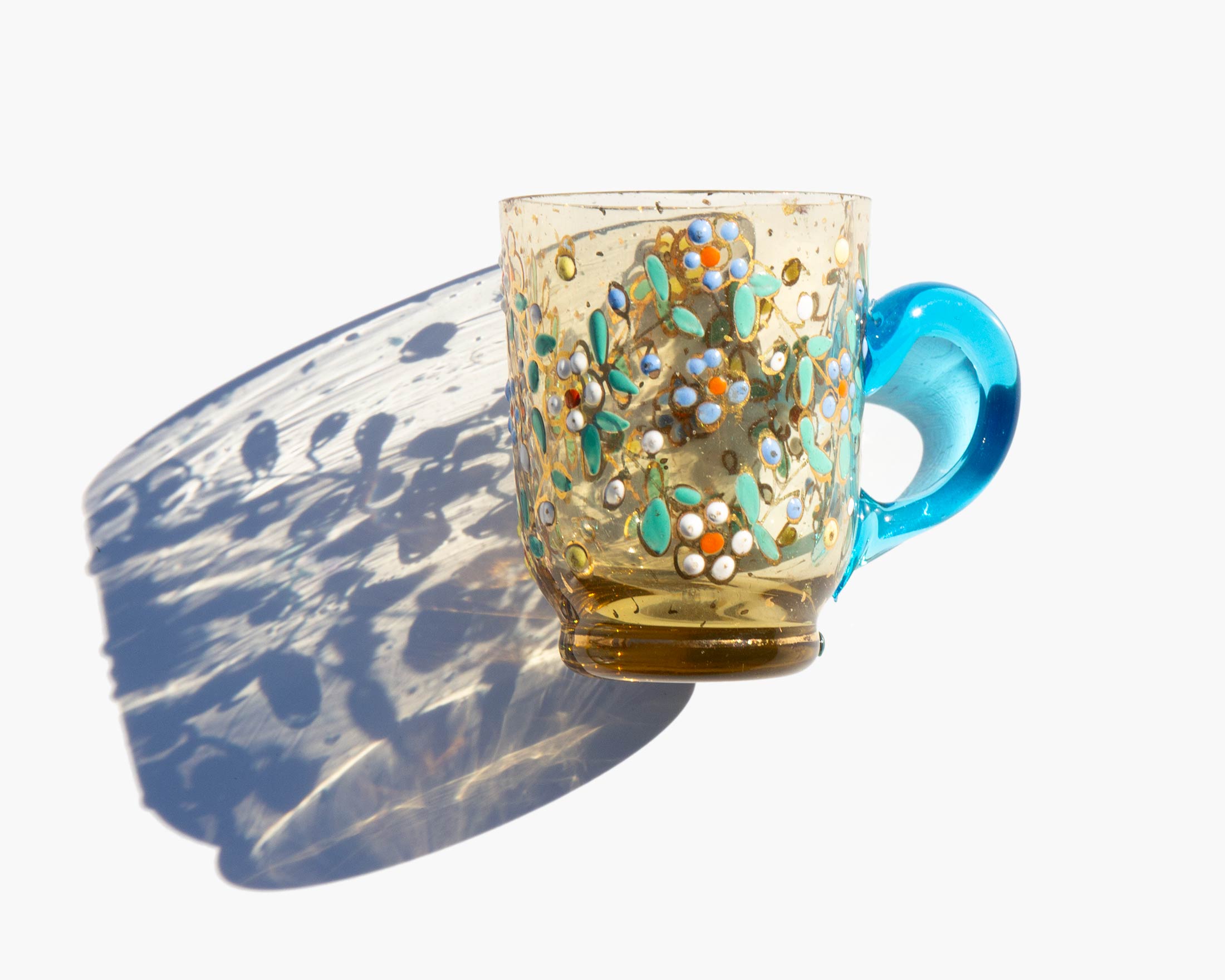 Antique Moser Bohemian glass hand painted vanity cup with handle.