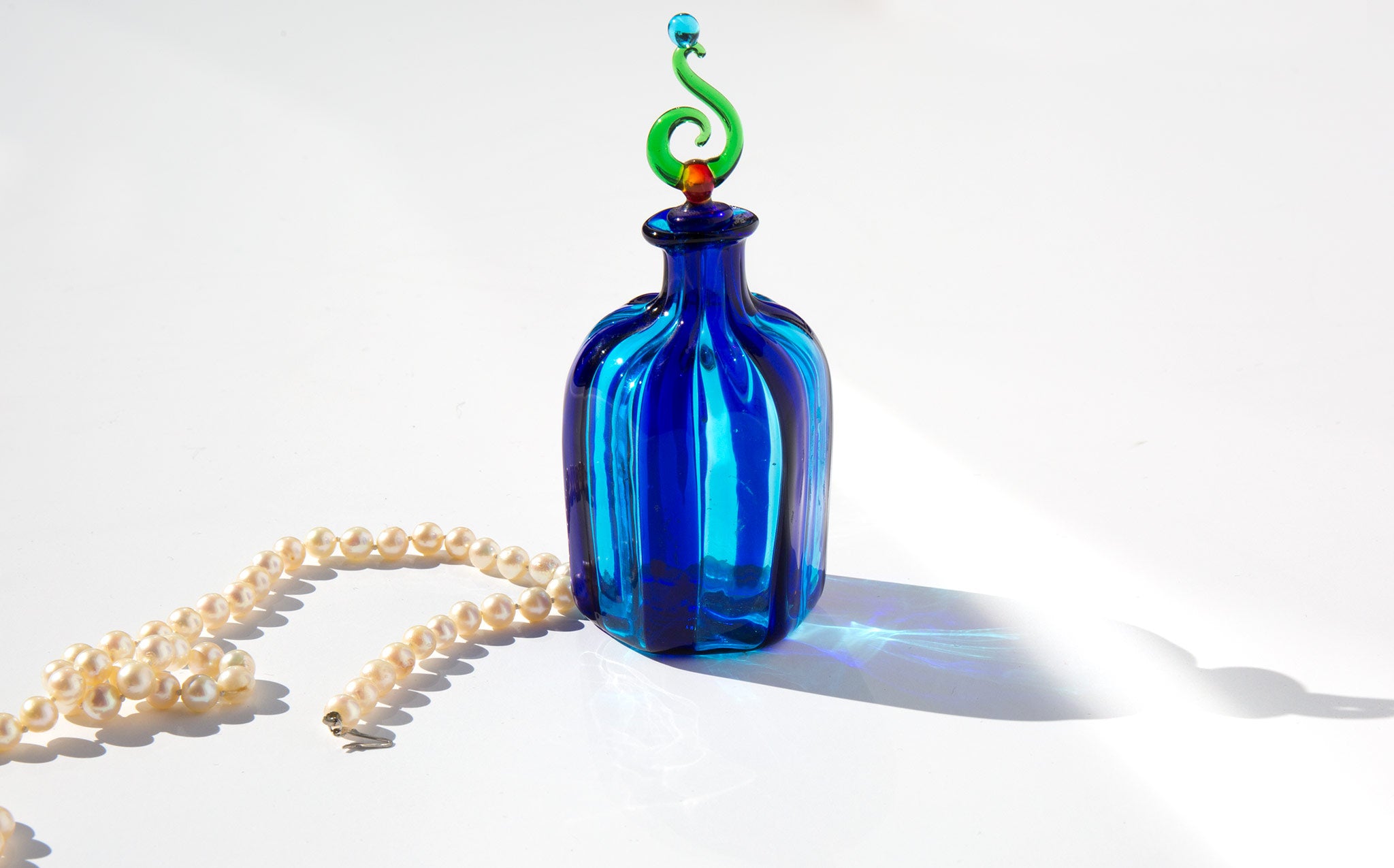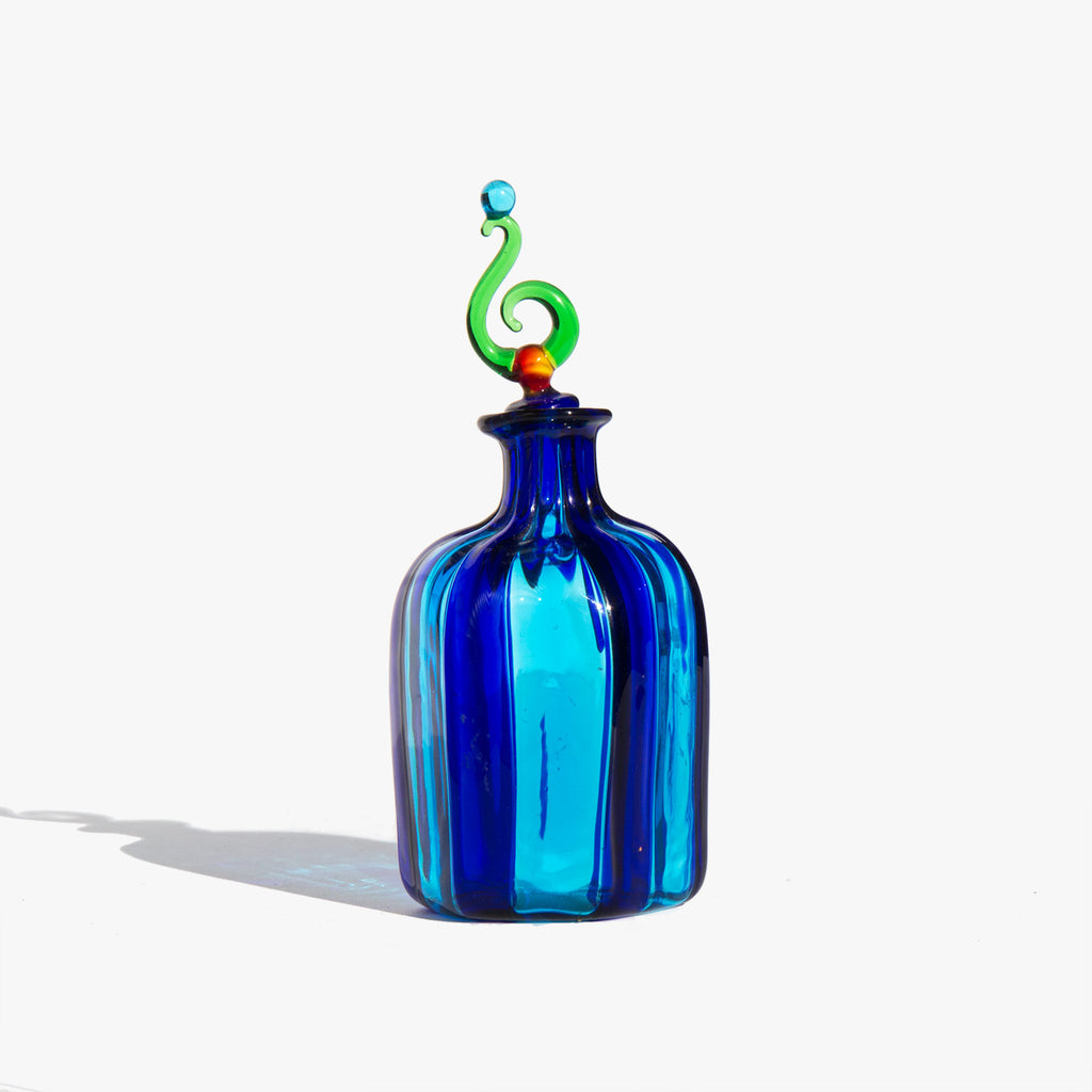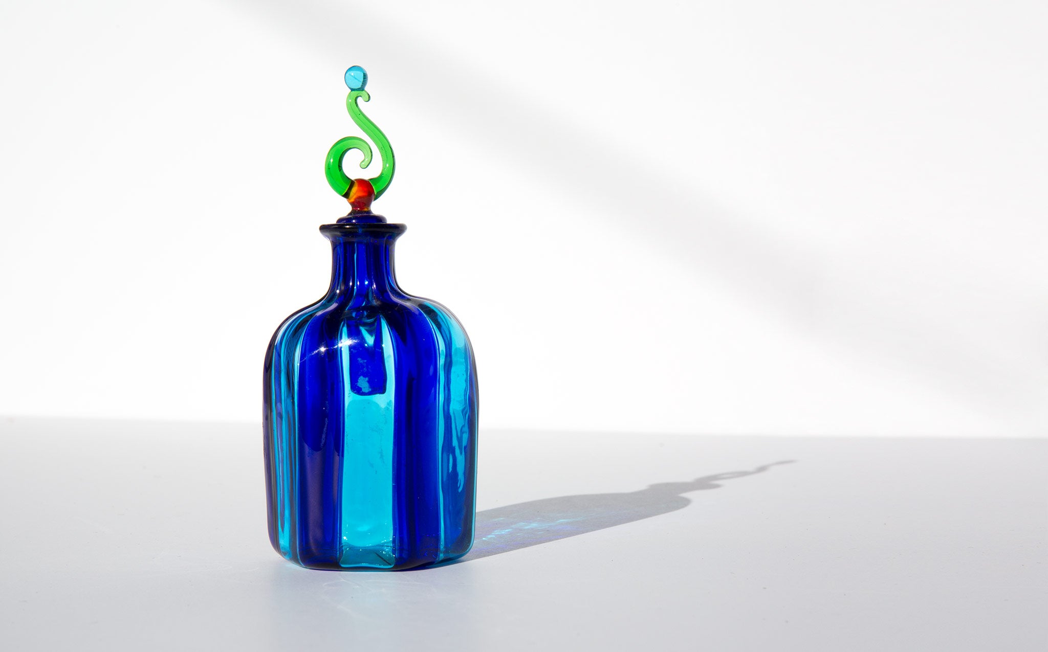 Incredibly colored, hand blown, Italian murano glass perfume bottle.