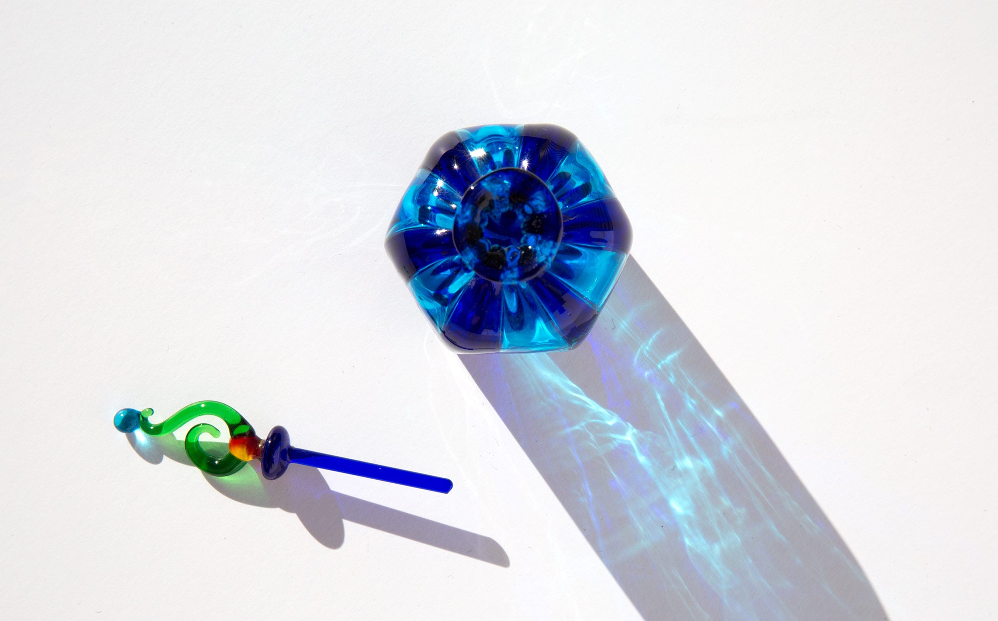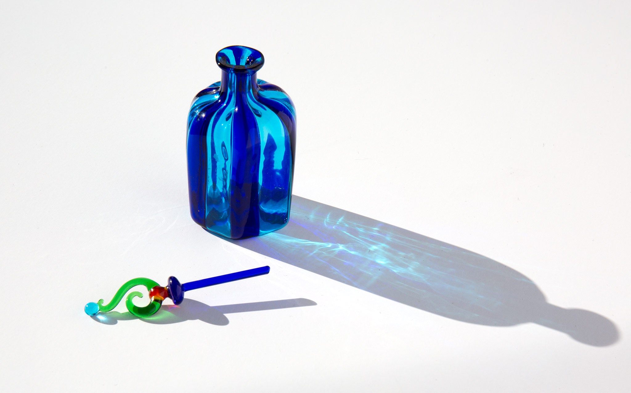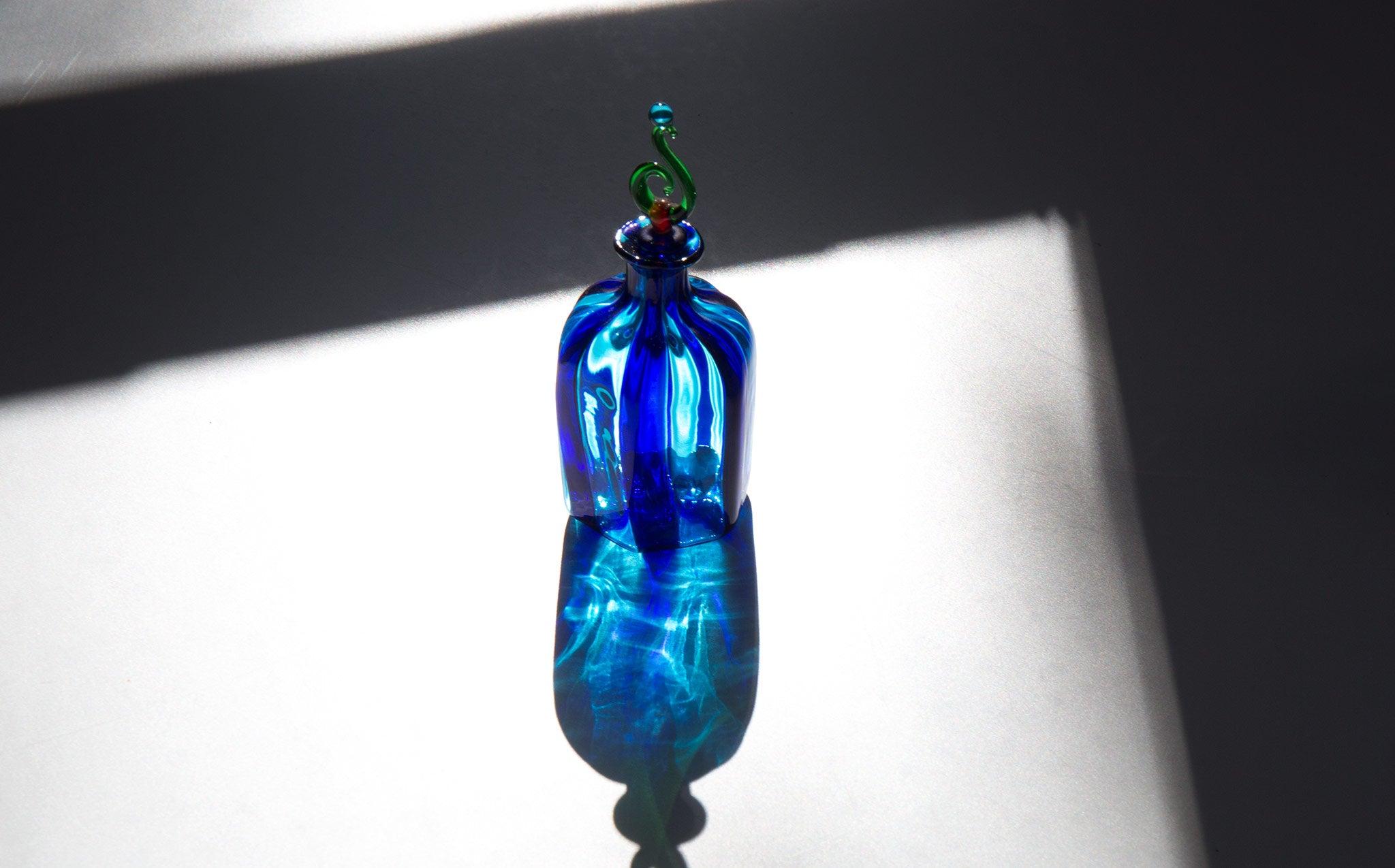 Incredibly colored, hand blown, Italian murano glass perfume bottle.