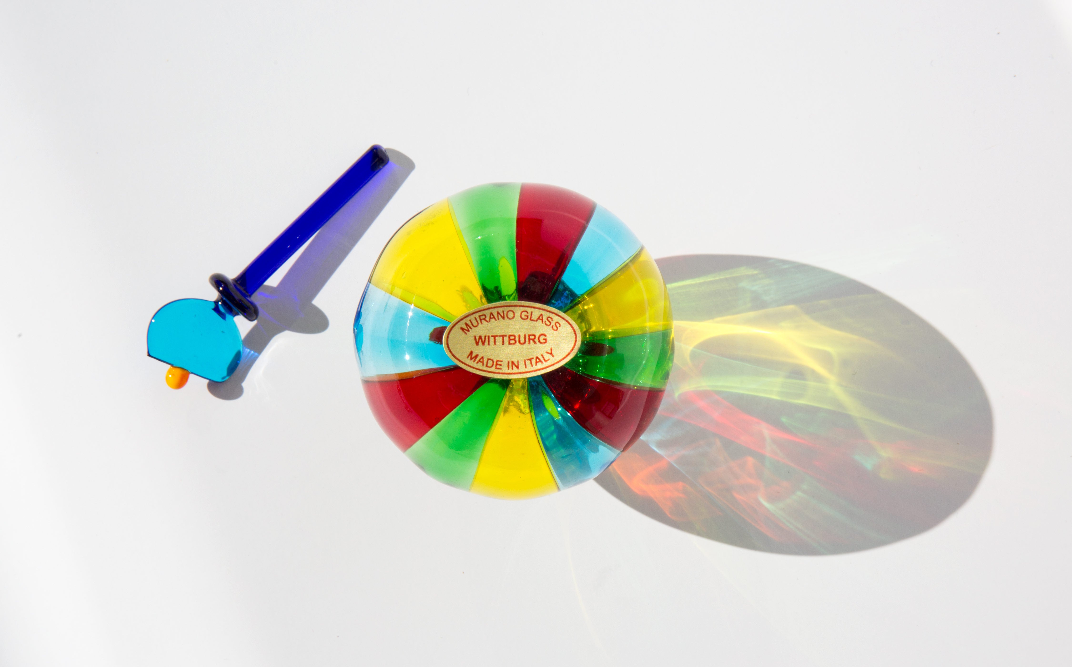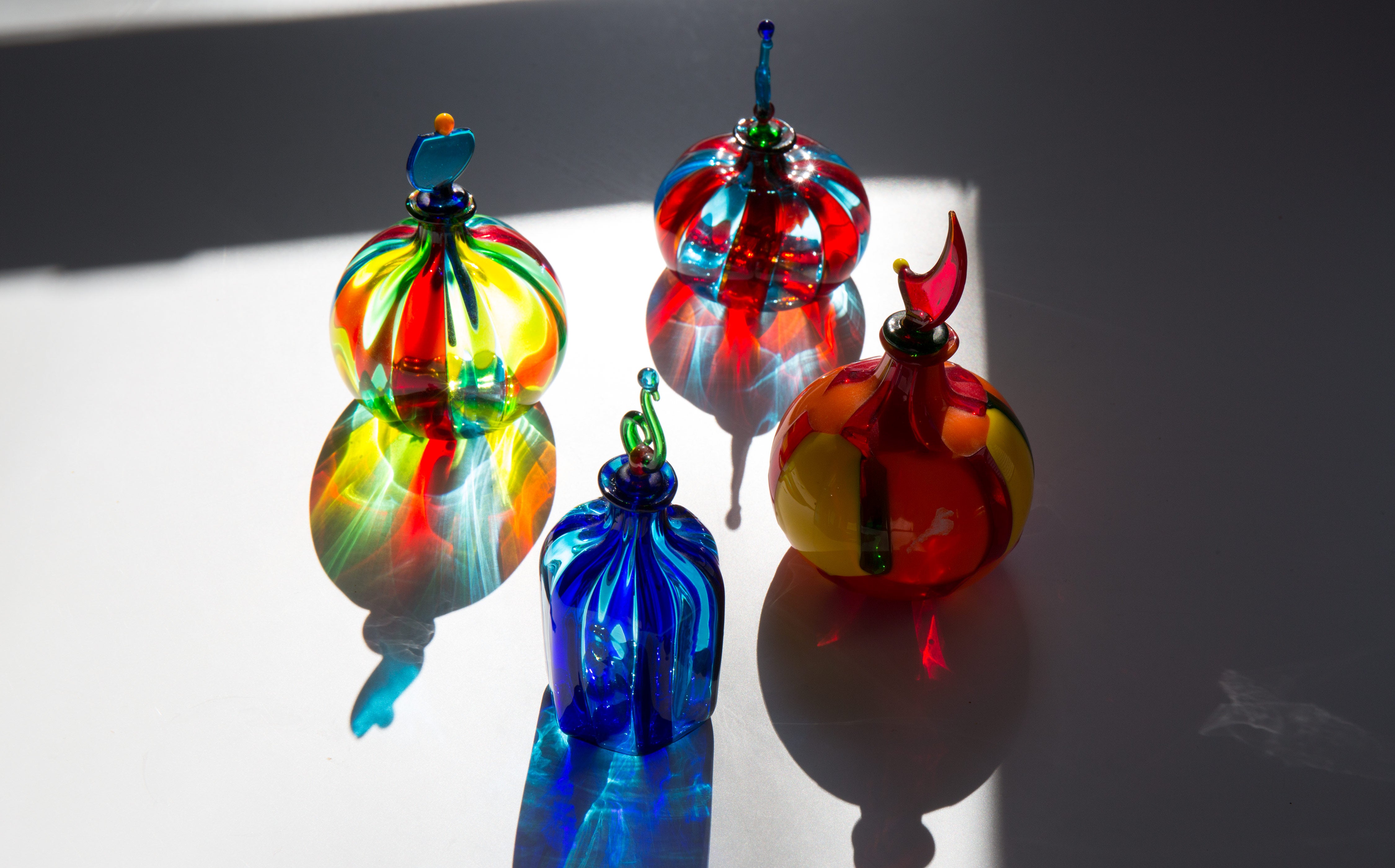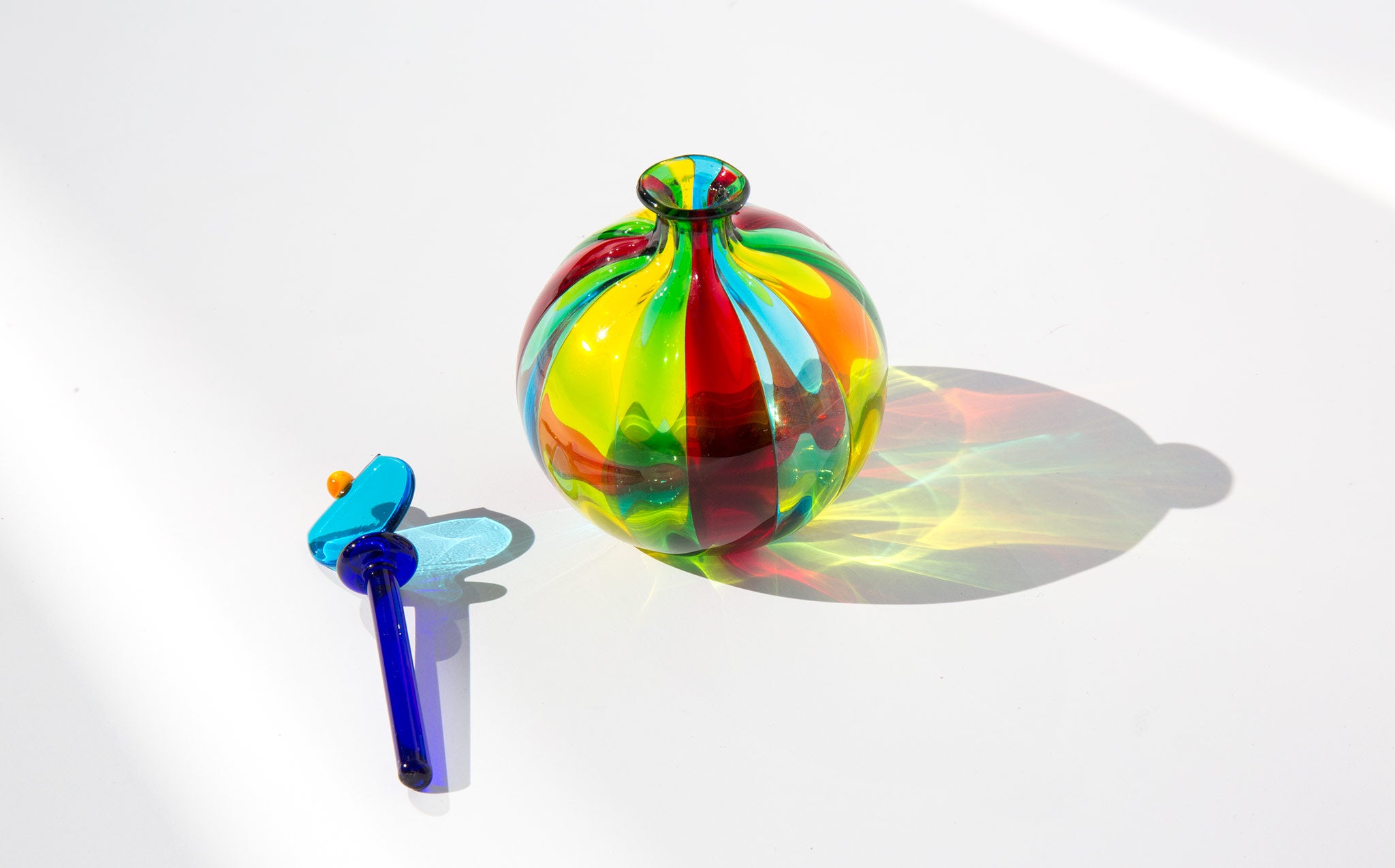 Incredibly colored, hand blown, Italian murano glass perfume bottle.
