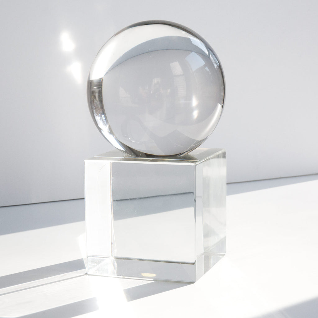 A beautifully solid and weighty, vintage Murano glass orb on a square base, made by hand in Italy. Some believe that one's past, present and future can be seen within a clear glass orb. An amazing piece for self reflection before entering into a new year.