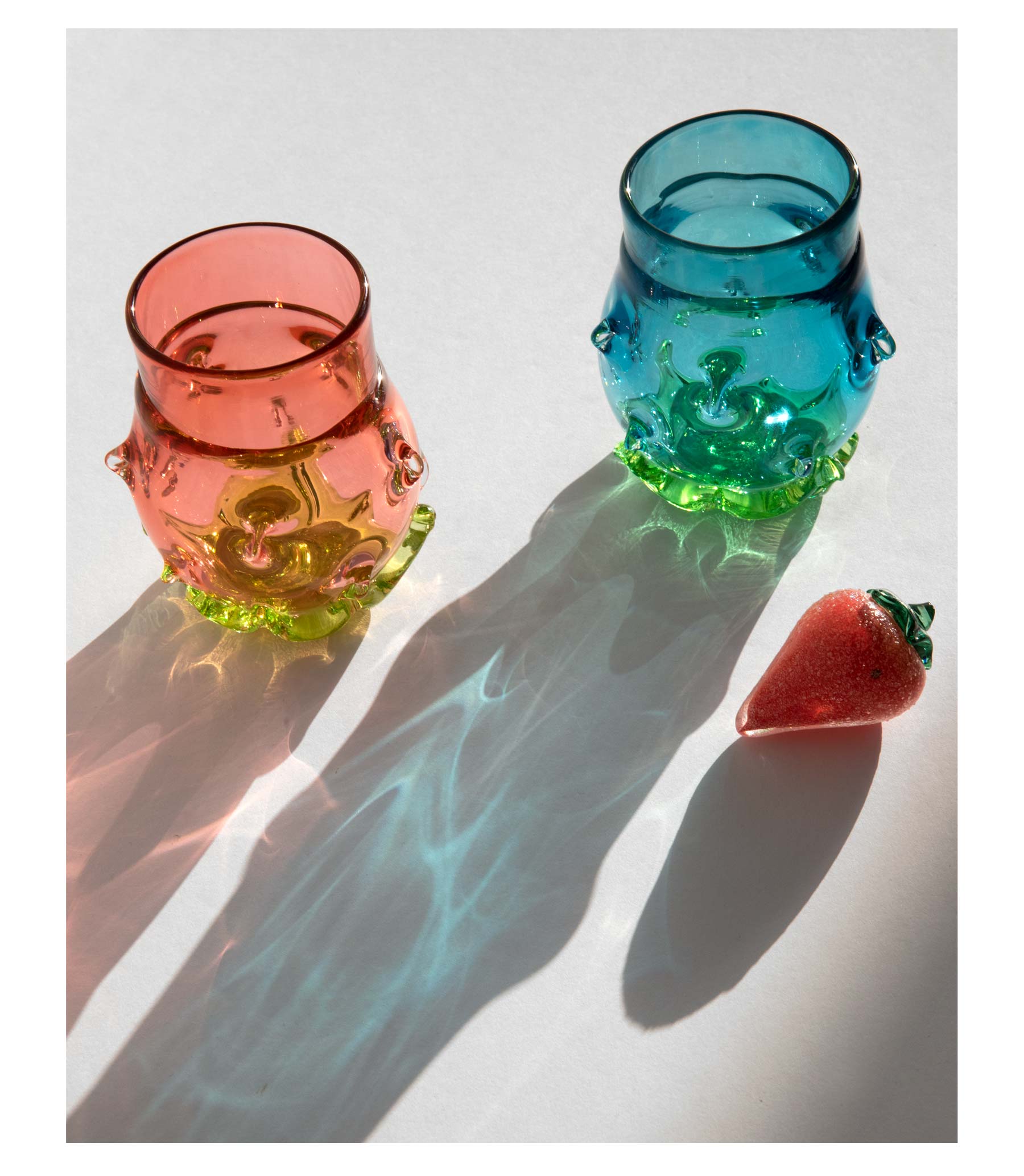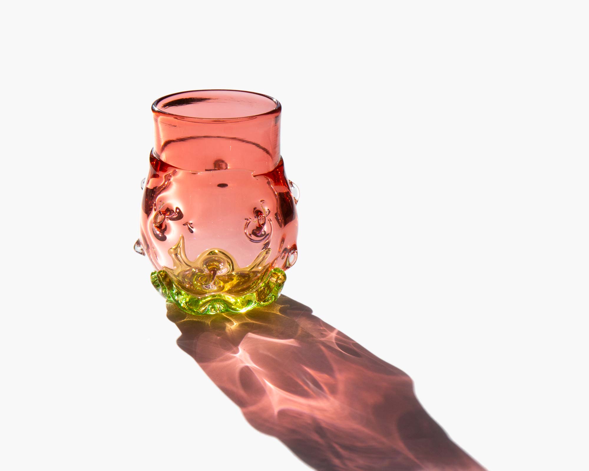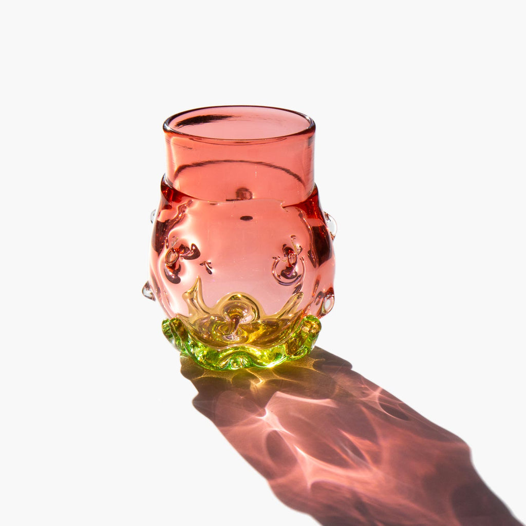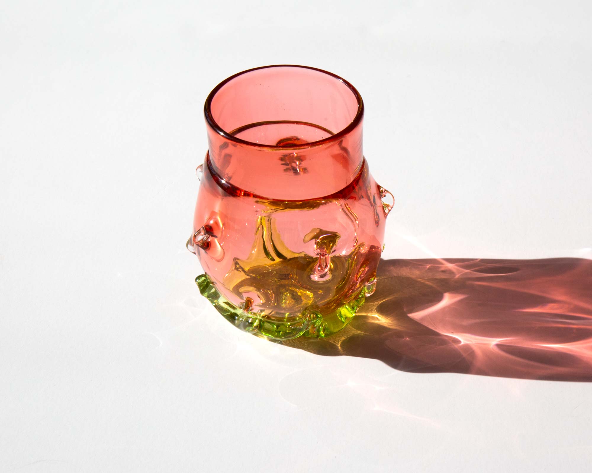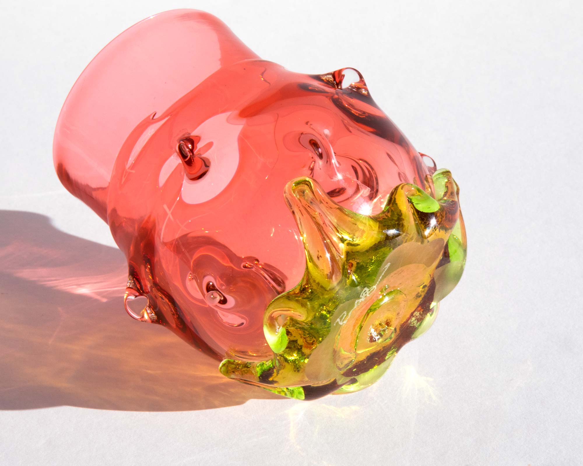 Sculptural hand blown glass flower tumbler, signed by the artist.