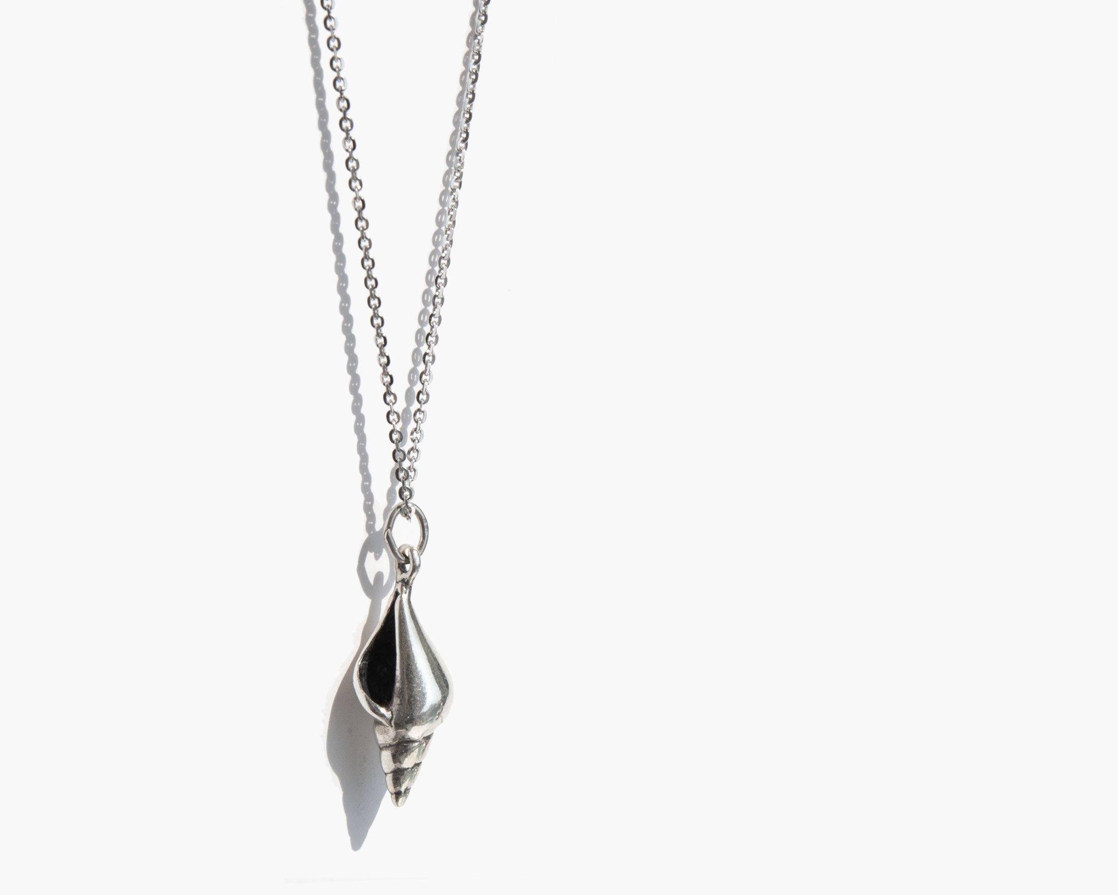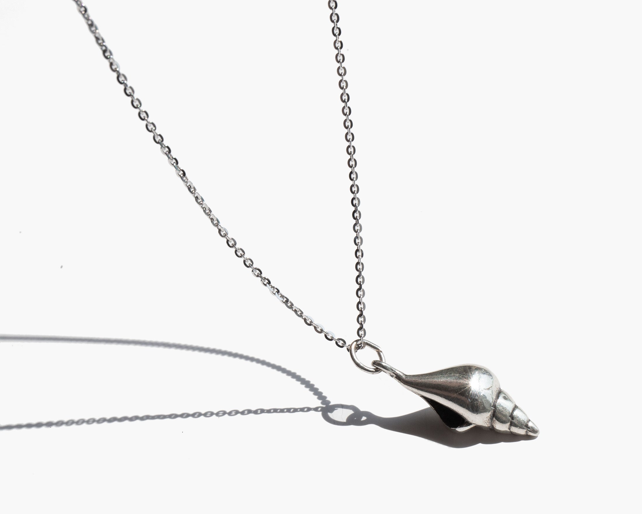 Italian sterling silver cable chain with a sterling silver shell pendant.