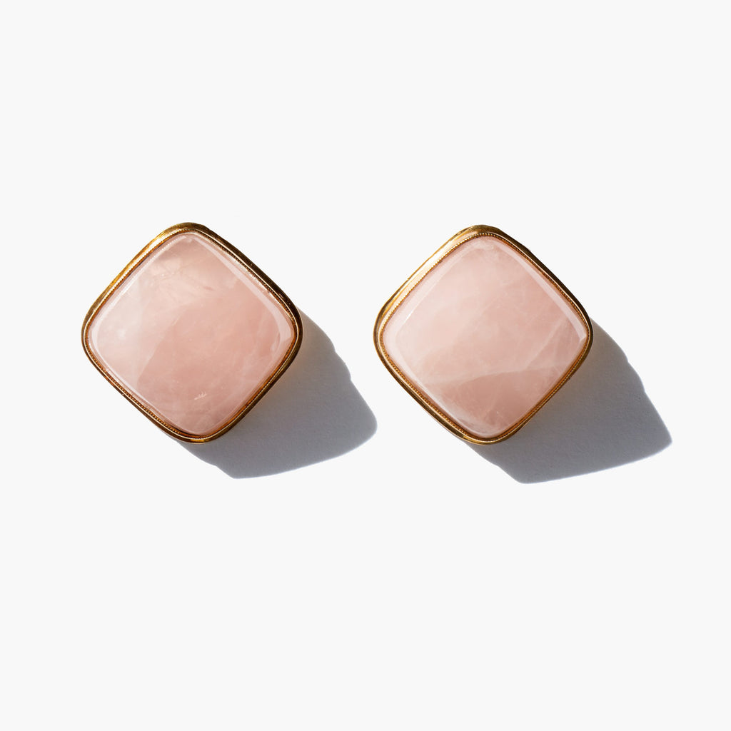 14k gold and rose quartz earrings. One of the most popular crystals in healing, rose quartz is often referred to as the “heart stone,” extolled for its power to attract love and intimacy, as well as its capacity to ease heartbreak and heal emotional wounds. A token of love for centuries, it is thought to facilitate connection, encourage compassion and tenderness, and enhance sensuality.