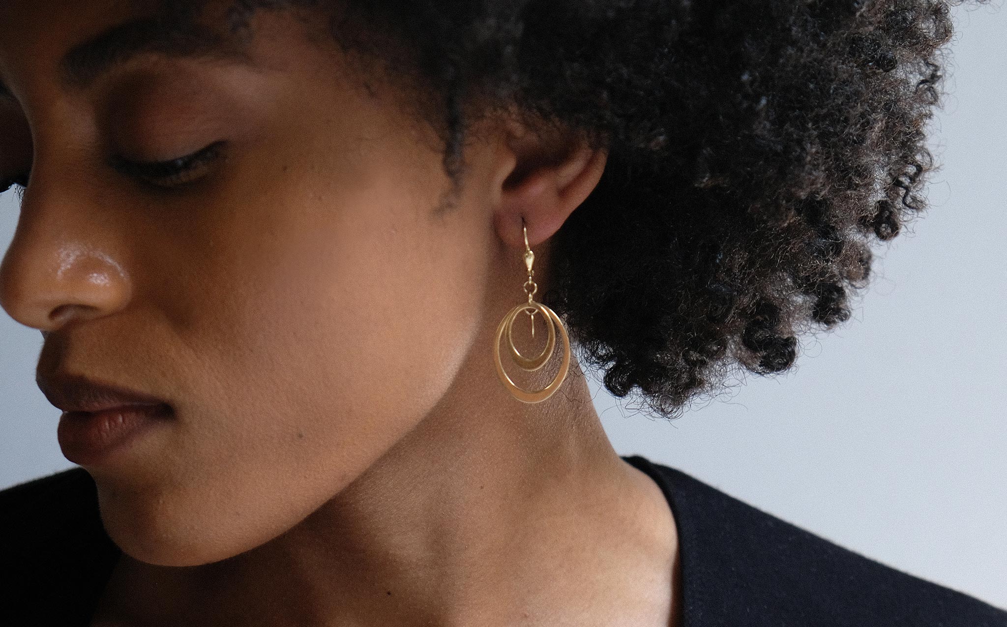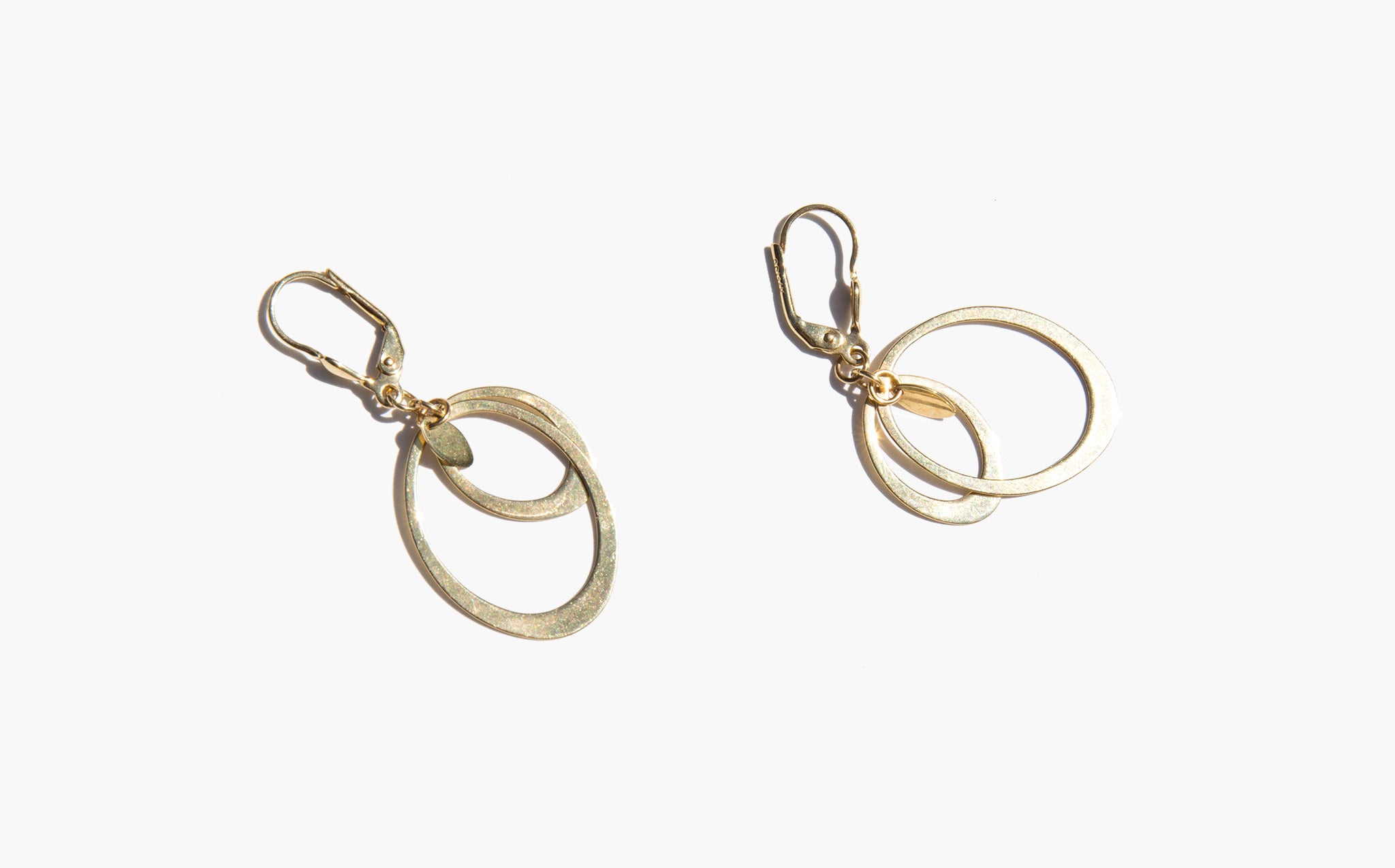 Dangling, overlapping loops of 14k gold.