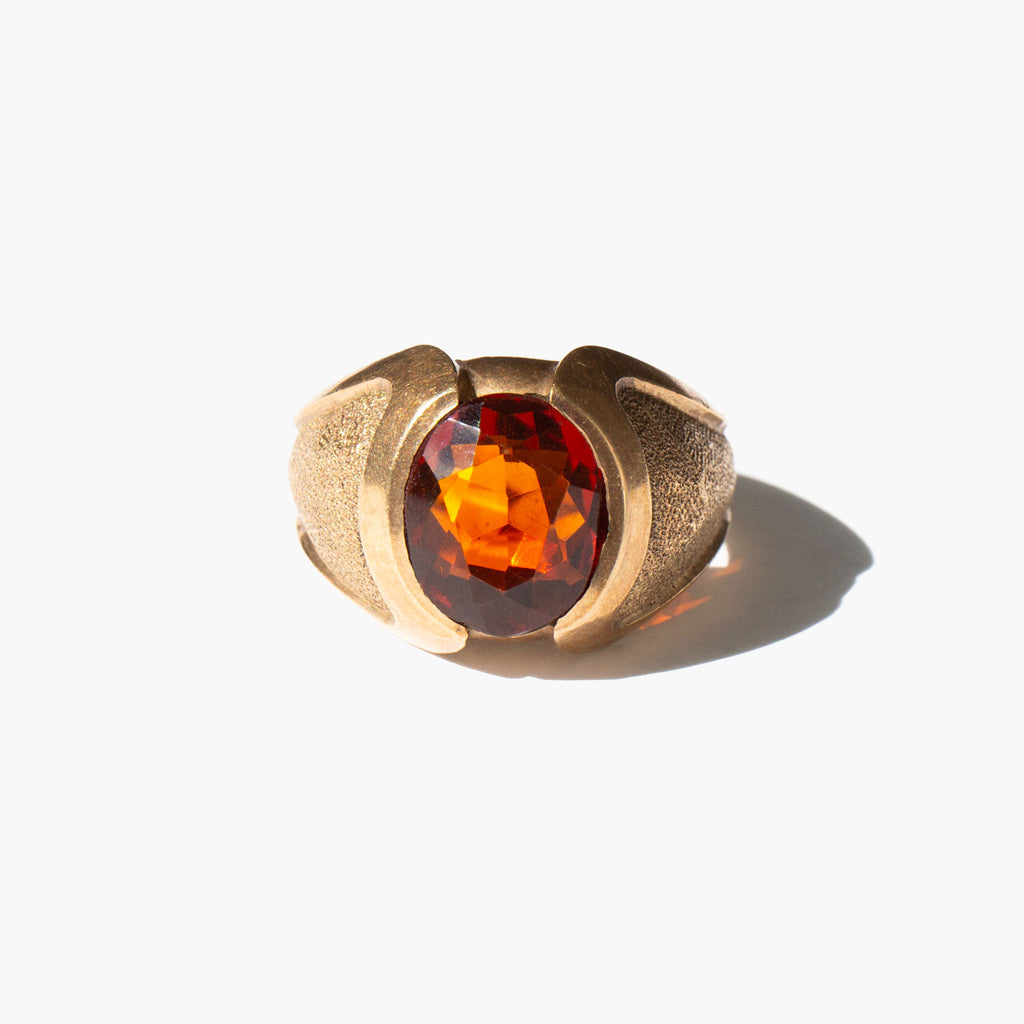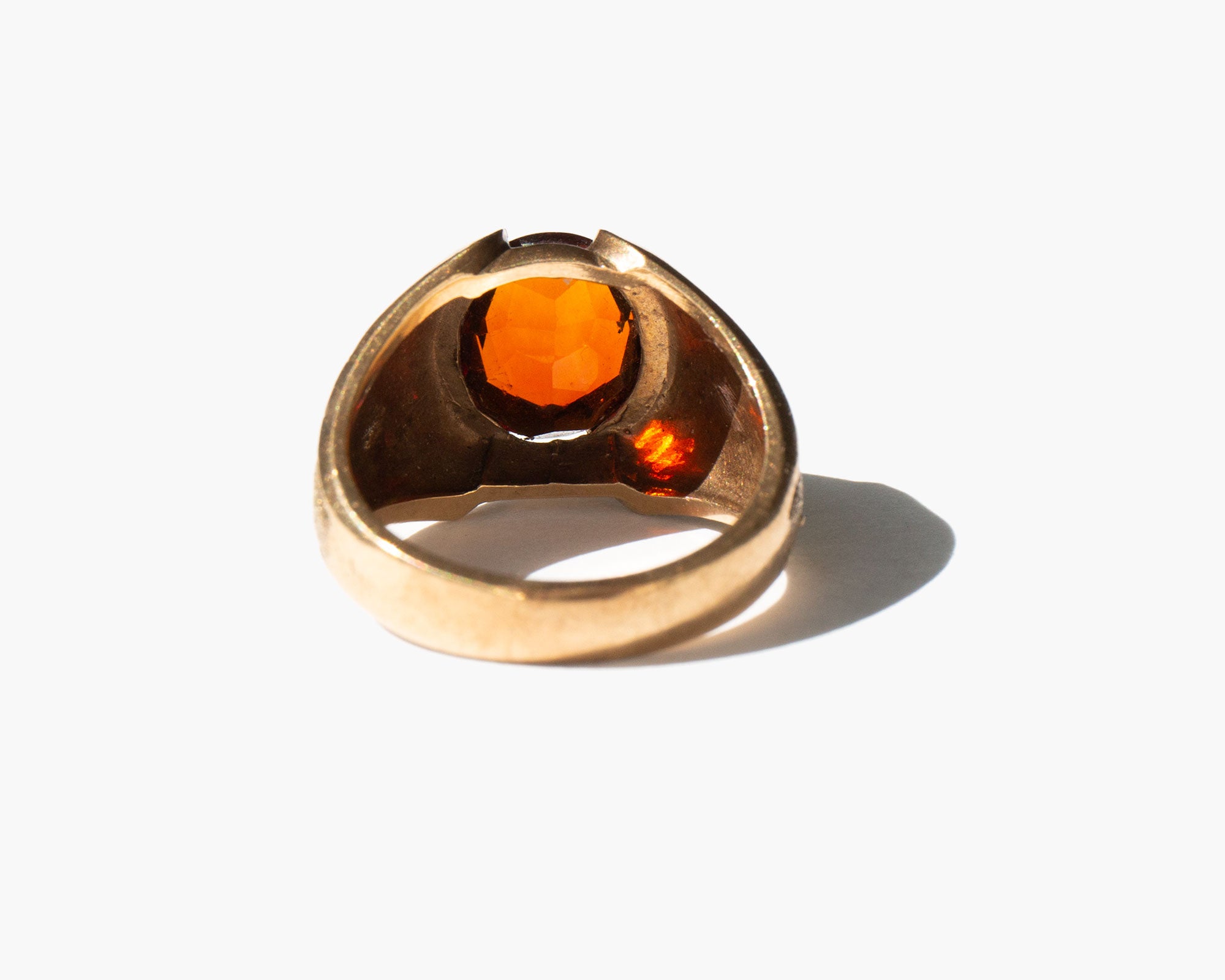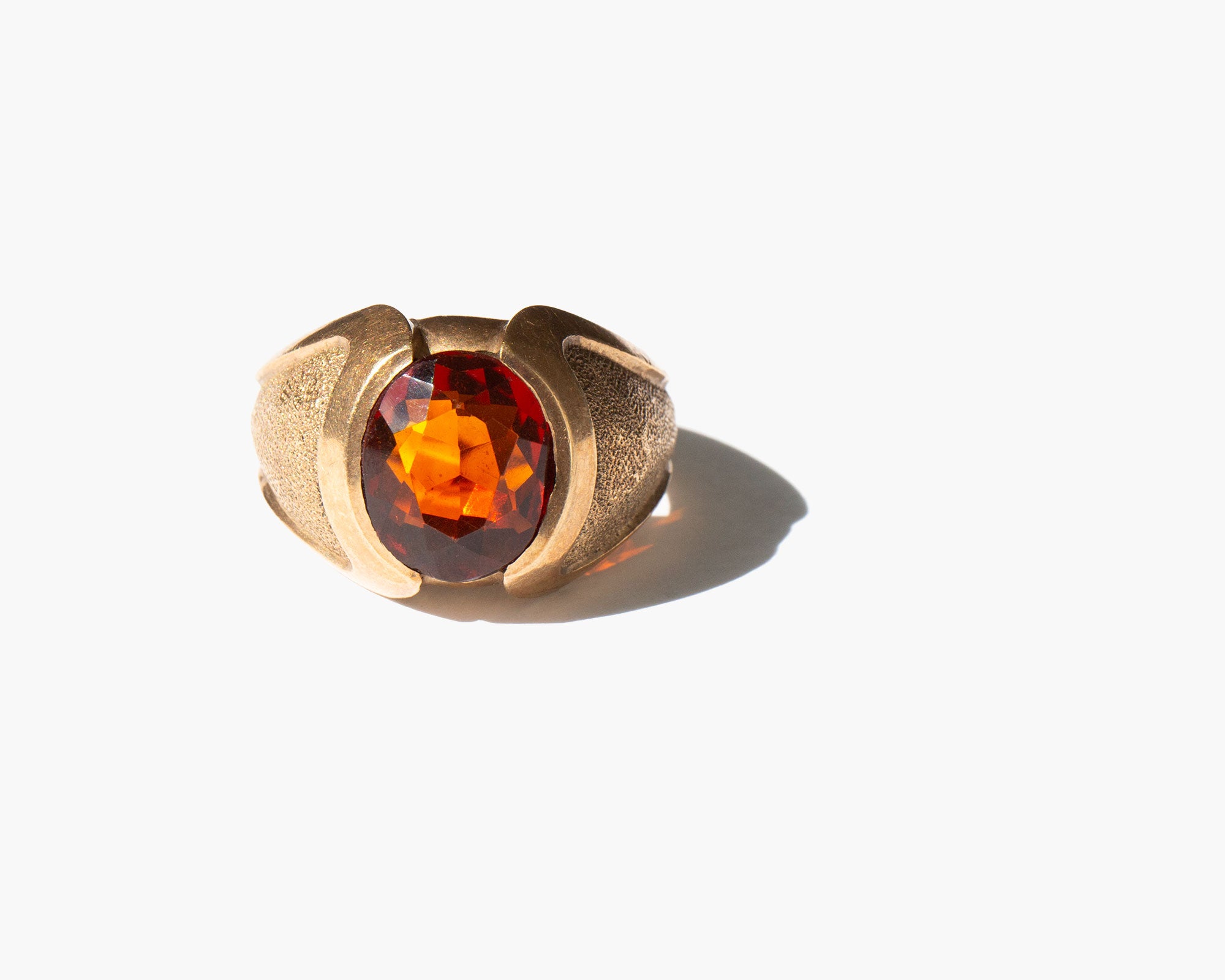 Signet style 10k gold and garnet ring. A popular amulet of the middle ages, the garnet was thought to guard against evil spirits in the night and was a stone used for general protection against malevolent spiritual forces, that would guide the wearer through darkness, and even protect from poisoning. In more modern times the garnet is often gifted between friends and loved ones for protection before a period of extended separation.