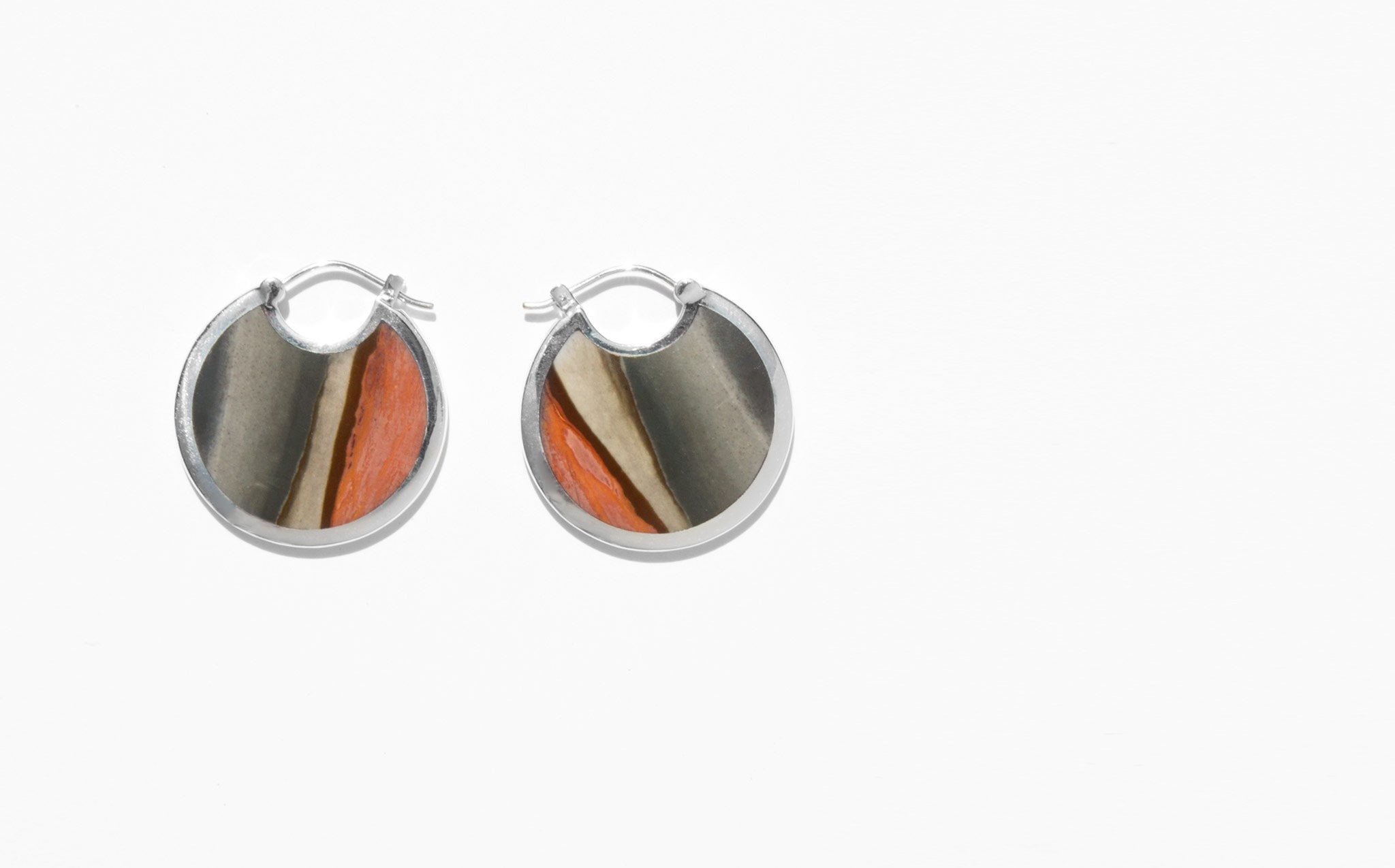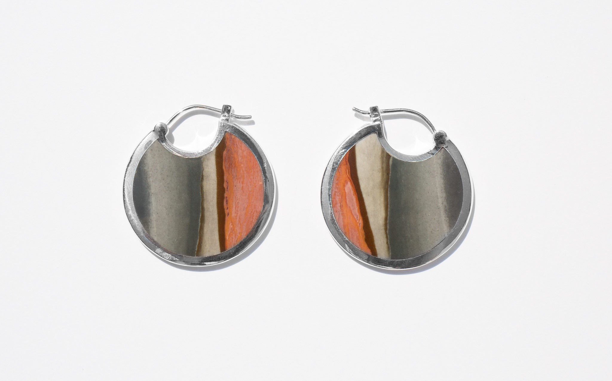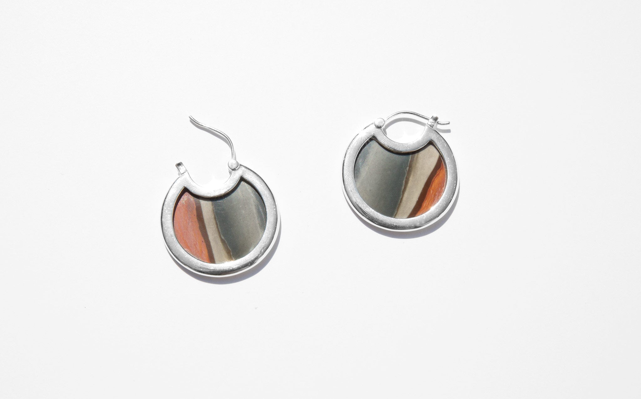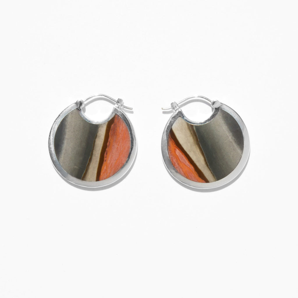 Stunning hoop earrings of natural Savannah Jasper and sterling silver.