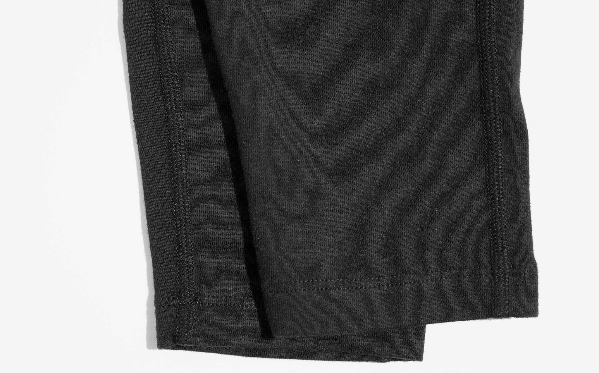 Leggings are mid-rise in the front and cut slightly higher at the back.