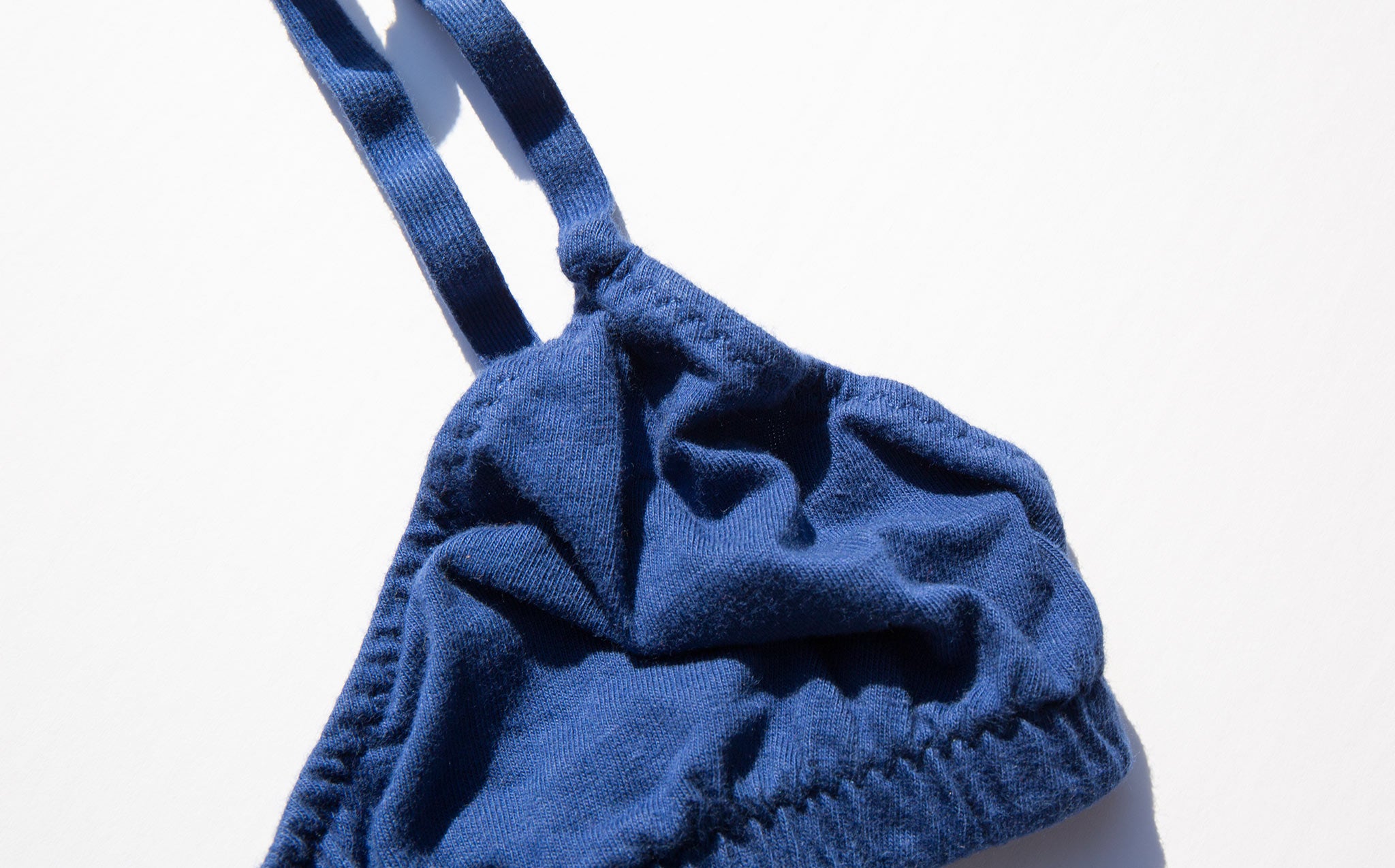 Wireless, elastic supported bra, made in California from 100% organic, USA-grown cotton.