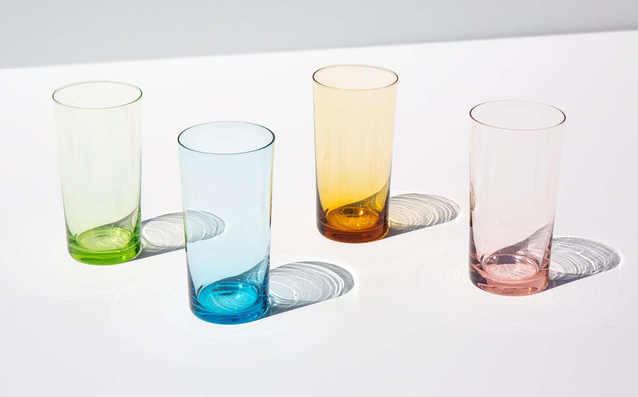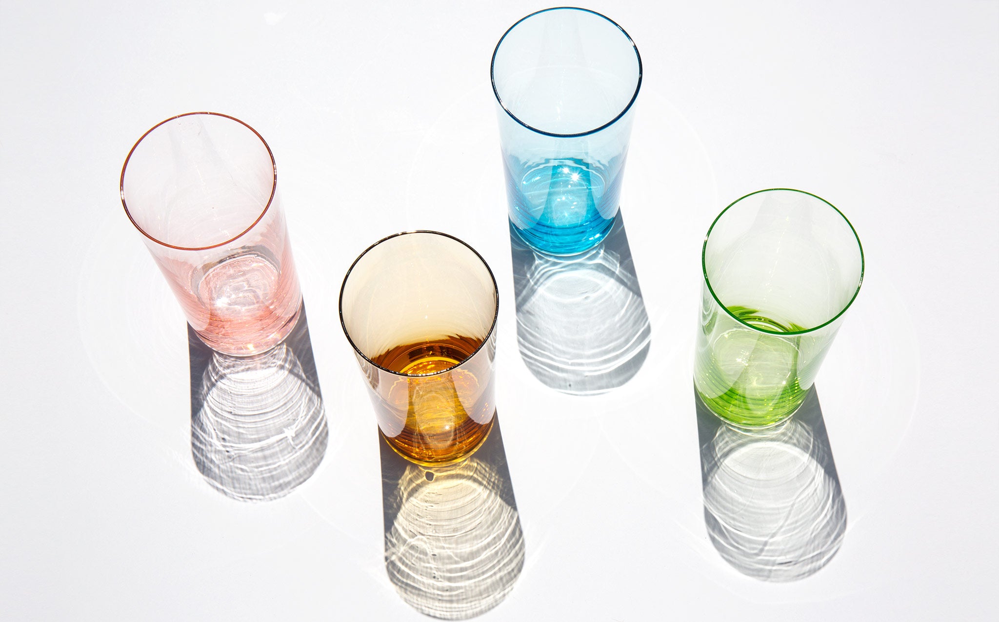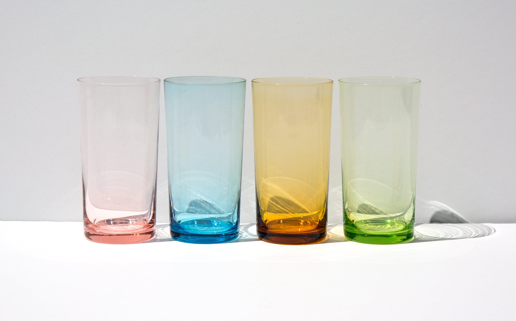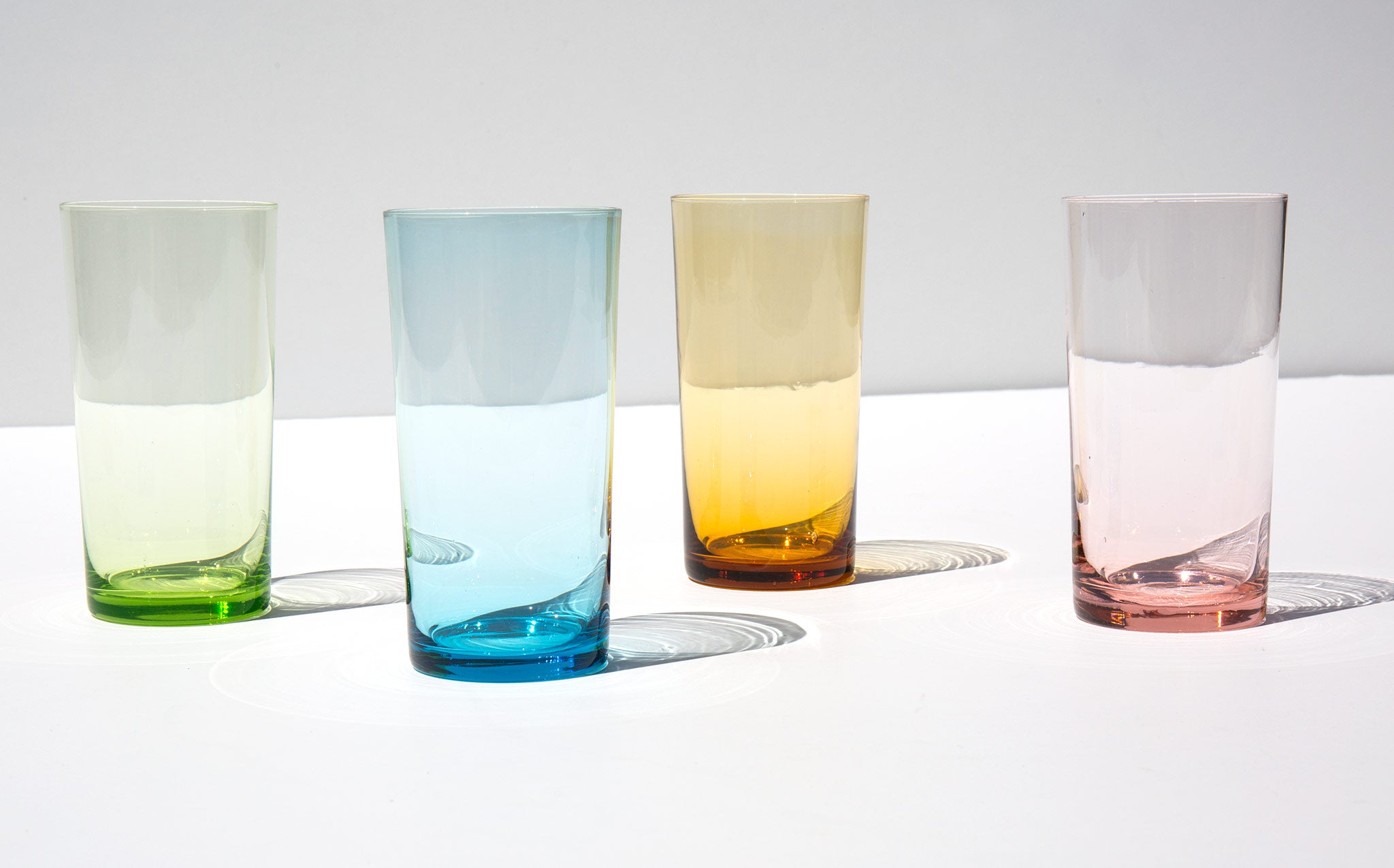 Set of 4 glasses with ethereal pastel tints.