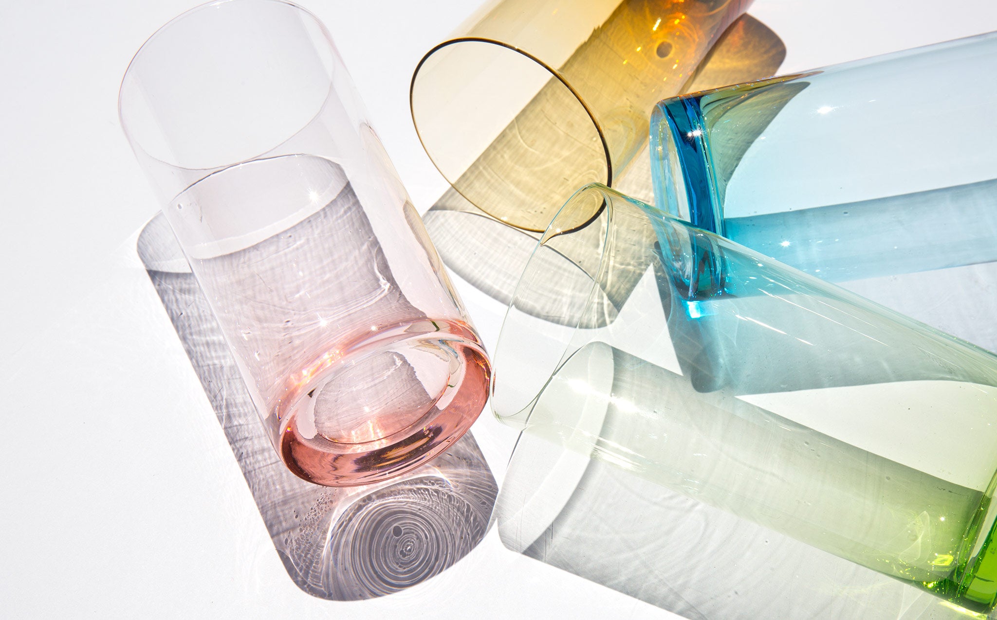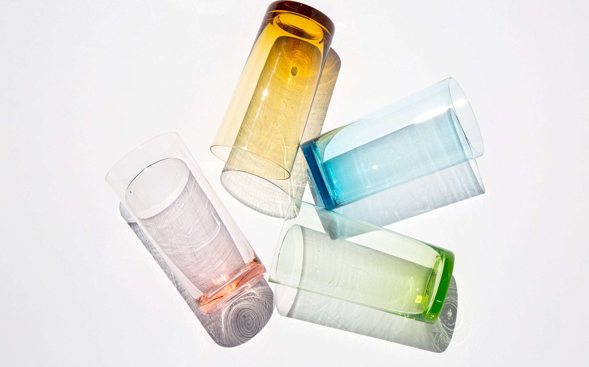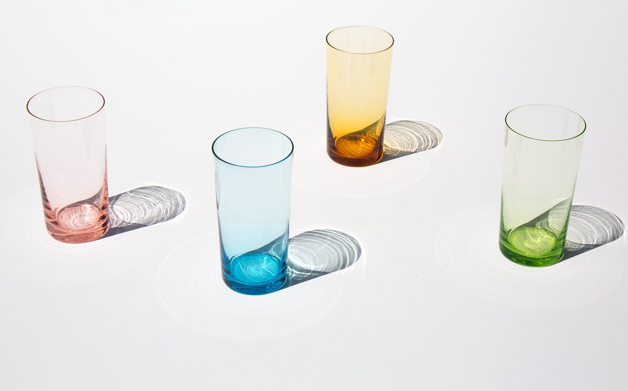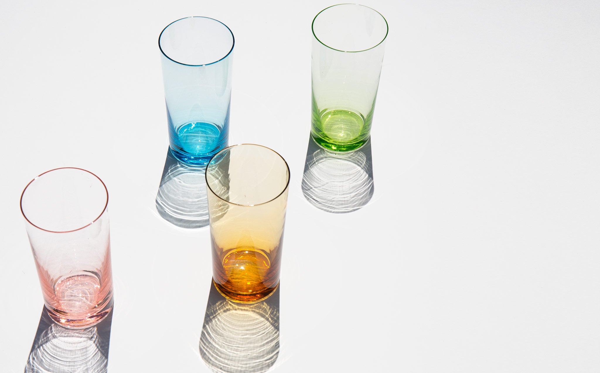 Set of 4 glasses with ethereal pastel tints.