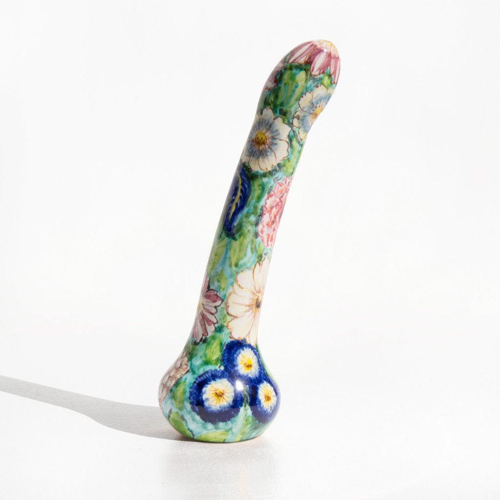 Persian Palm is a line of hand painted, Italian ceramic sex-toys created by Eva Cincar and Luana Giusti and made by artisans in Tuscany, a region famous for ceramic craft since the medieval period. Fired with food grade glaze to a comfortable, high polish finish and hand painted with bold and vibrant, non-toxic and hypoallergenic color, these pieces of pleasure art are hard, smooth, safe, and beautiful. Made only with earth, water, and fire, Persian Palm toys are eco-friendly and are crafted to be elegant show pieces, not secreted away in a drawer.