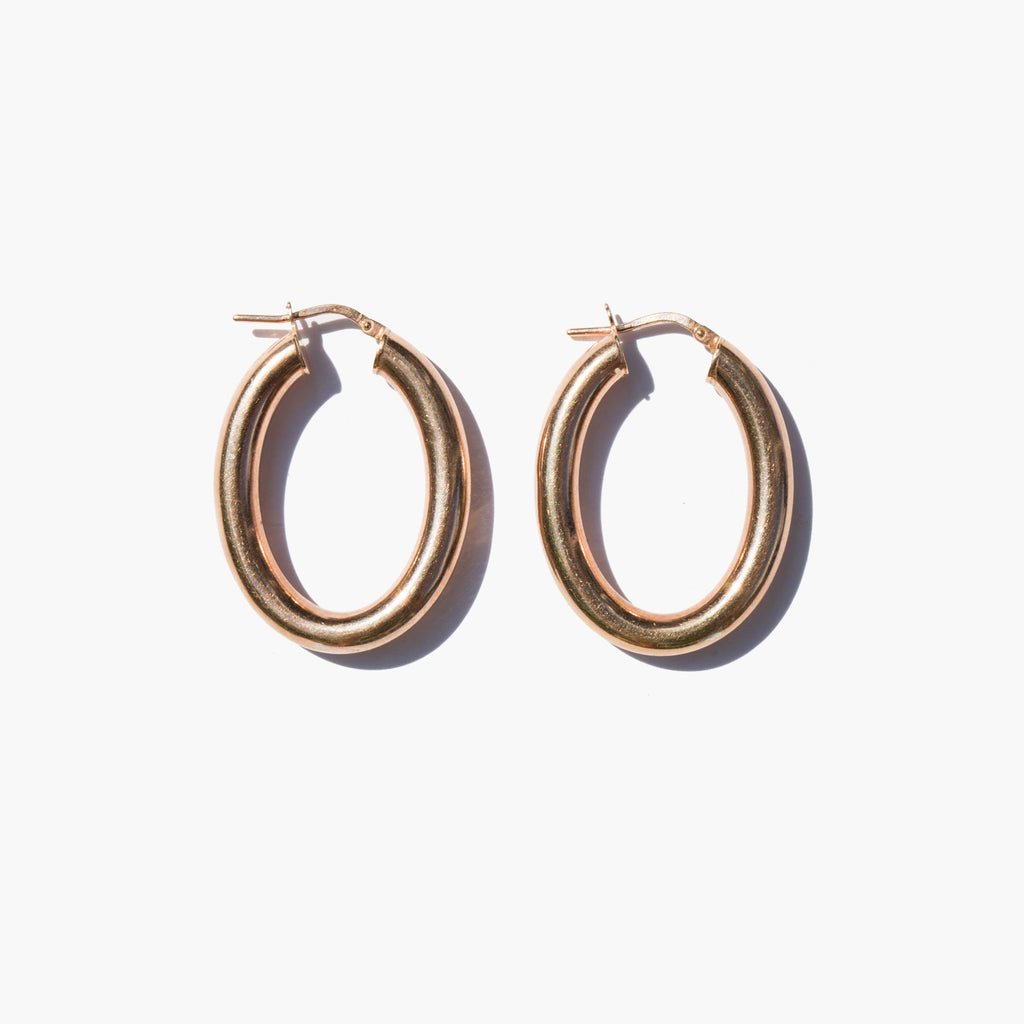 Elegantly curved sterling silver hoop earrings with a pretty peach gold wash.
