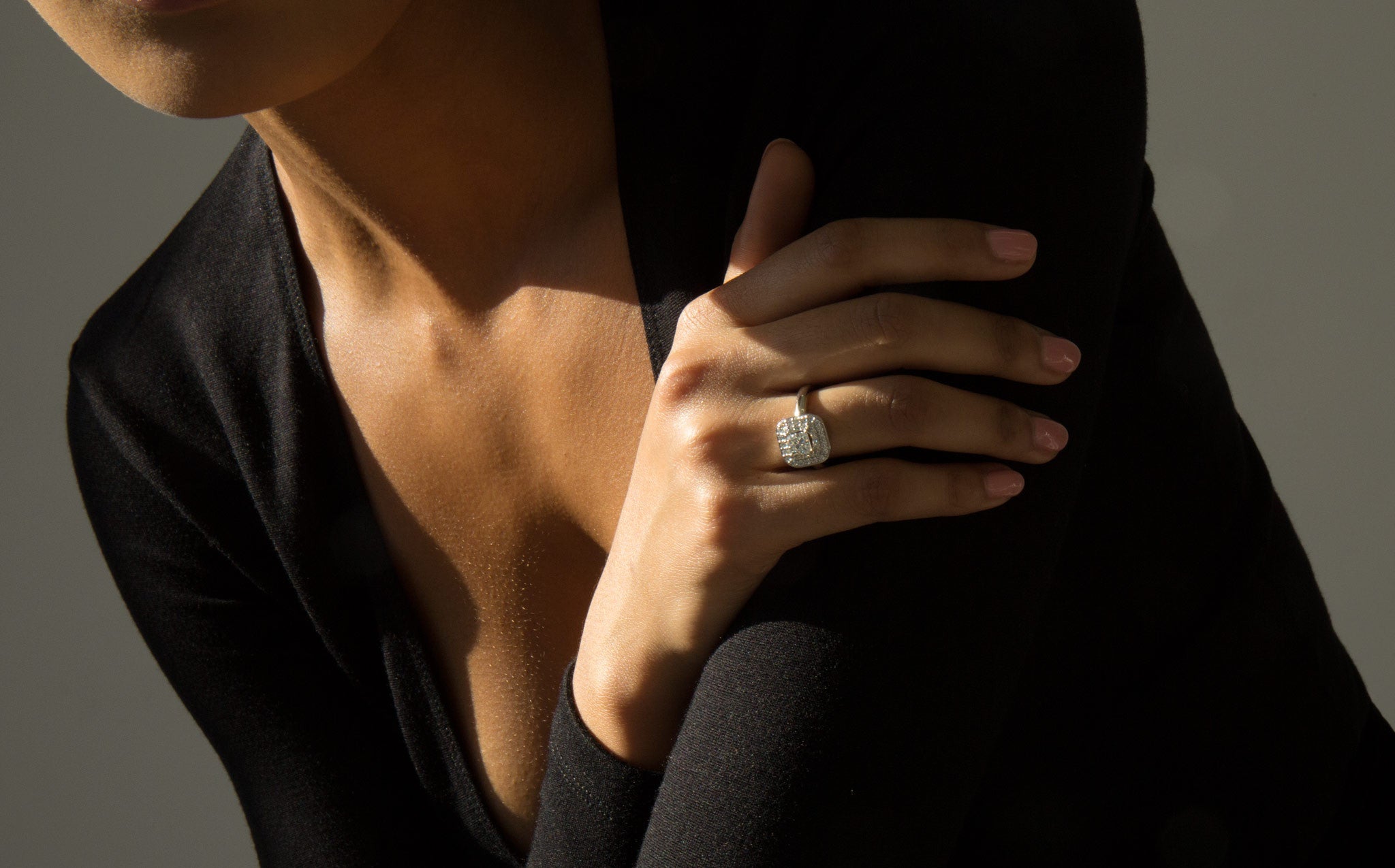 just over 1 ct center stone with approximately another 1 ct in side stones.