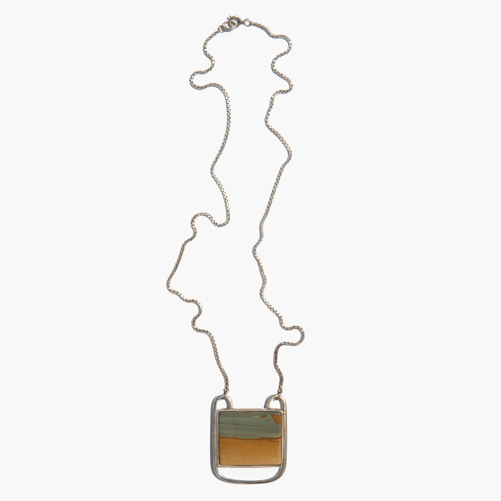 Sterling framed landscape agate on a minimal sterling silver chain.