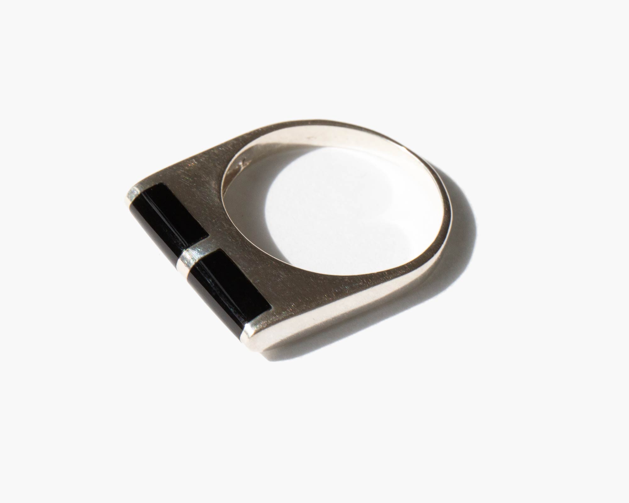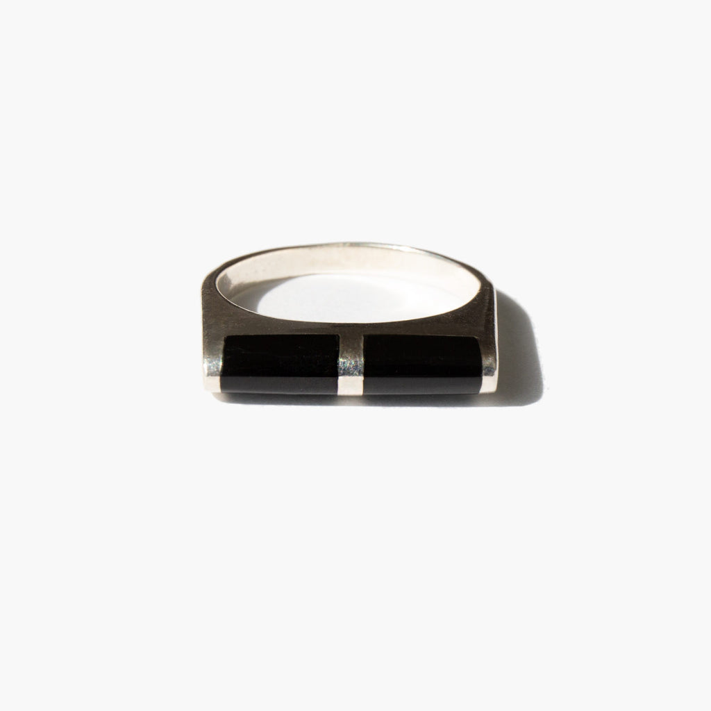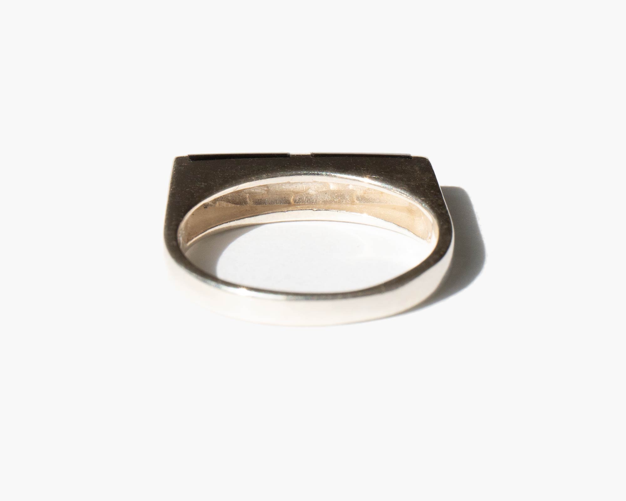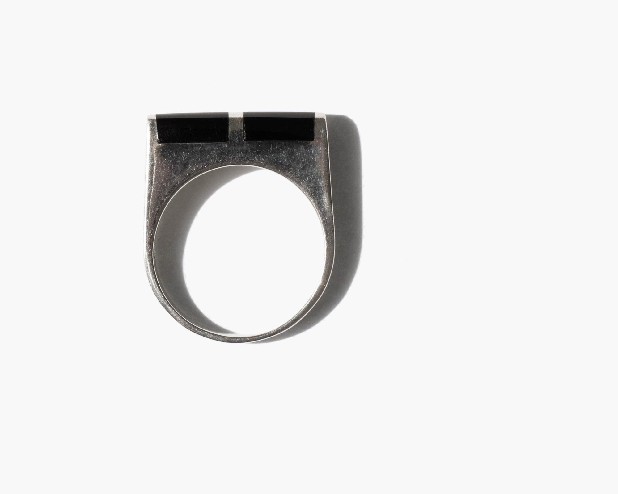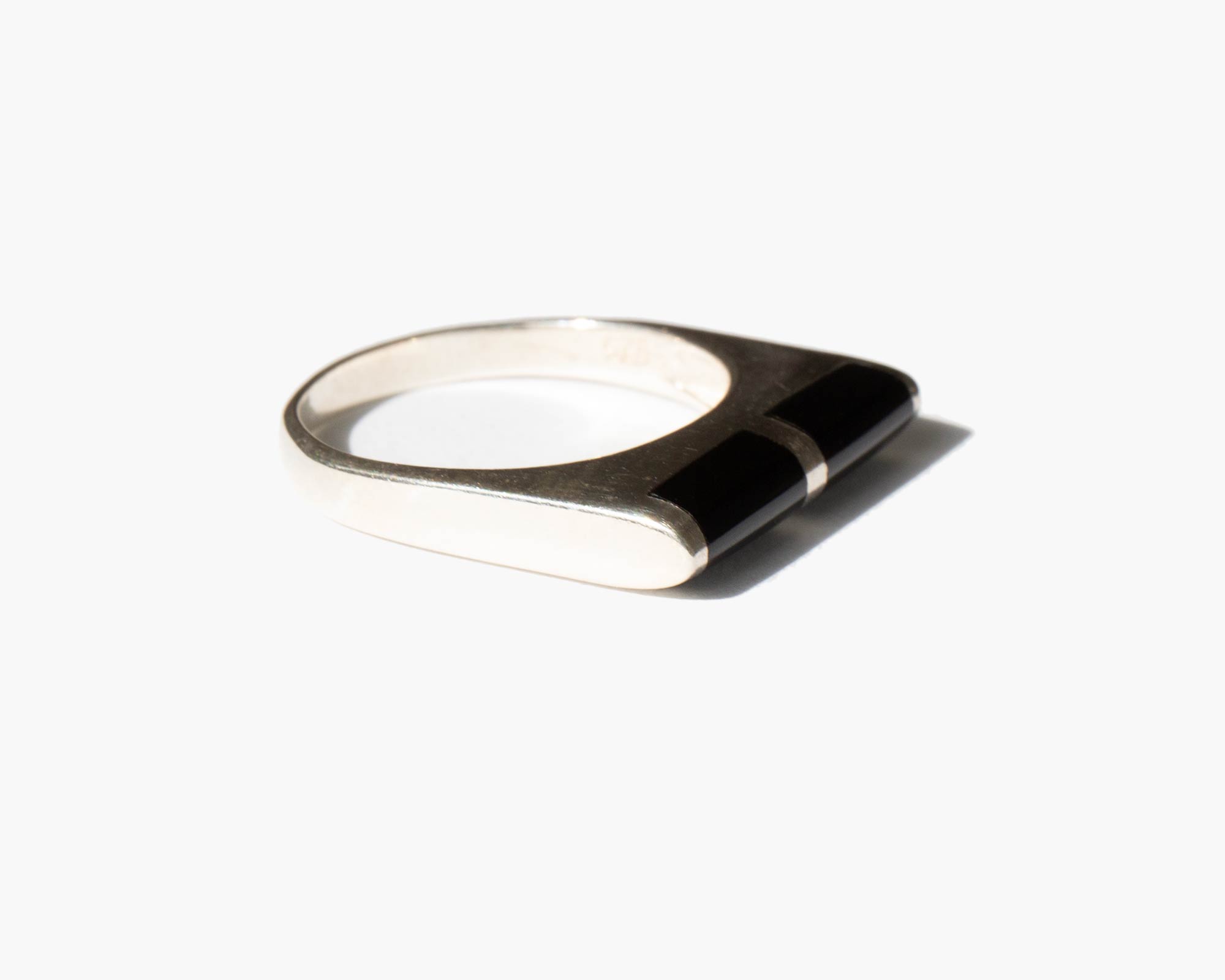 Modern sterling silver and onyx ring. Onyx is thought to be a grounding stone that imparts strength, happiness, and good fortune.