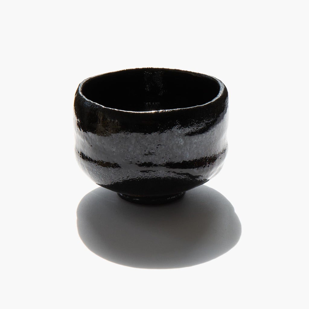 Japanese Taishō era antique raku chawan tea bowl with a glossy black finish. Raku ware is a type of Japanese pottery that has been used in tea ceremonies since the Eishō era in the early 1500s.