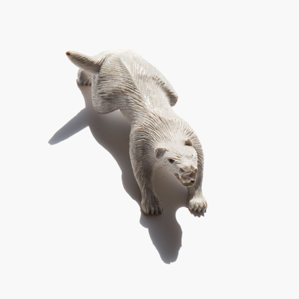 Zuni handmade carved antler mountain lion. Regarded as powerful and fearless, the mountain lion is often called upon in times of need and is a symbol of resilience and the ability to overcome adversity.