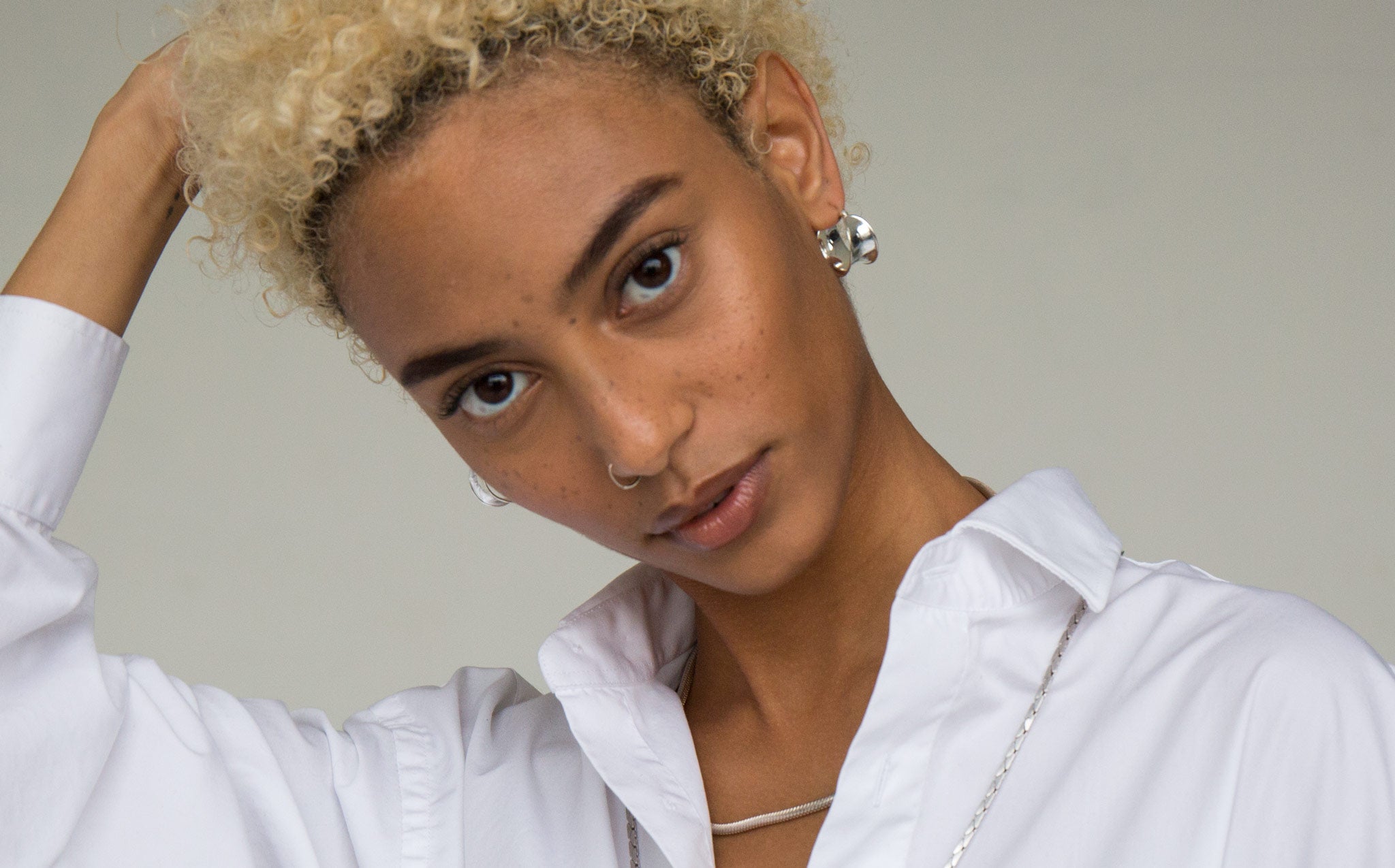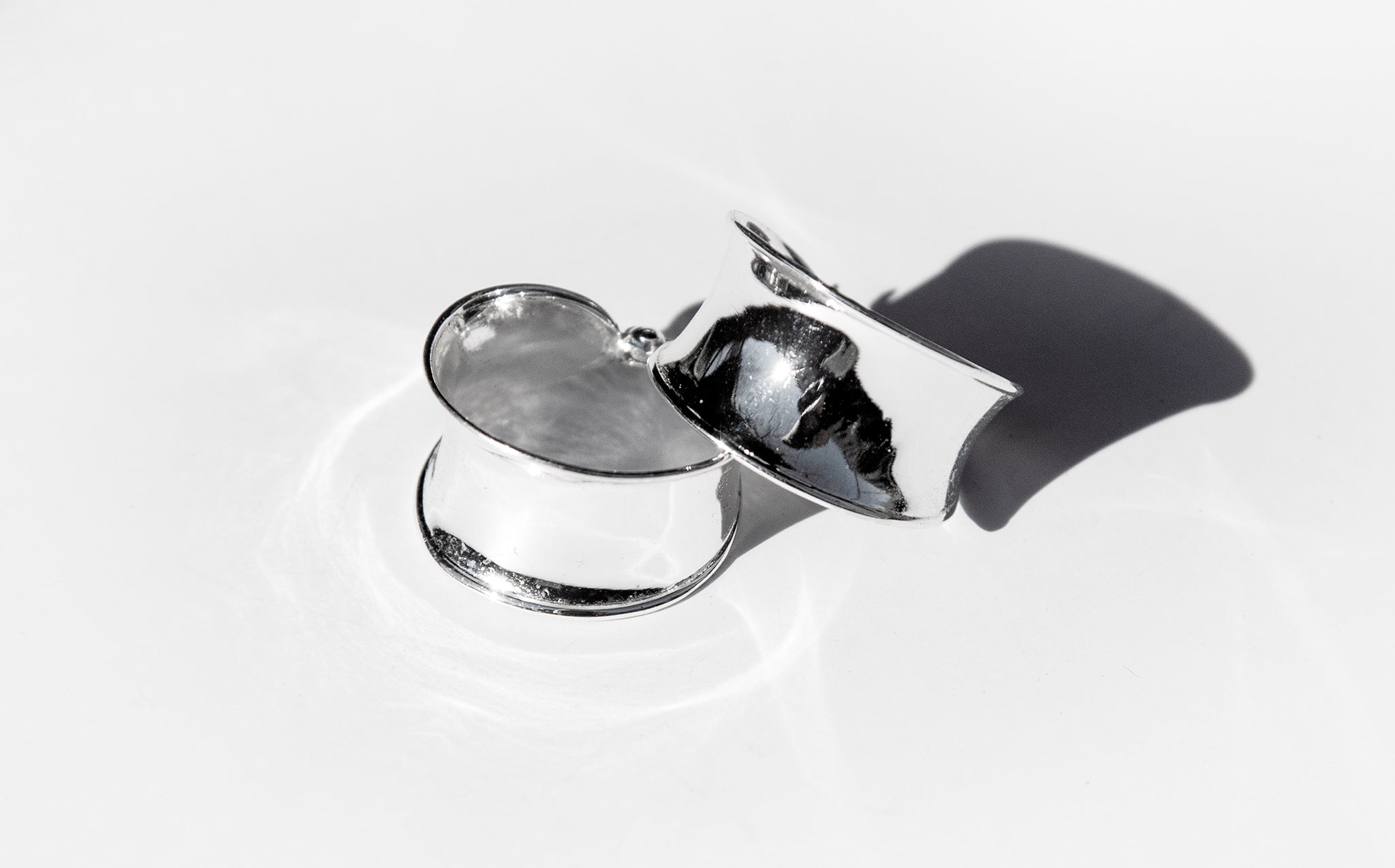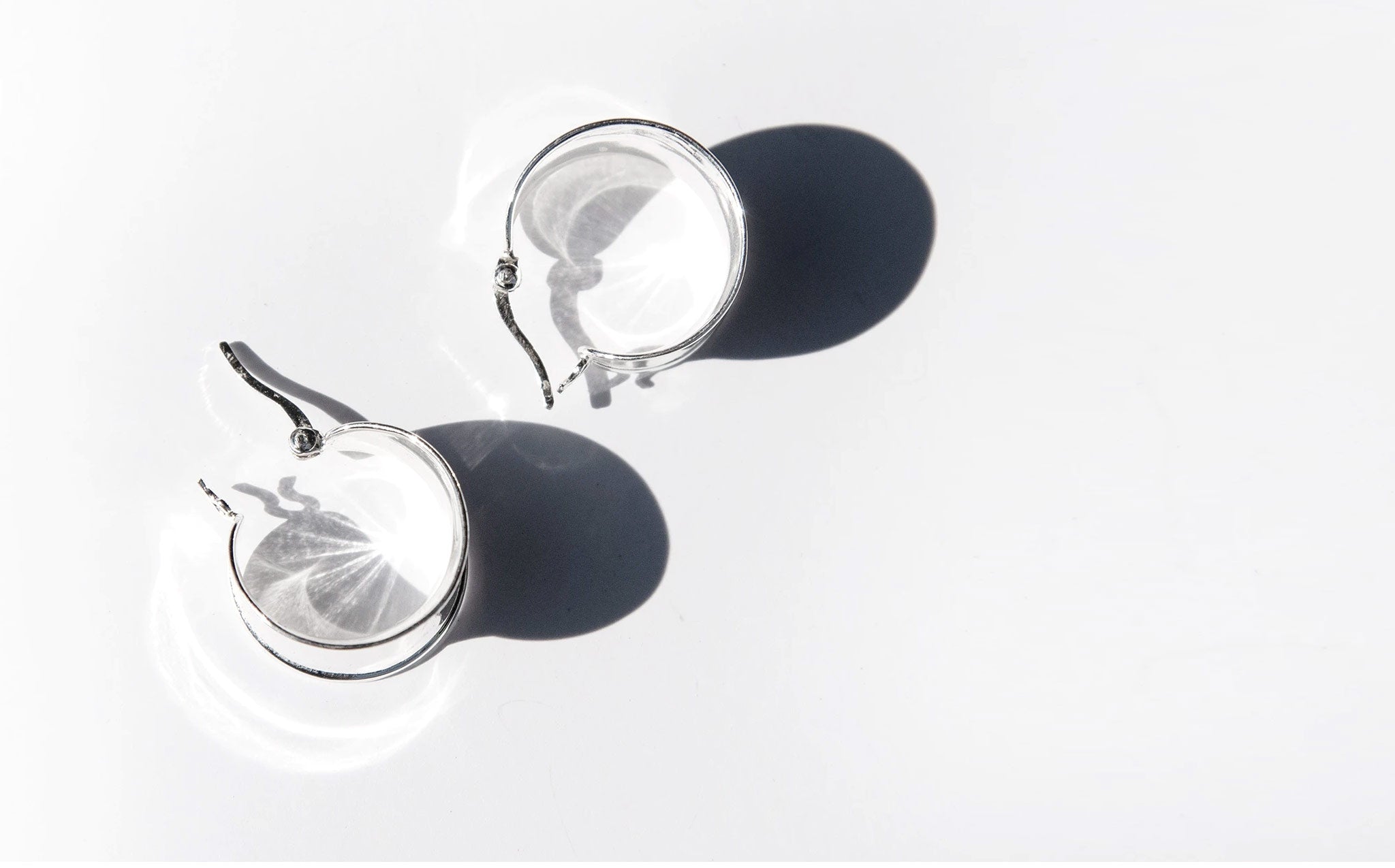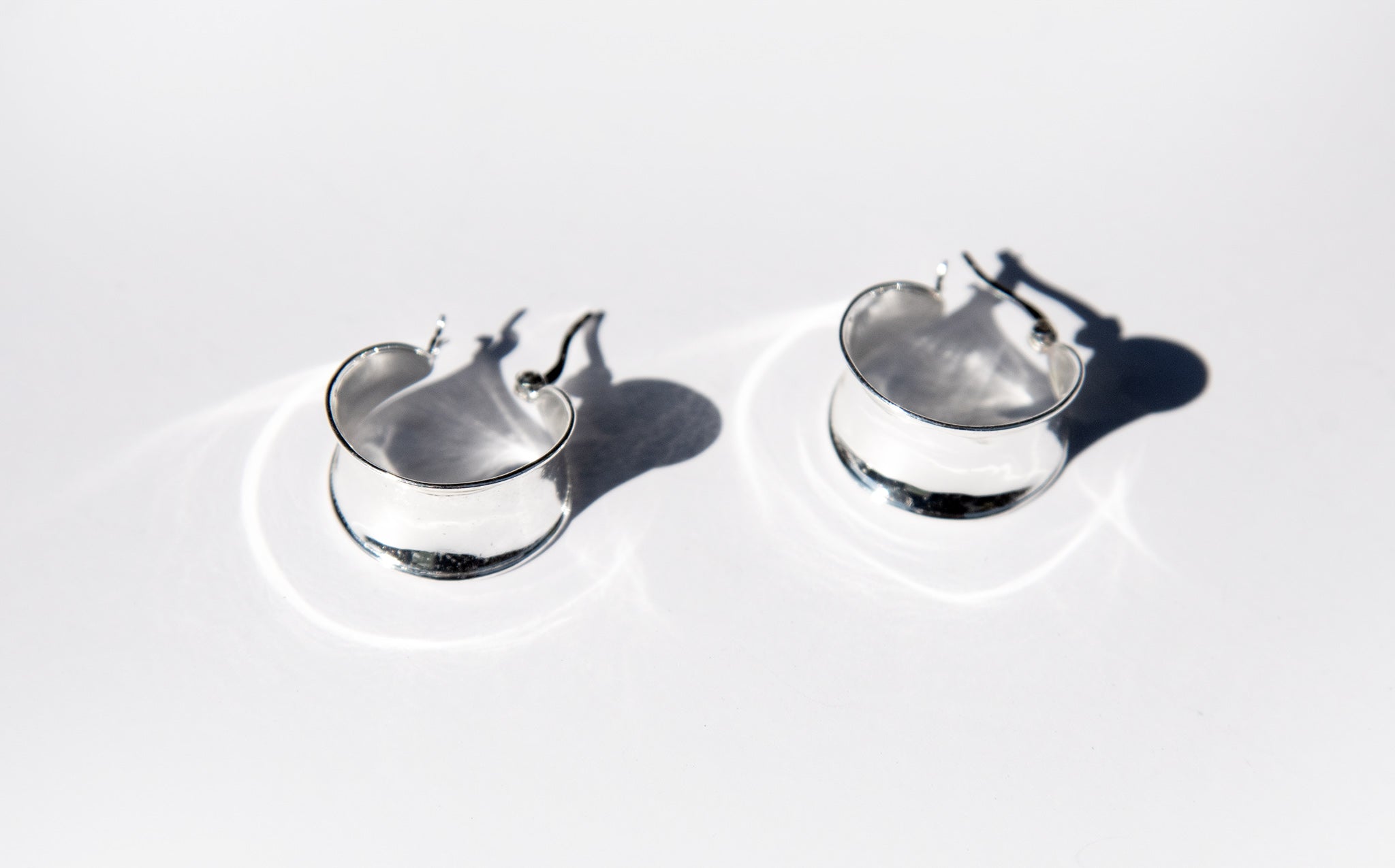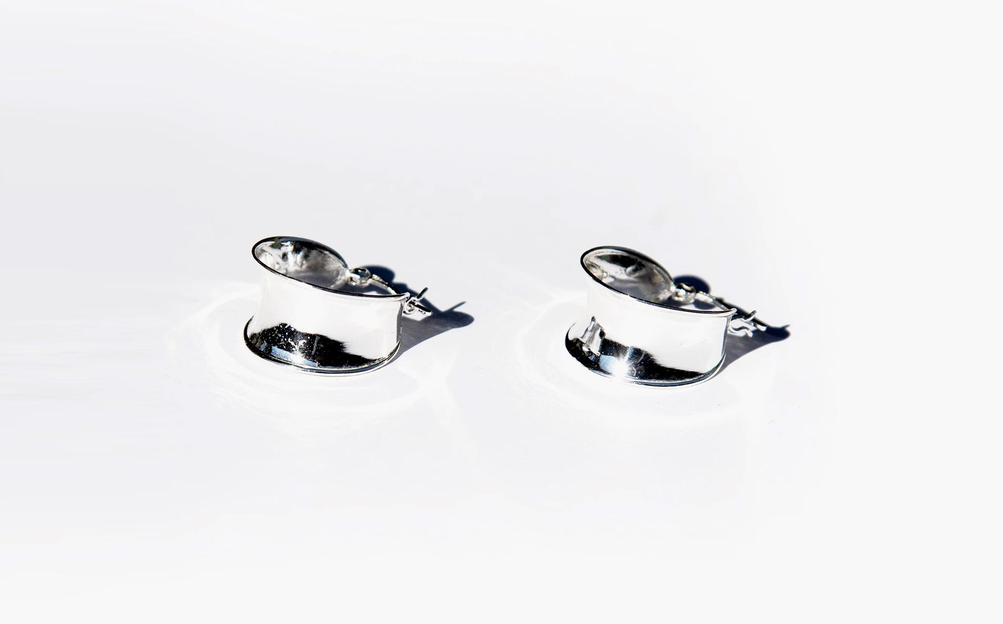 Shiny silver hoops with hinge snap closure.