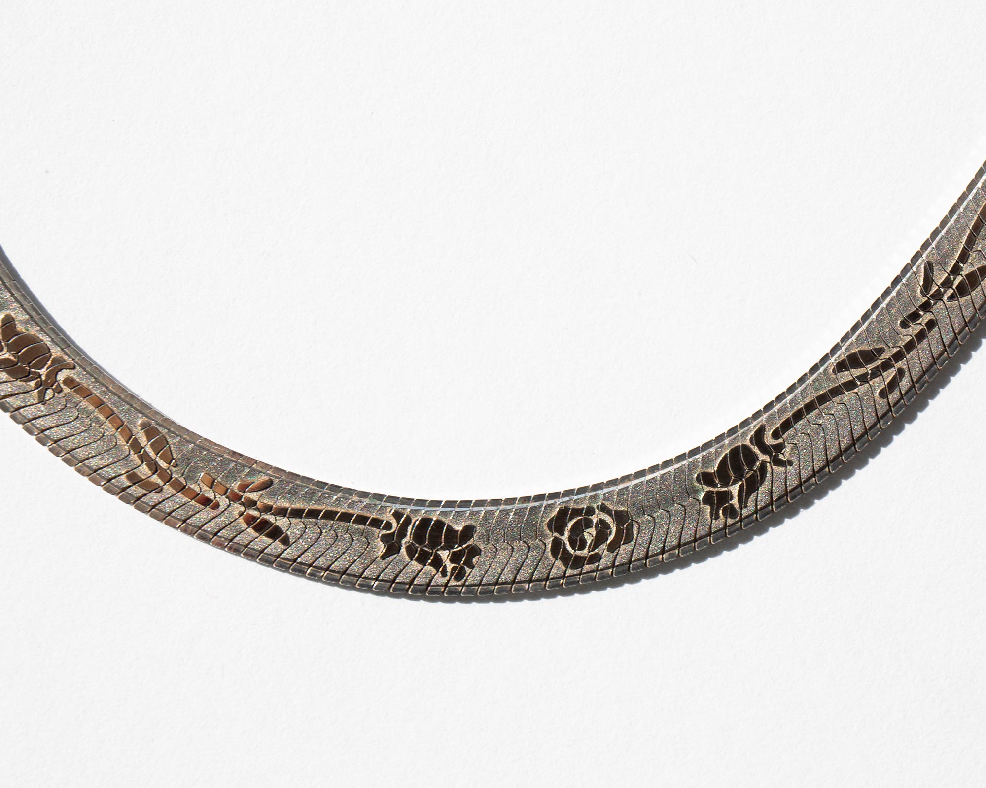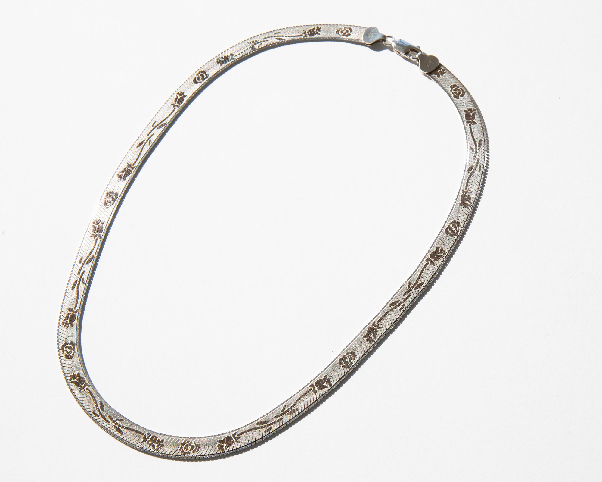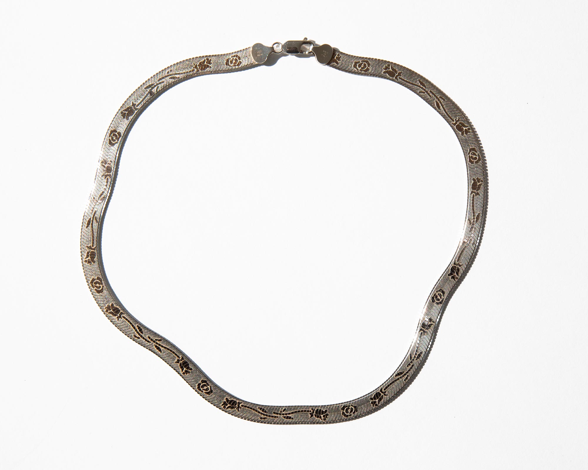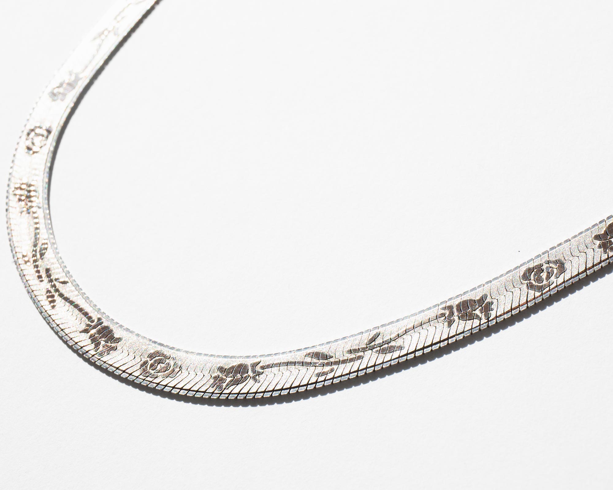 Italian two-tone sterling silver herringbone chain with gold wash roses.