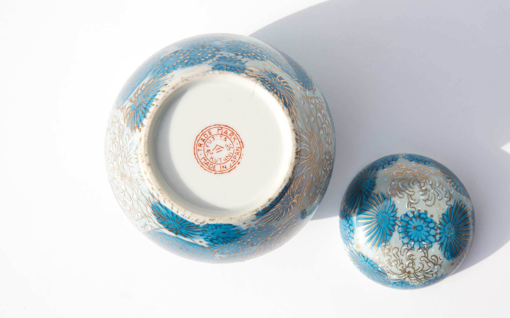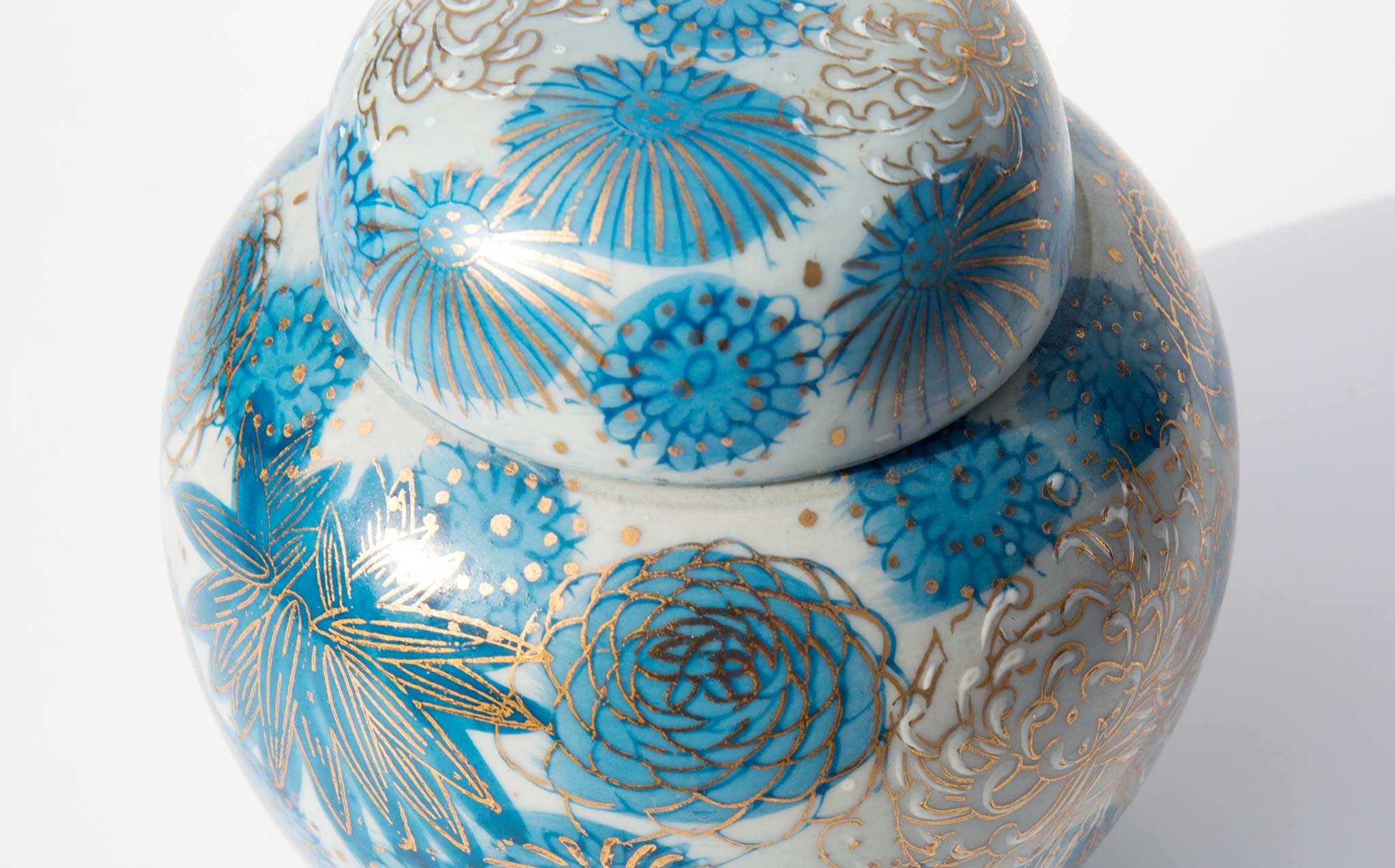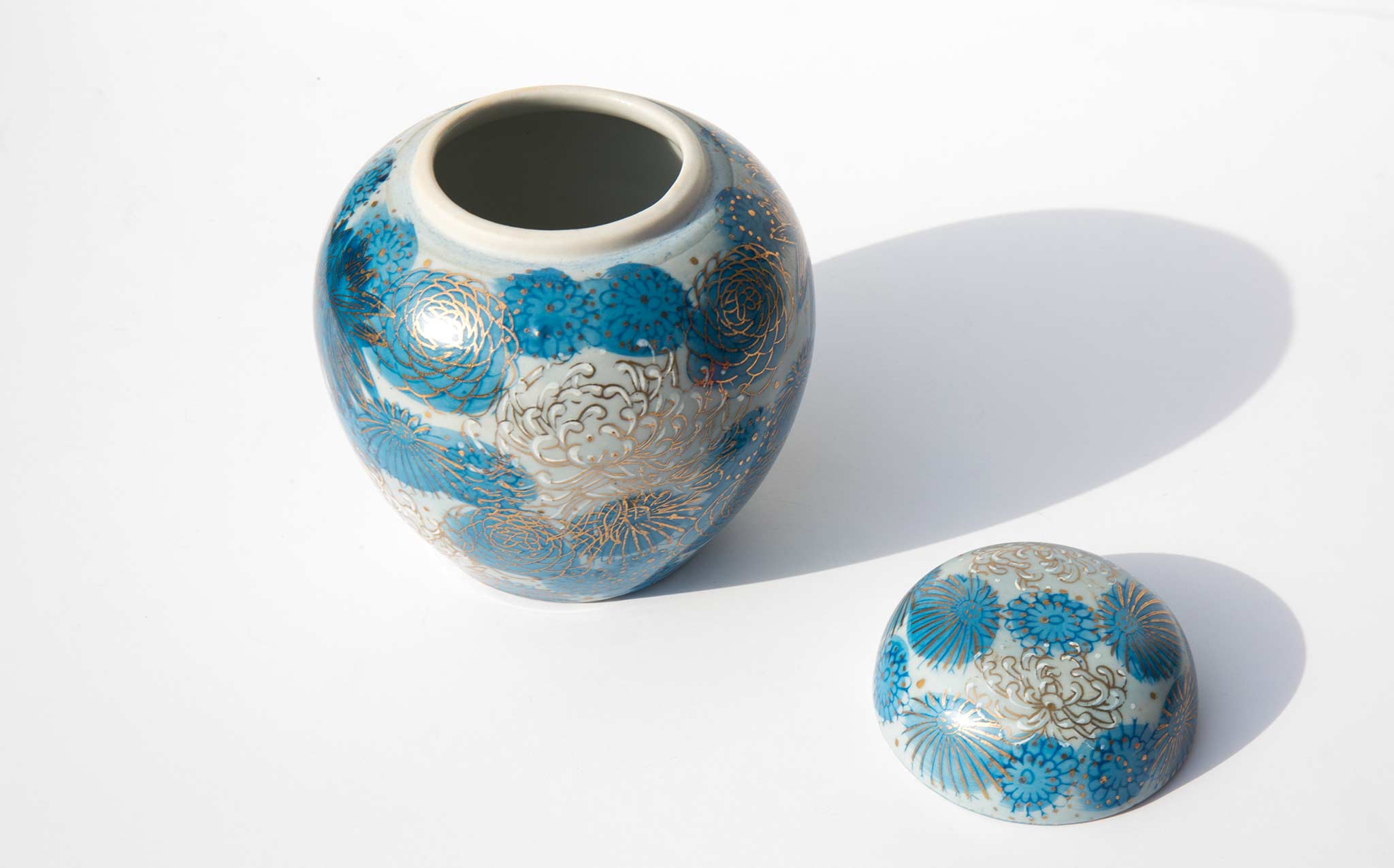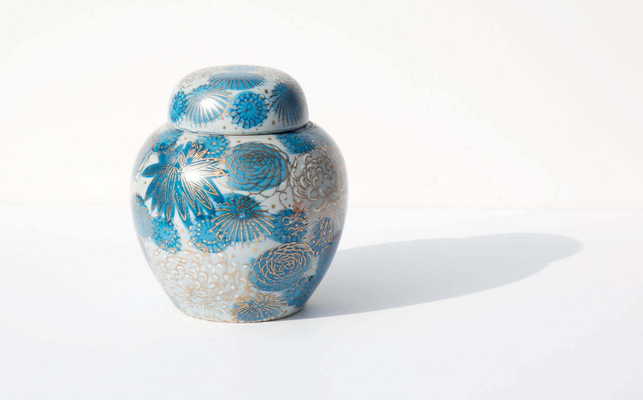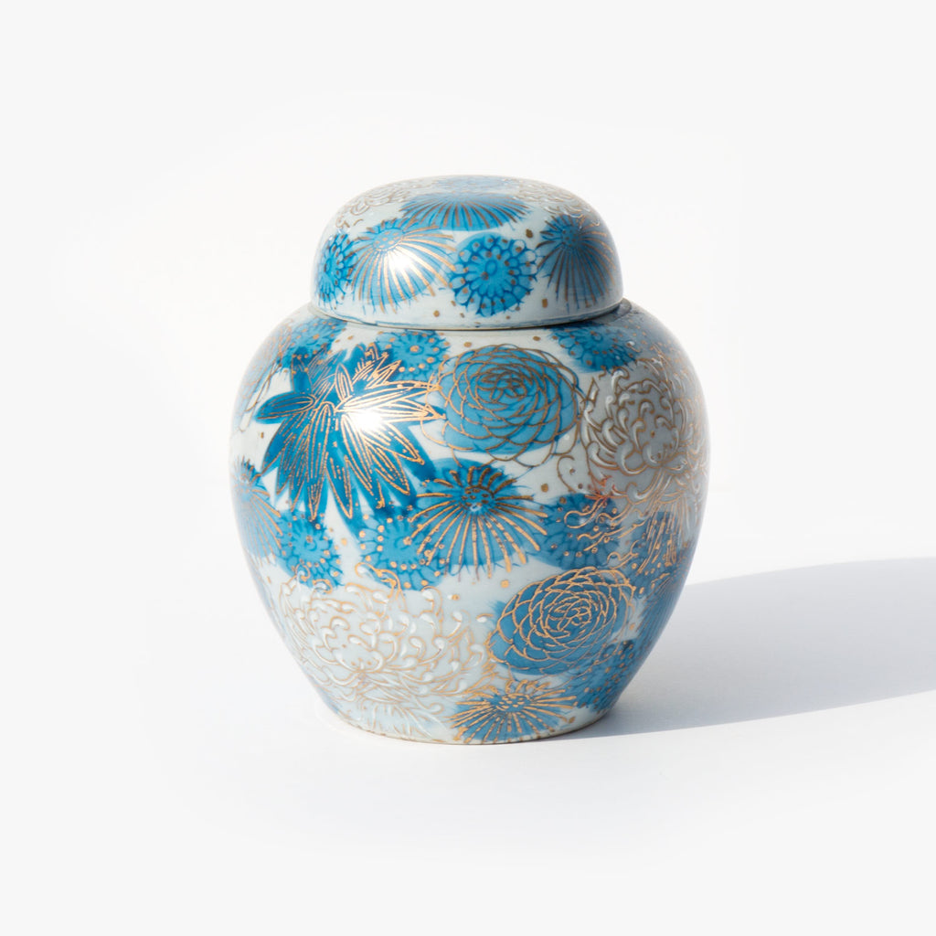 Hand painted lidded floral vessel, made in Japan.