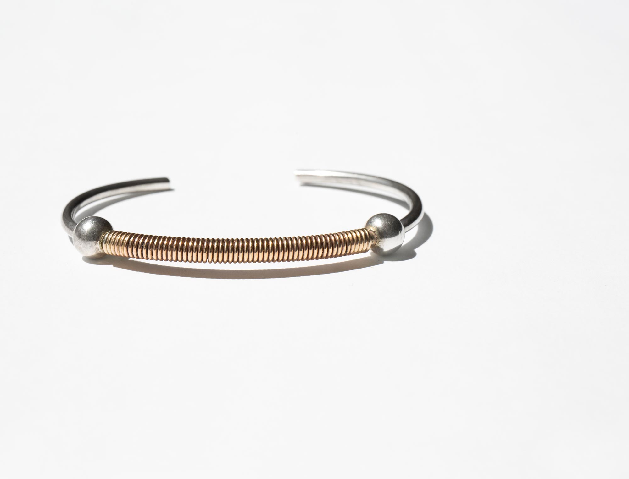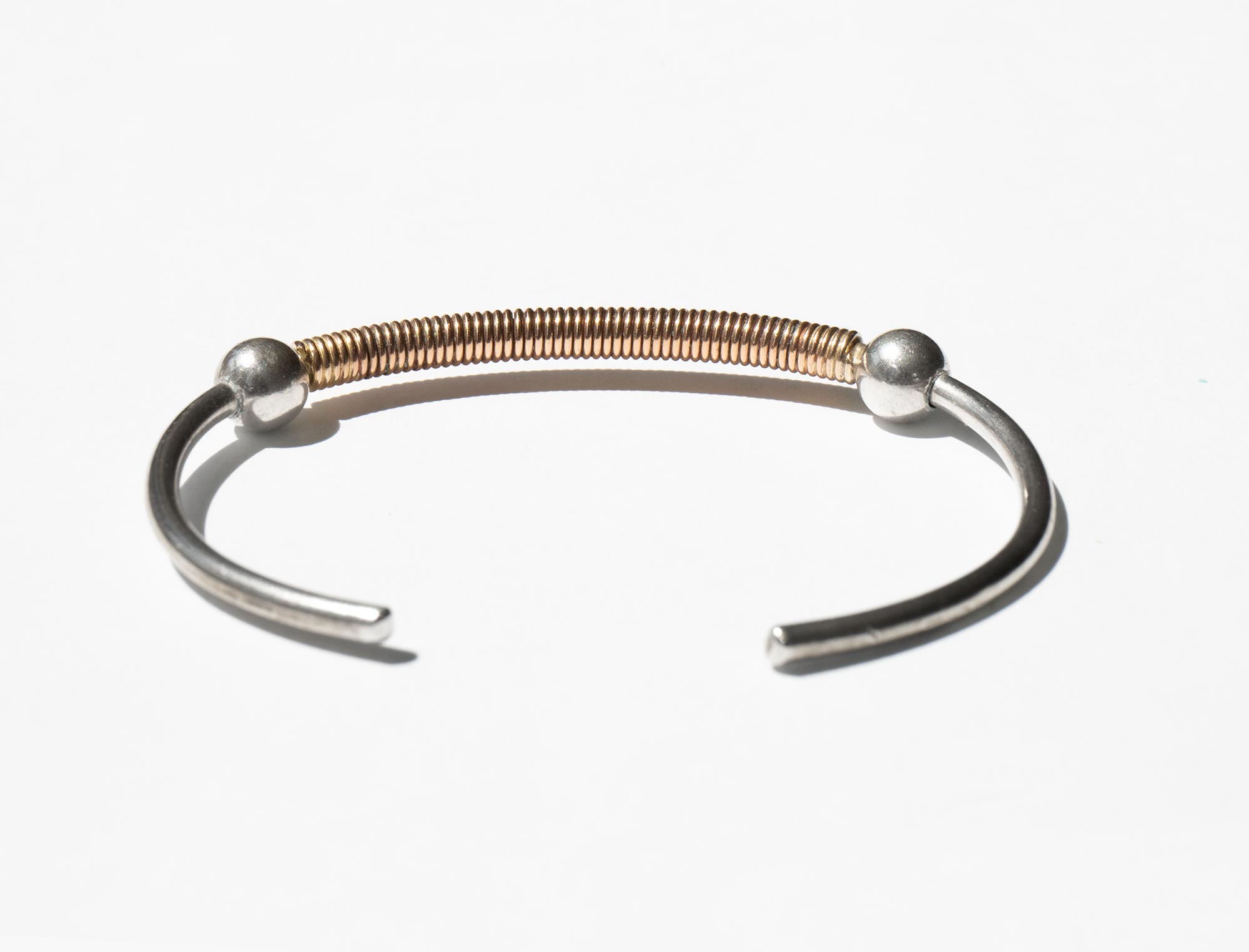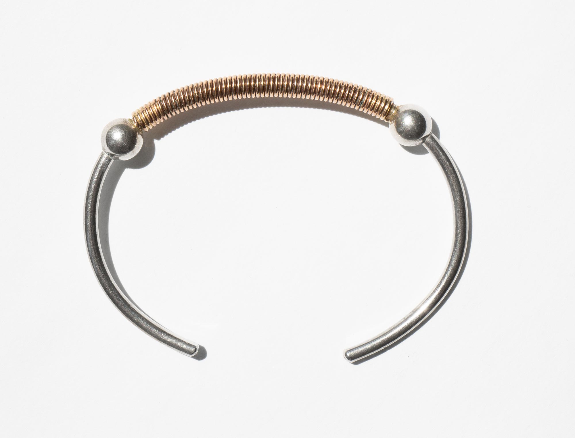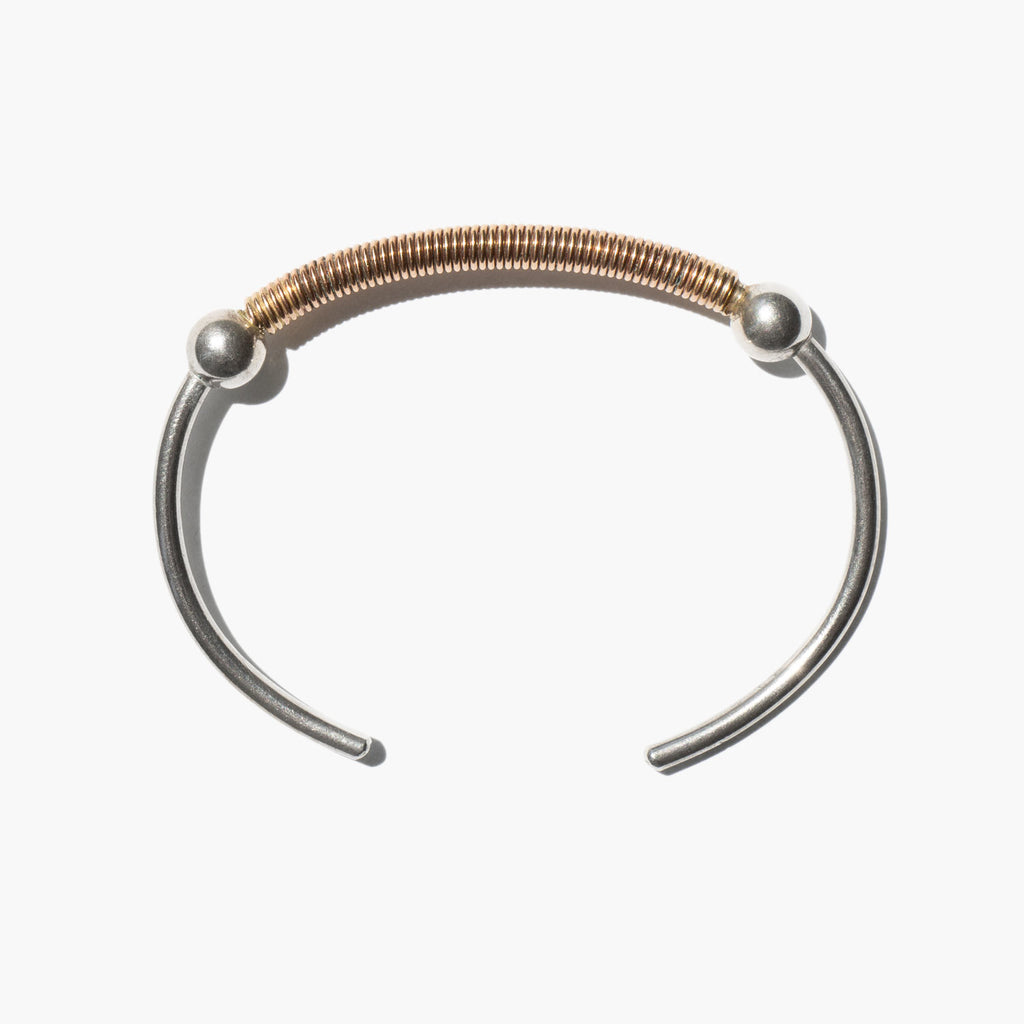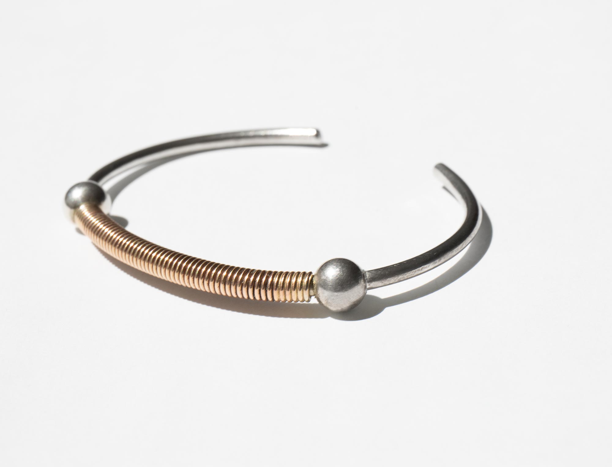 Bracelet opening is approximately 1" and has an inner diameter of 2 3/8" at the widest point. Bracelet is slightly adjustable by gently pulling open or squeezing to make it tighter on the wrist.