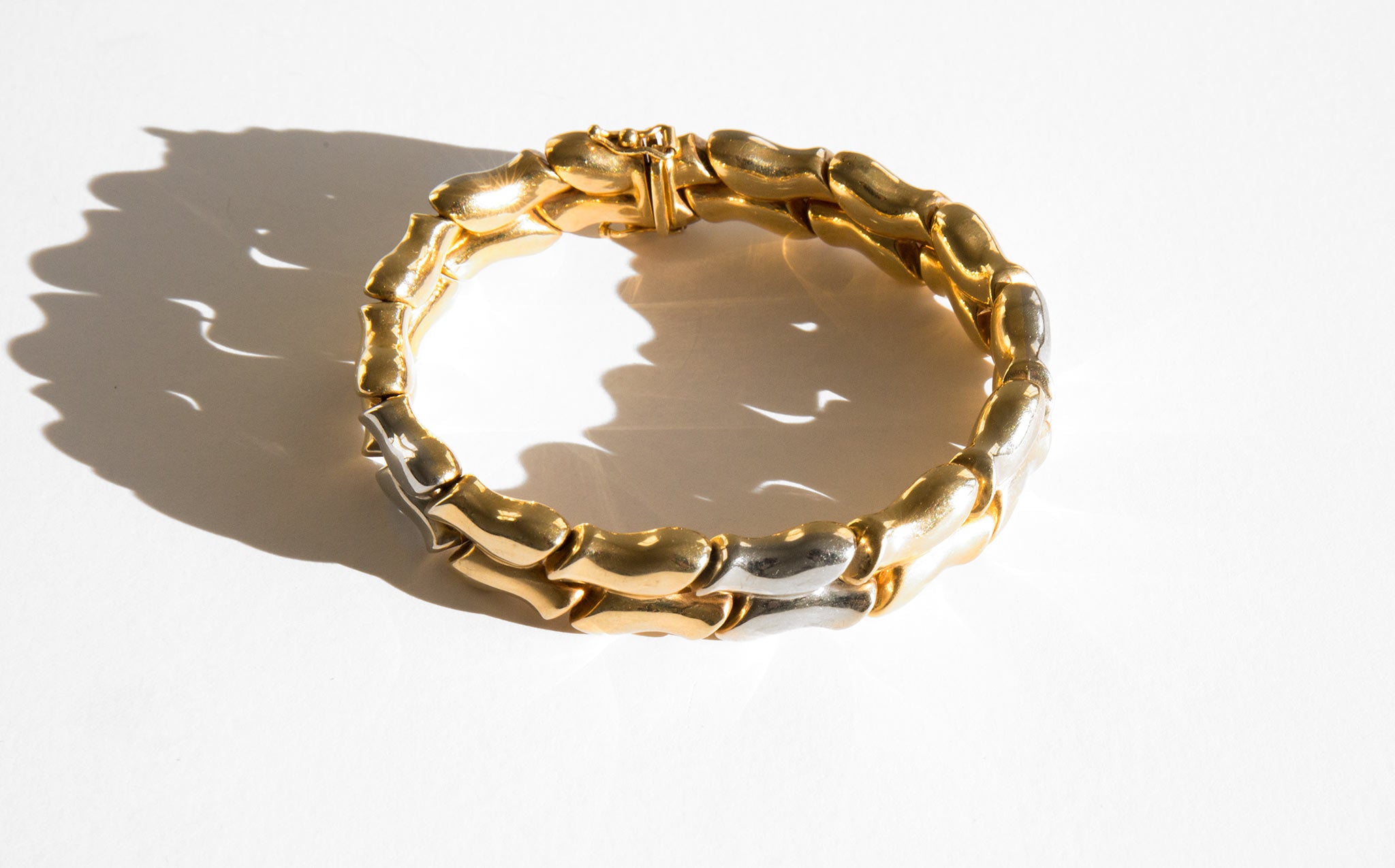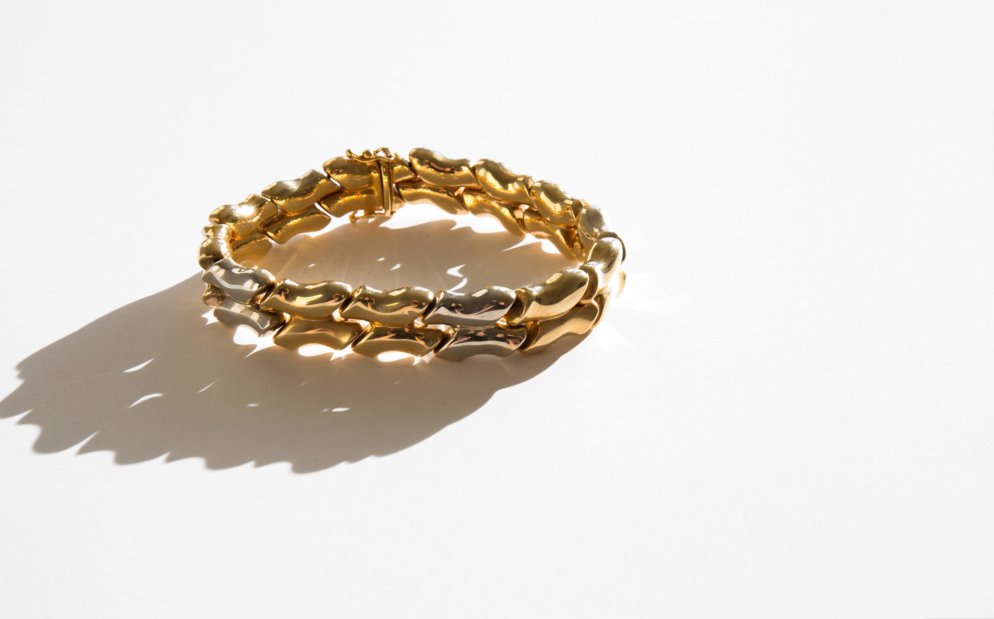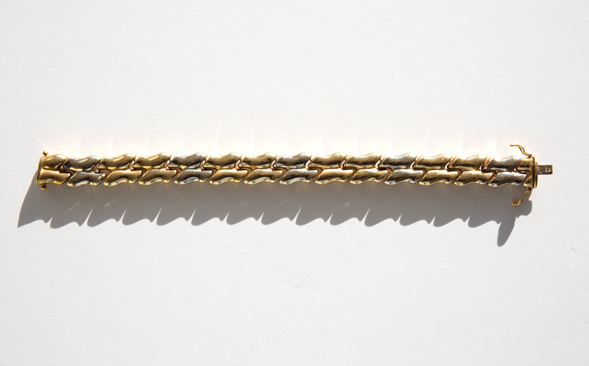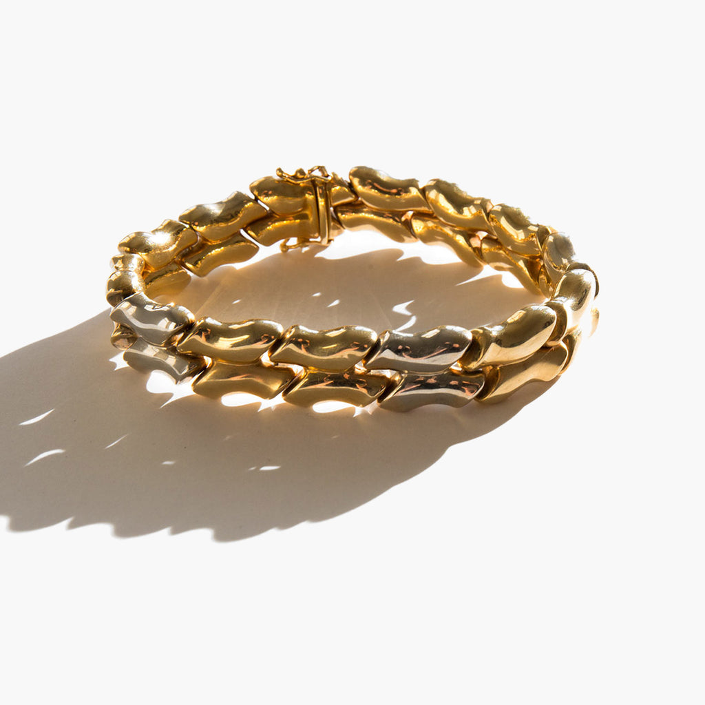 Gorgeous 14k gold, two-tone puff link bracelet.