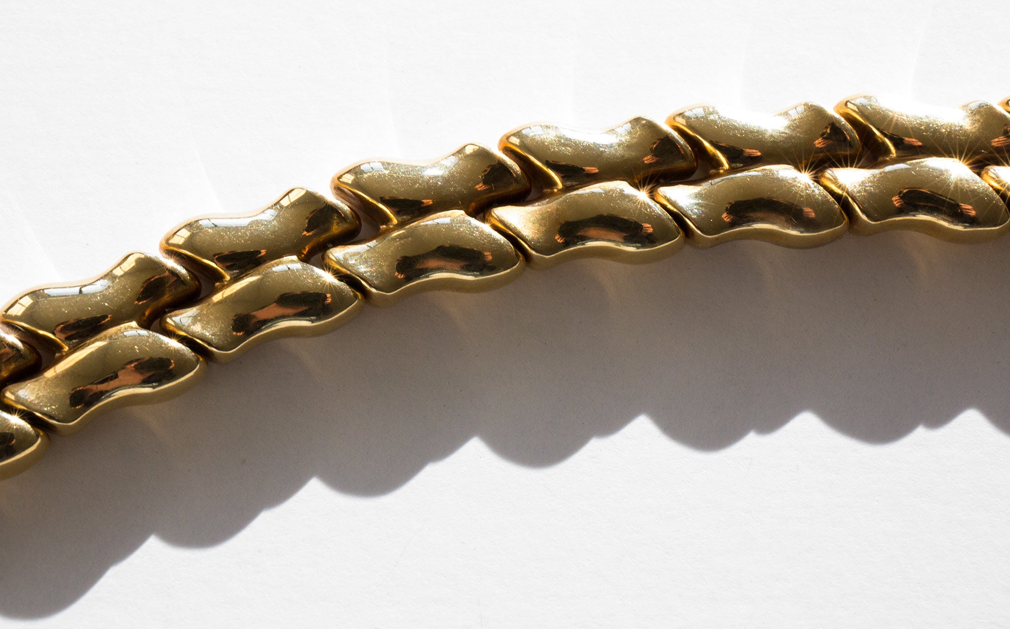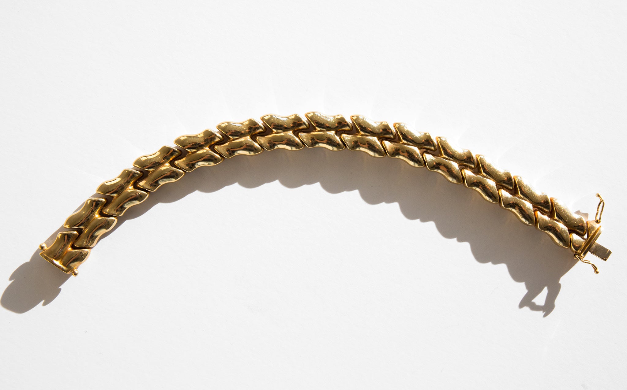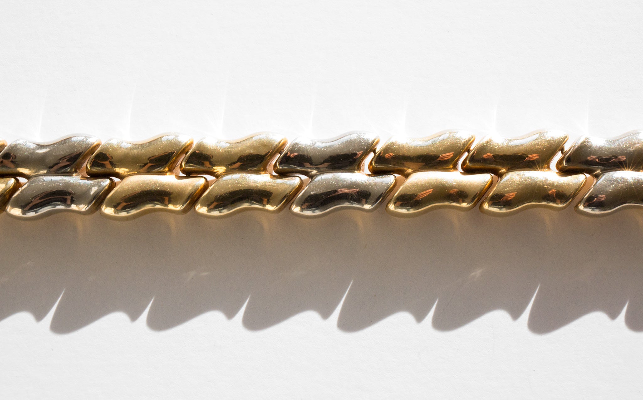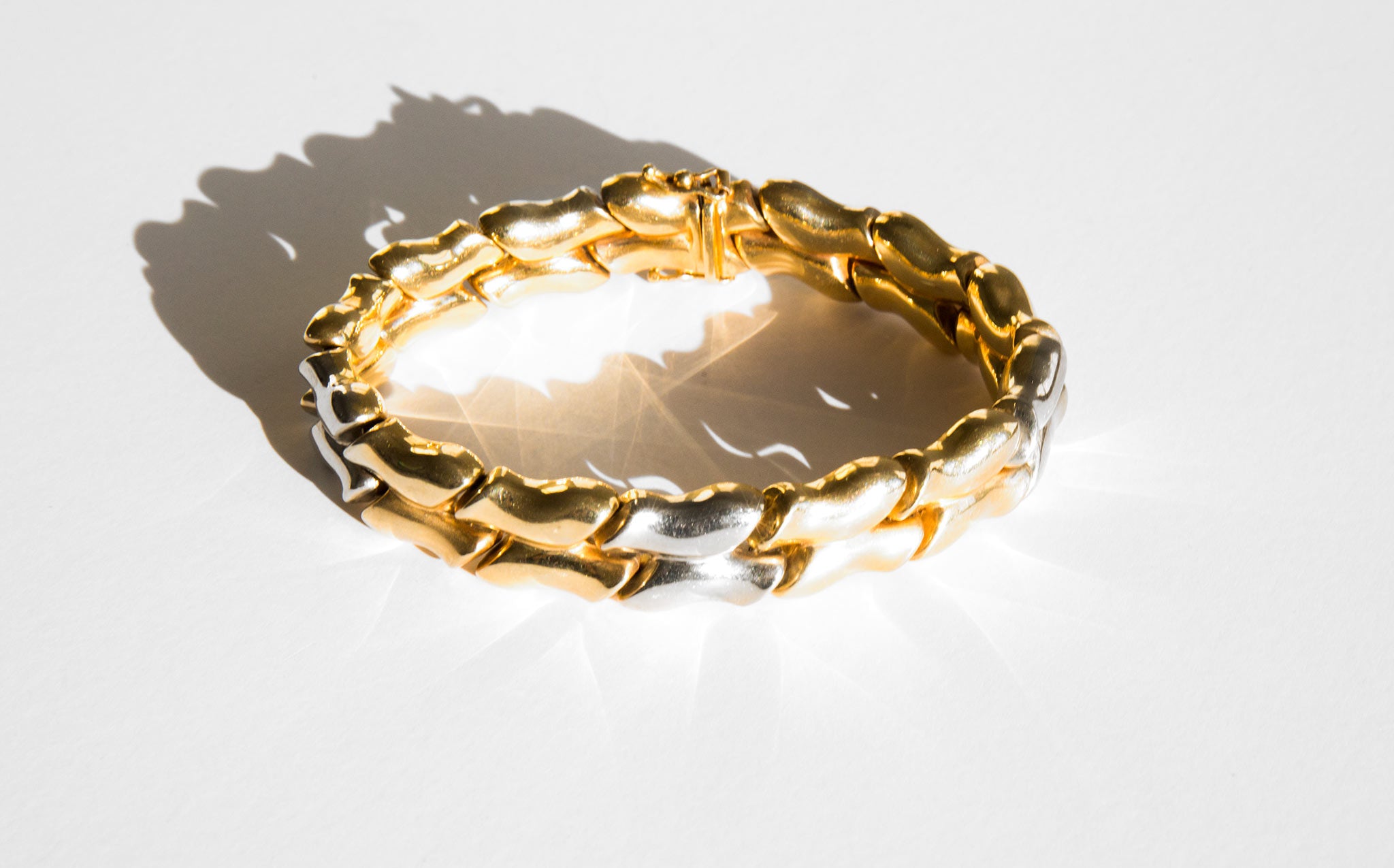 Gorgeous 14k gold, two-tone puff link bracelet.