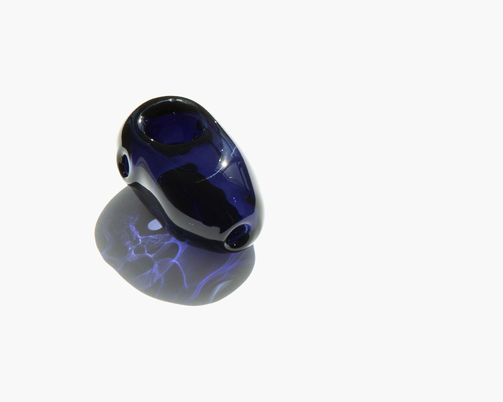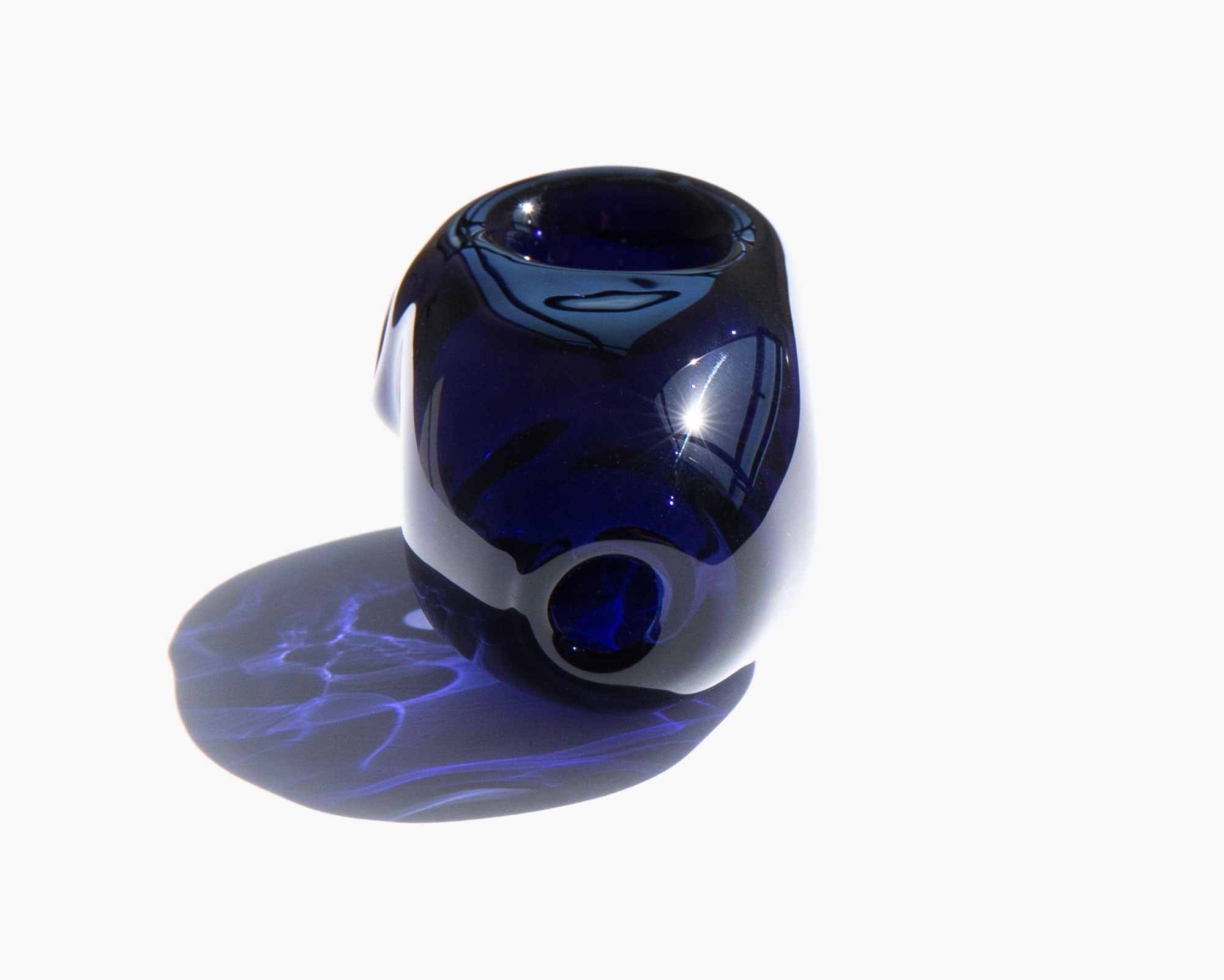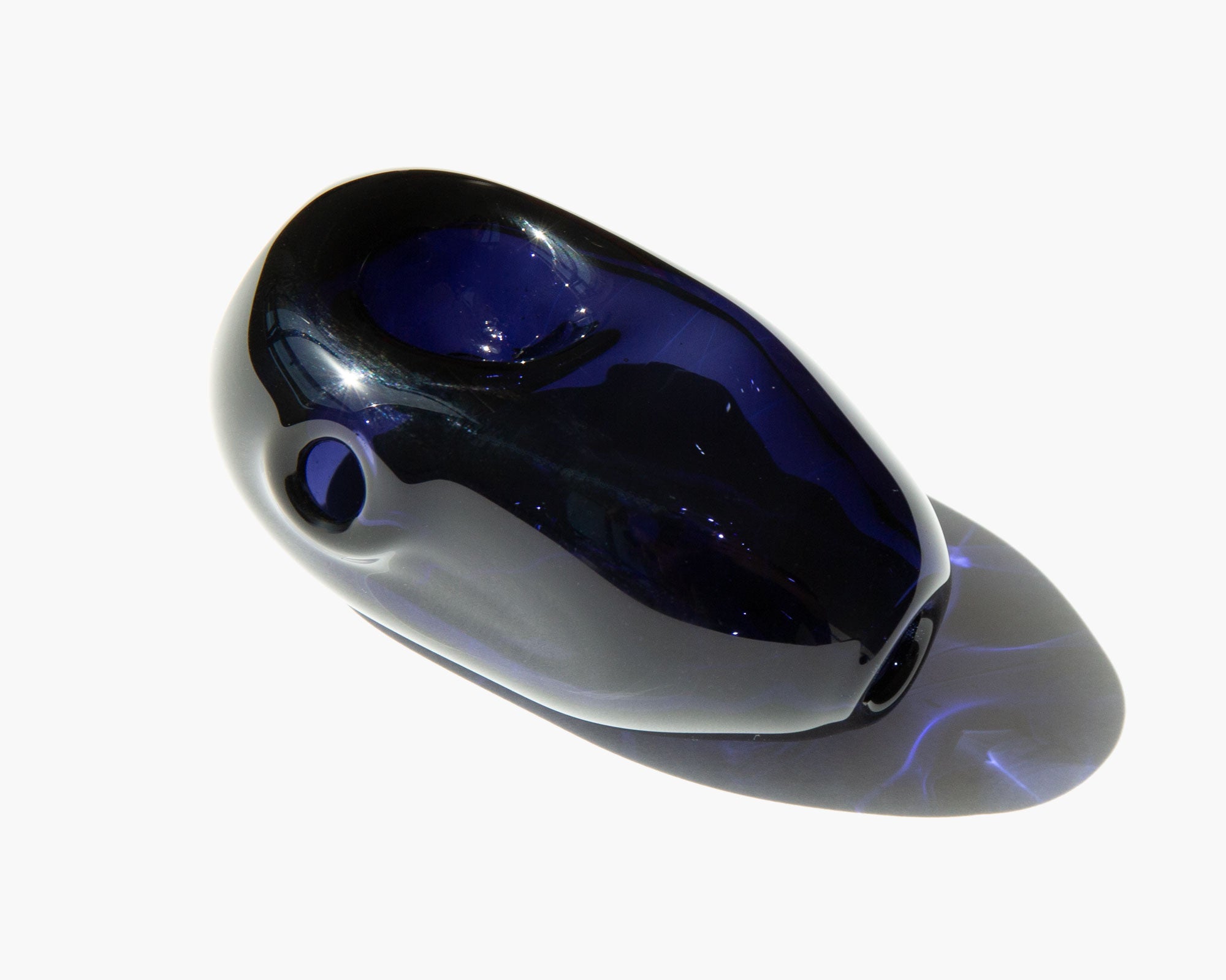 Organically shaped, jewel-toned sculptural glass pipe, hand blown in the USA.