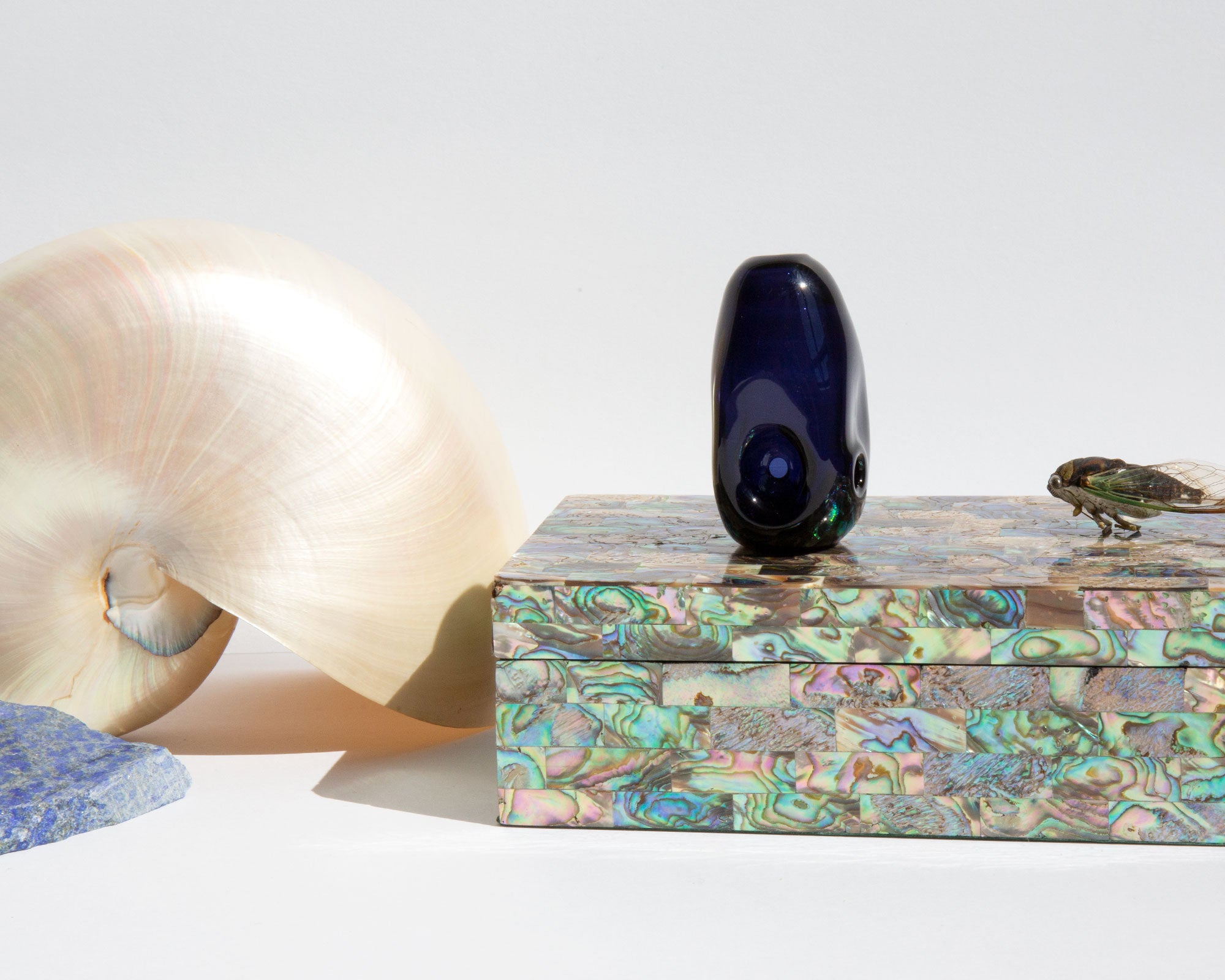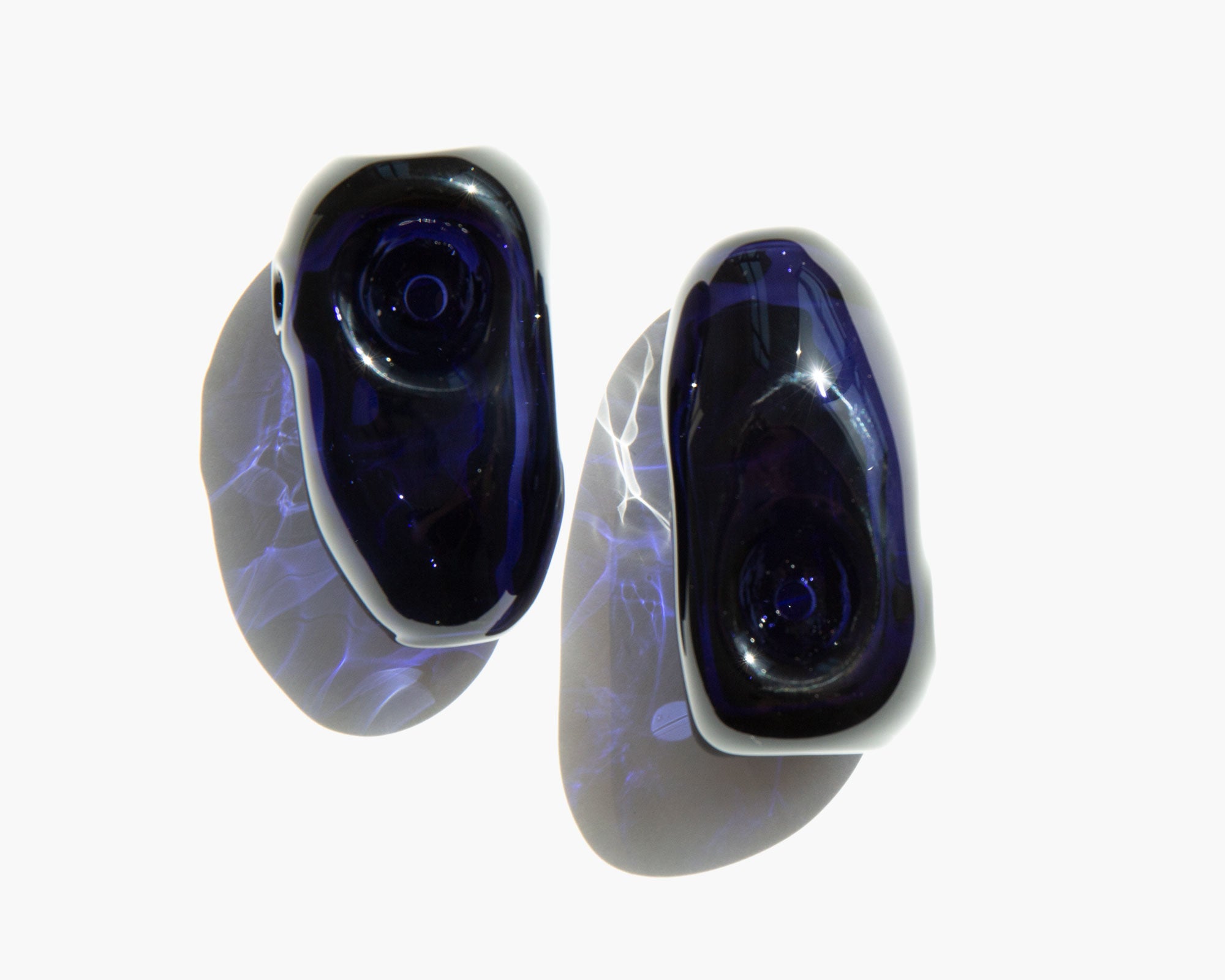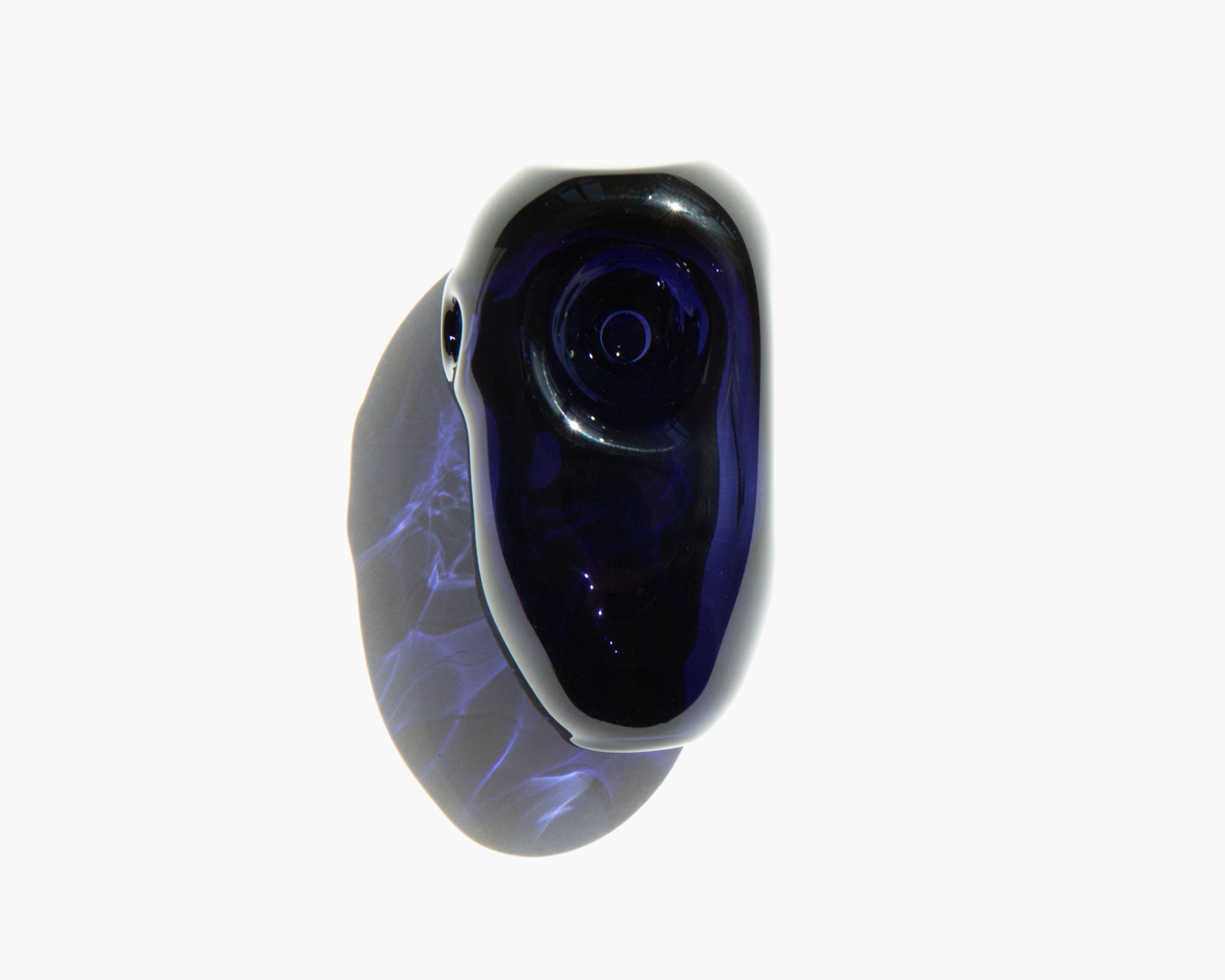 Organically shaped, jewel-toned sculptural glass pipe, hand blown in the USA.