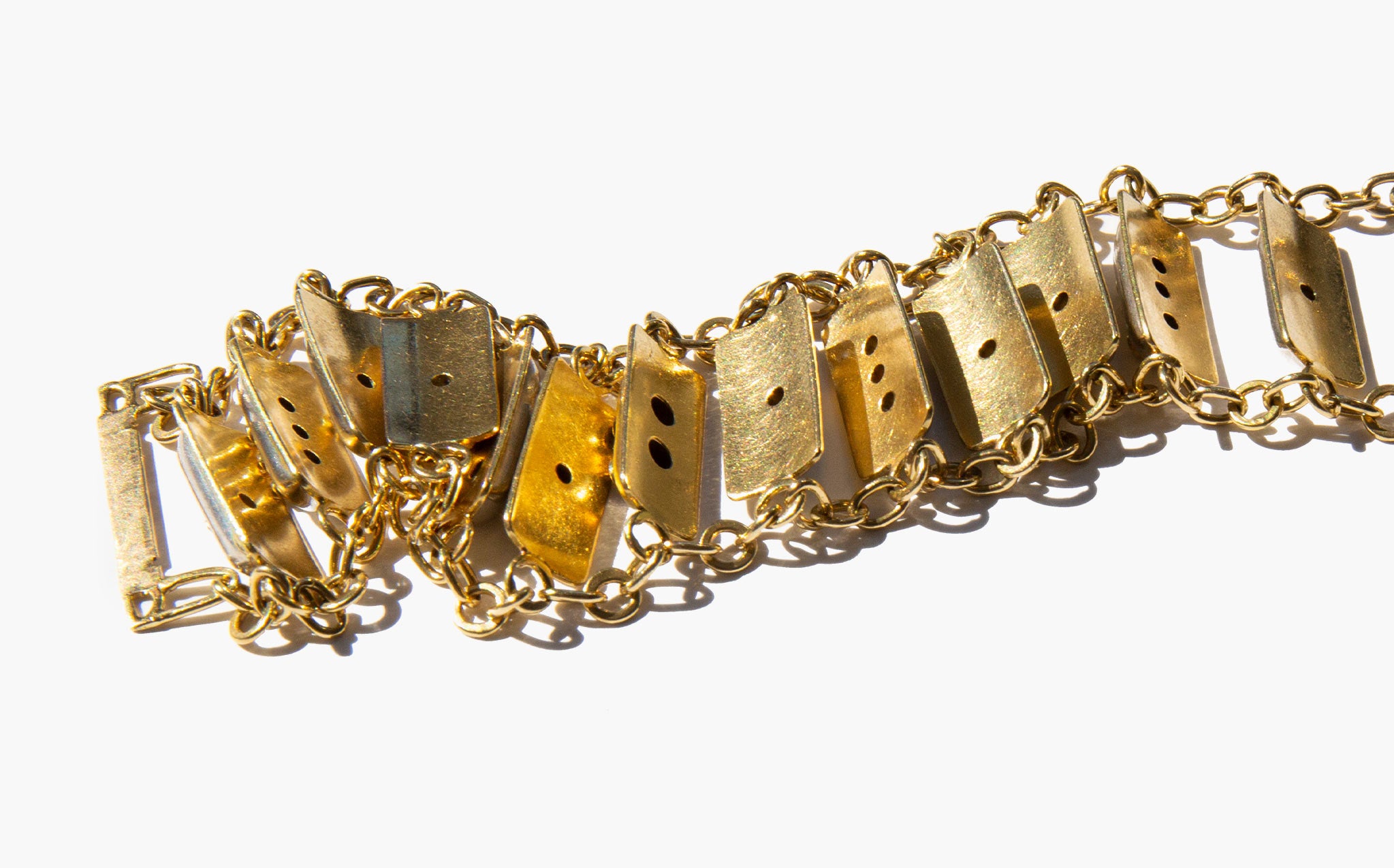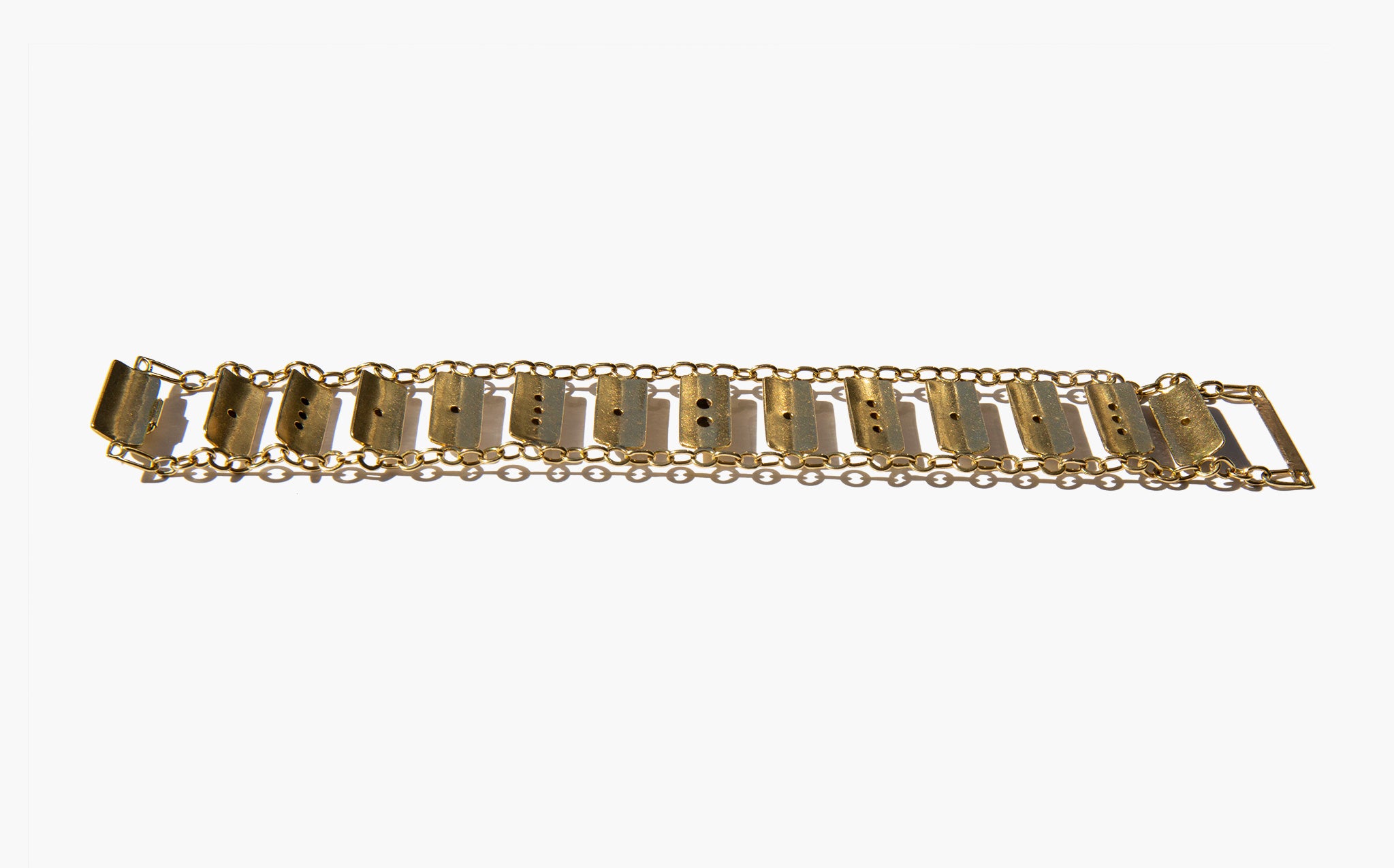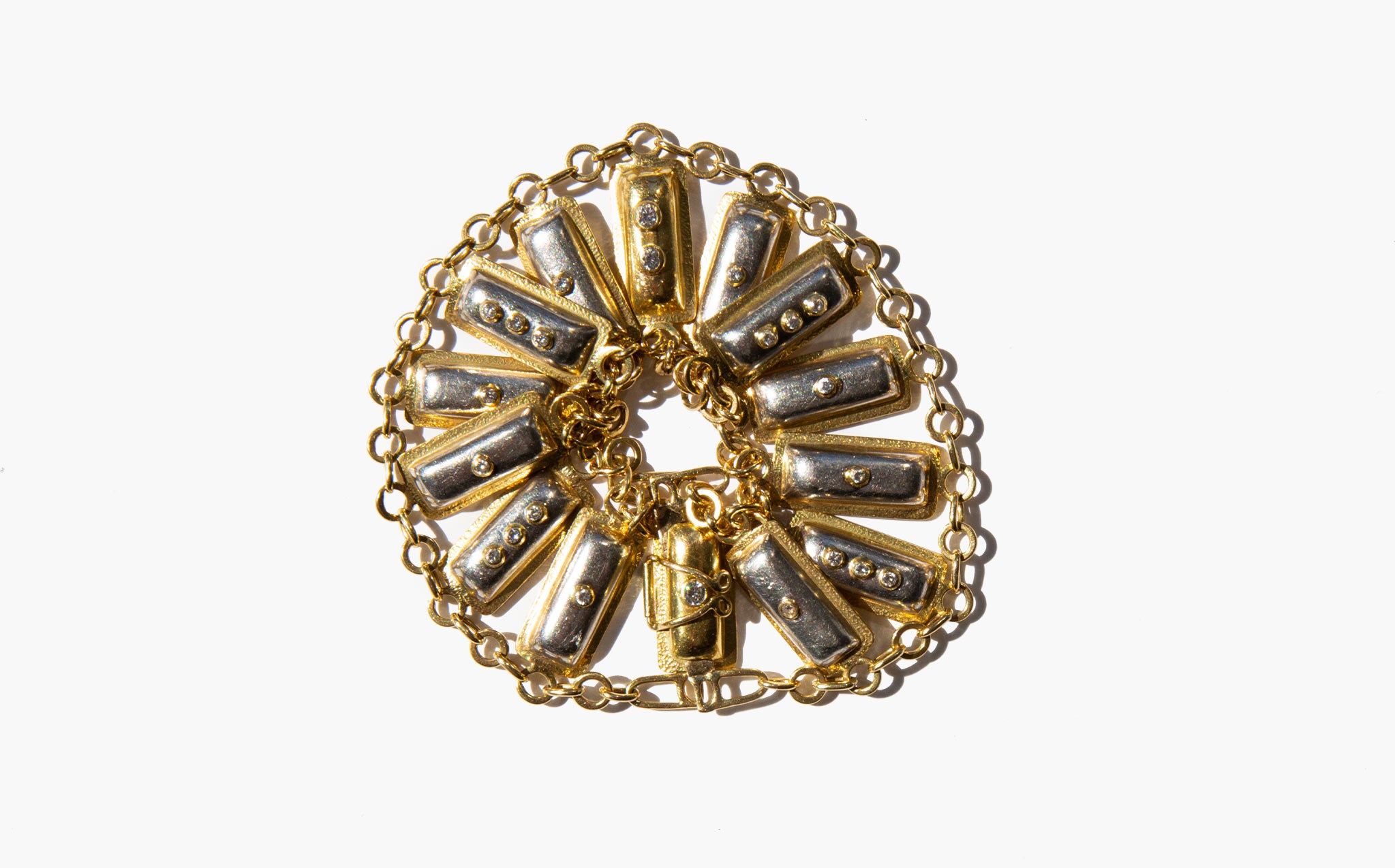 Weighty and stunning artisan handmade 18k gold and platinum bracelet with diamond accents.