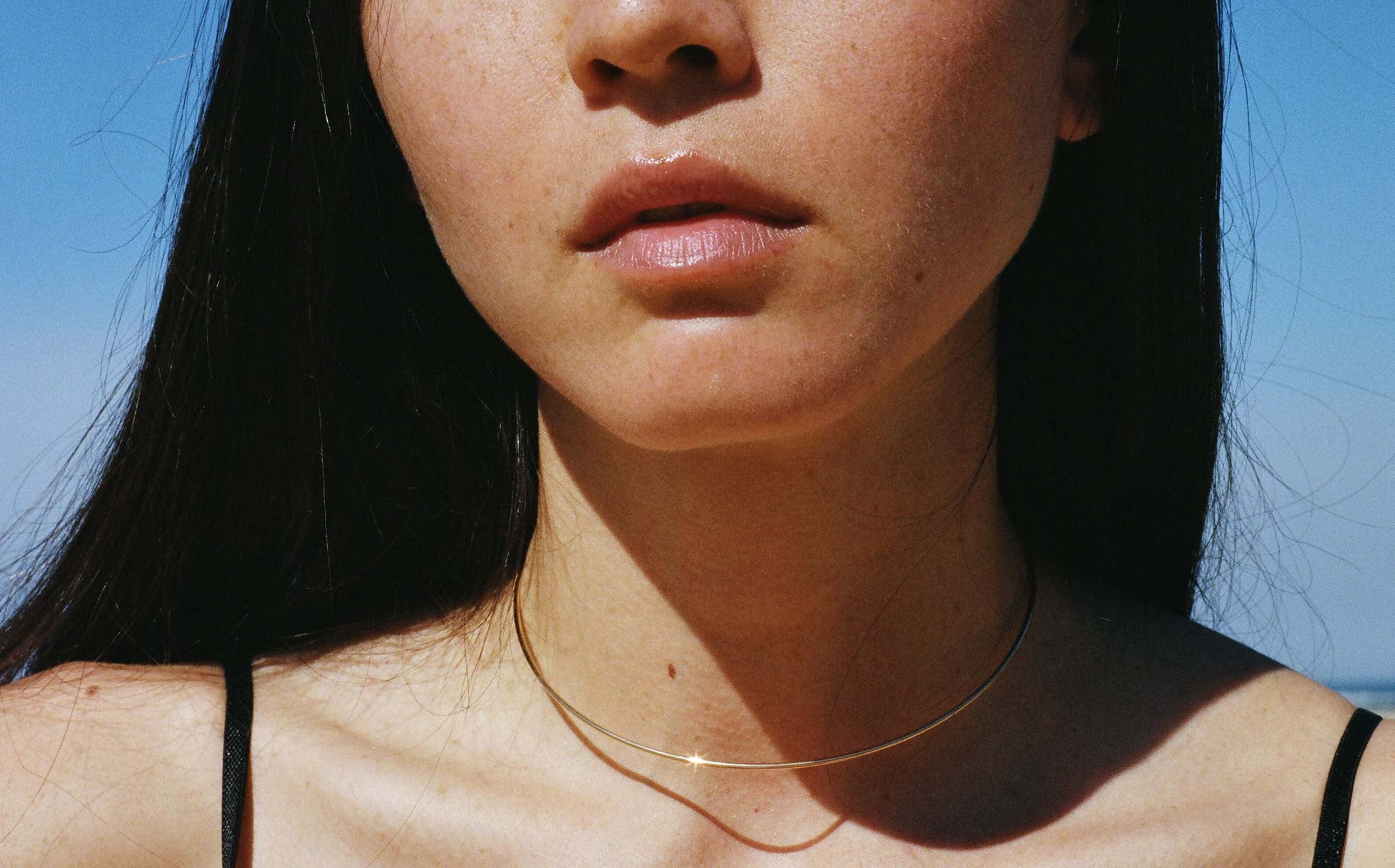Elegantly simple, polished 14k gold choker. Made in Munich.