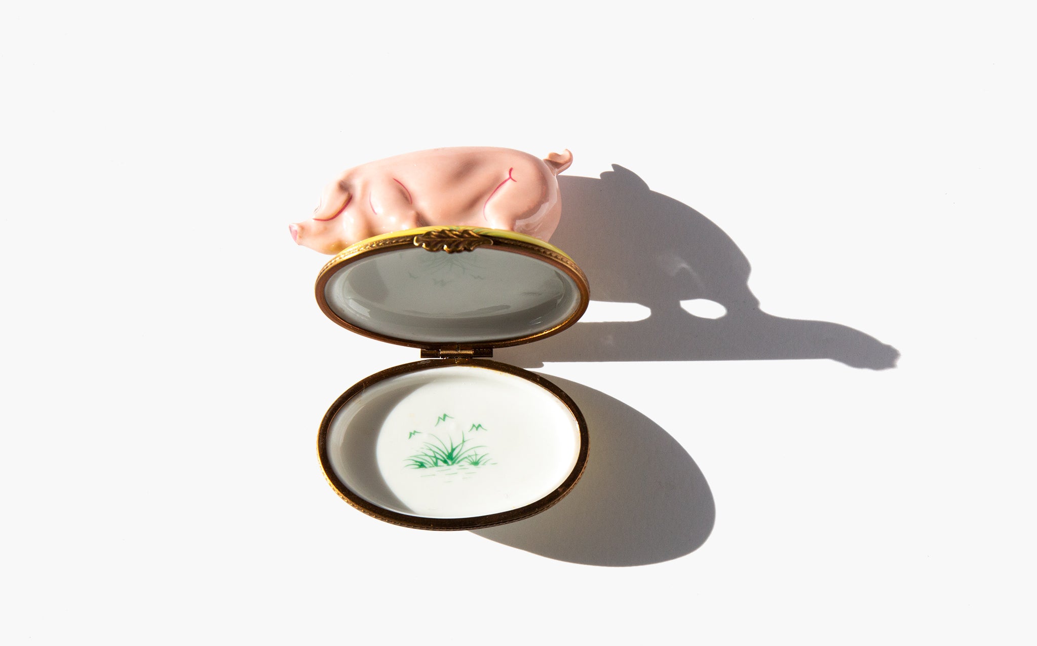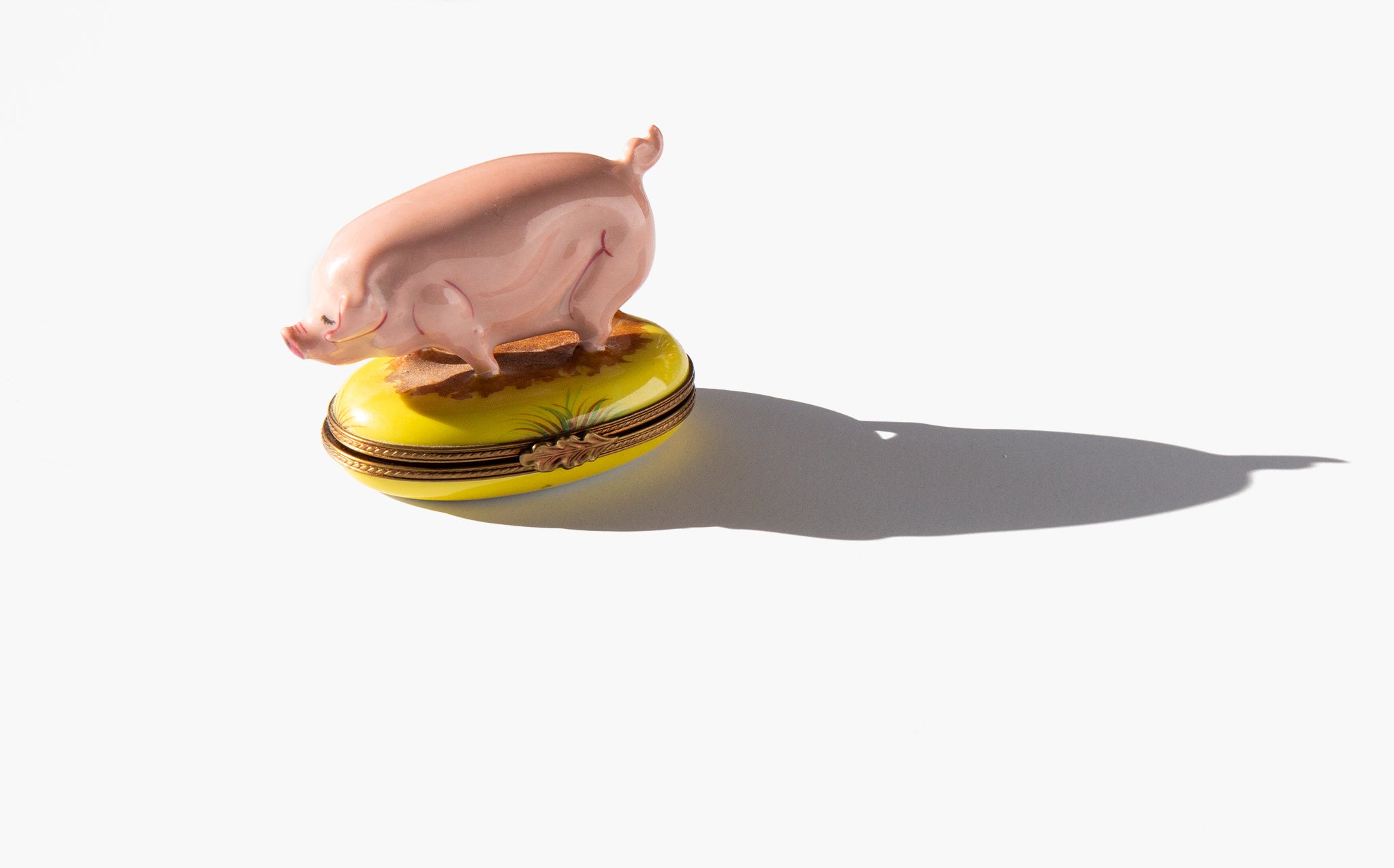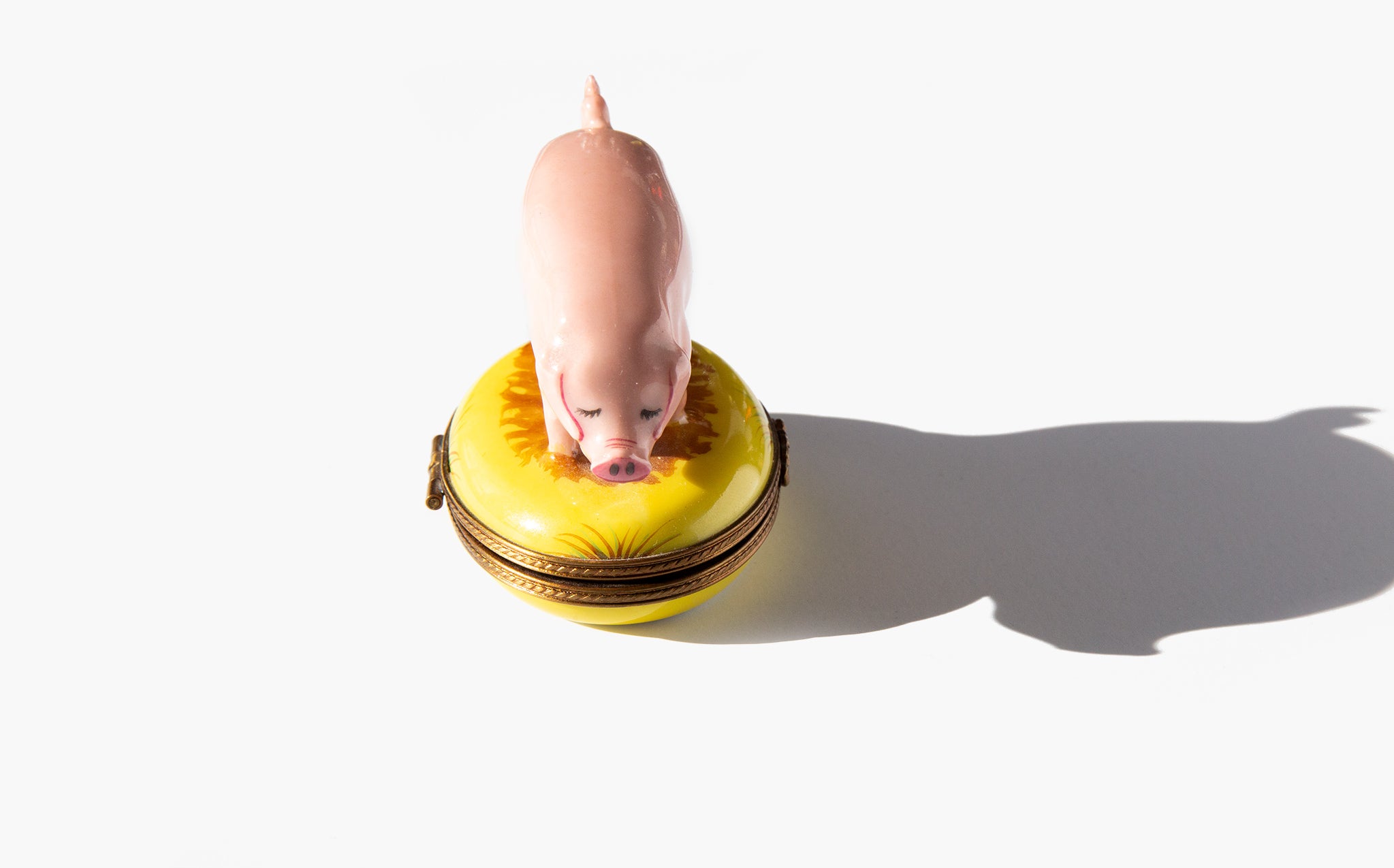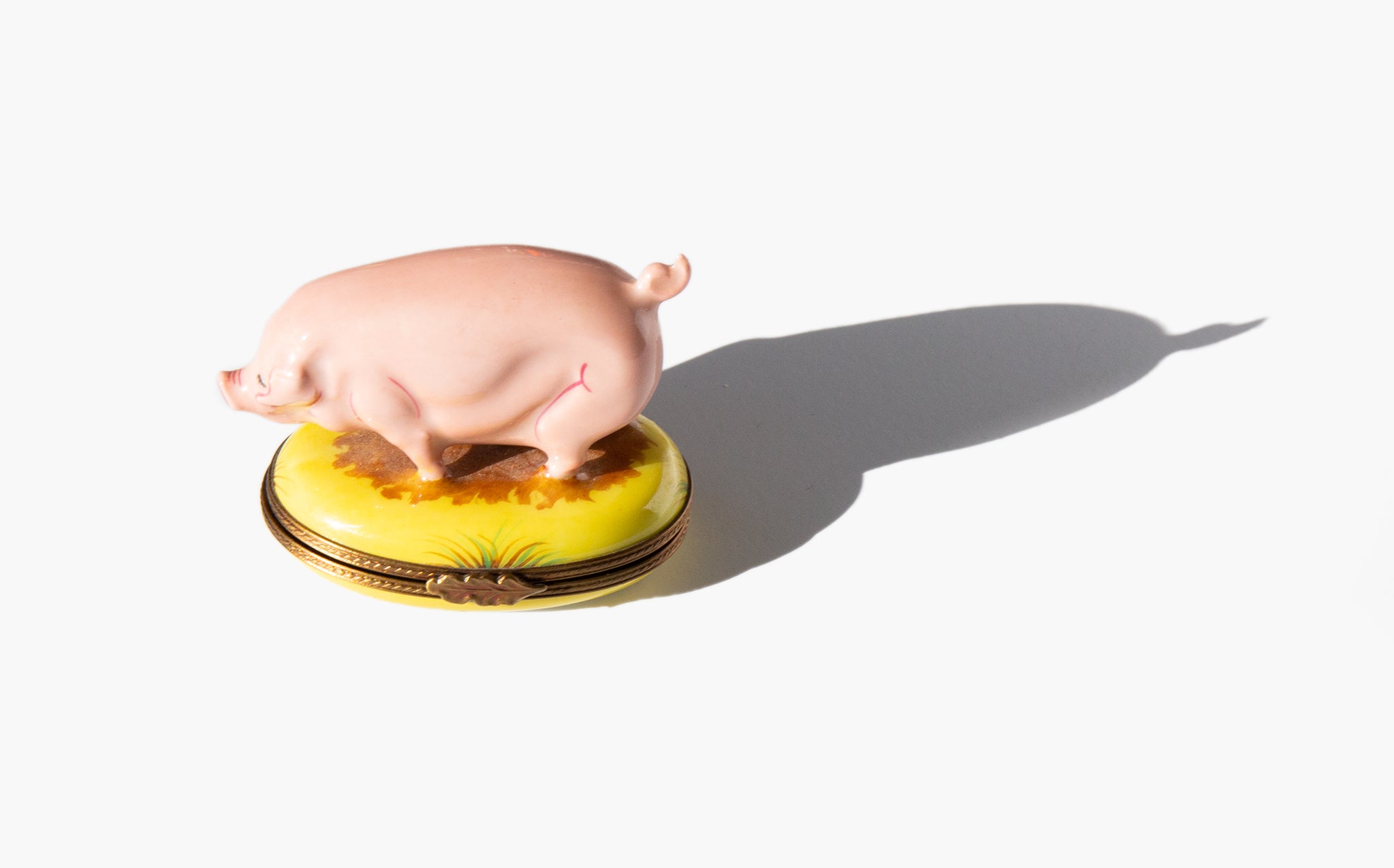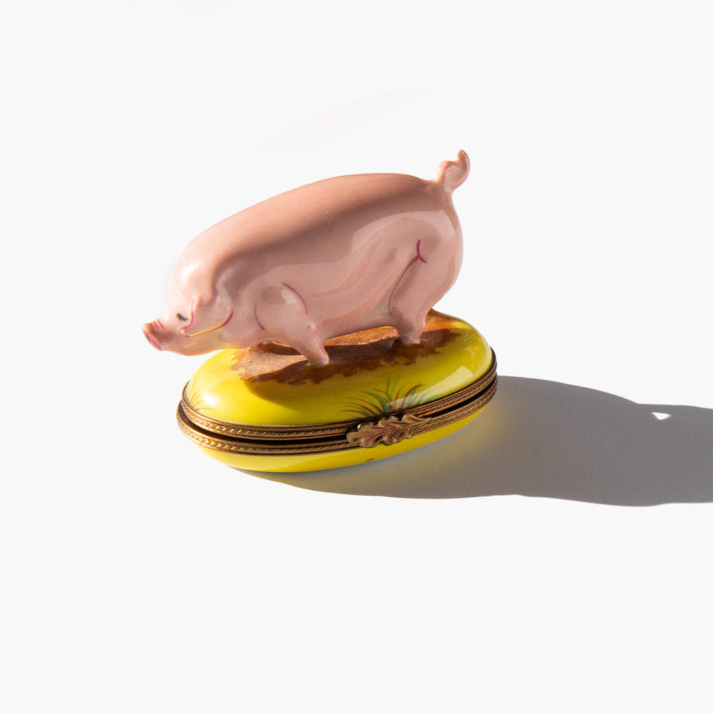 Vintage Limoges pig box. The pig is a symbol of good fortune for the new year. In German the expression "schwein gehabt” means "got lucky there!" but translates literally to "got pig!". The pig has been a symbol of luck and prosperity since the middle ages because the possession of many pigs was a sign of wealth and meant that you would never go hungry. A small pig is still often gifted around the holidays as a token of good fortune for the new year.