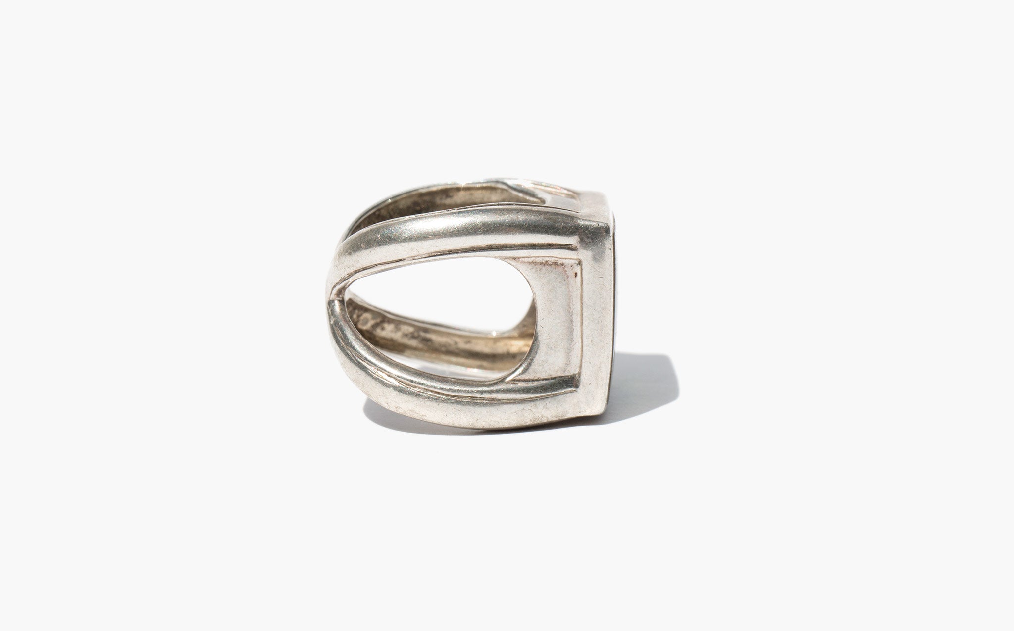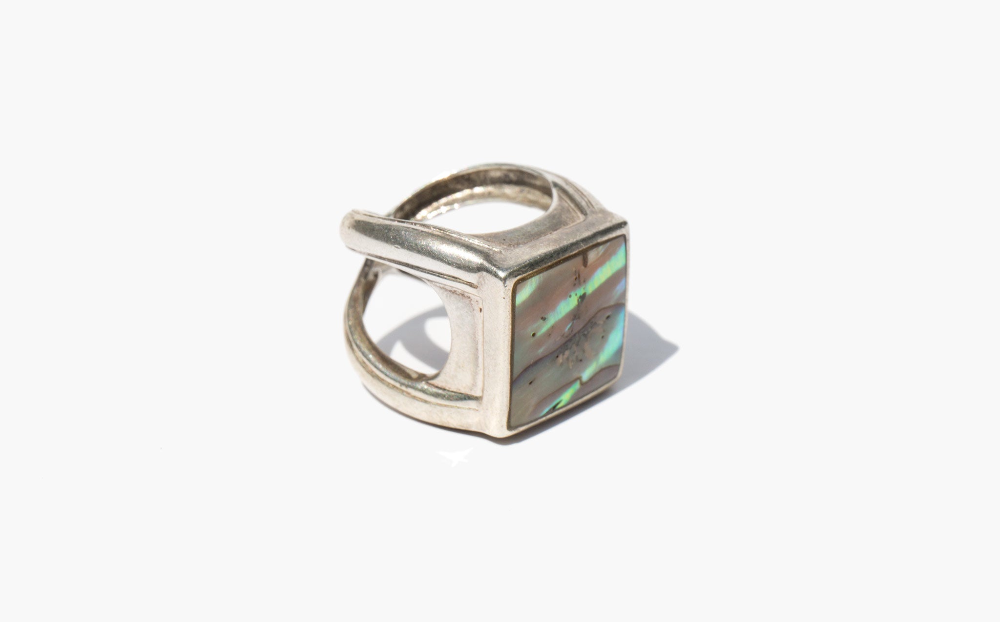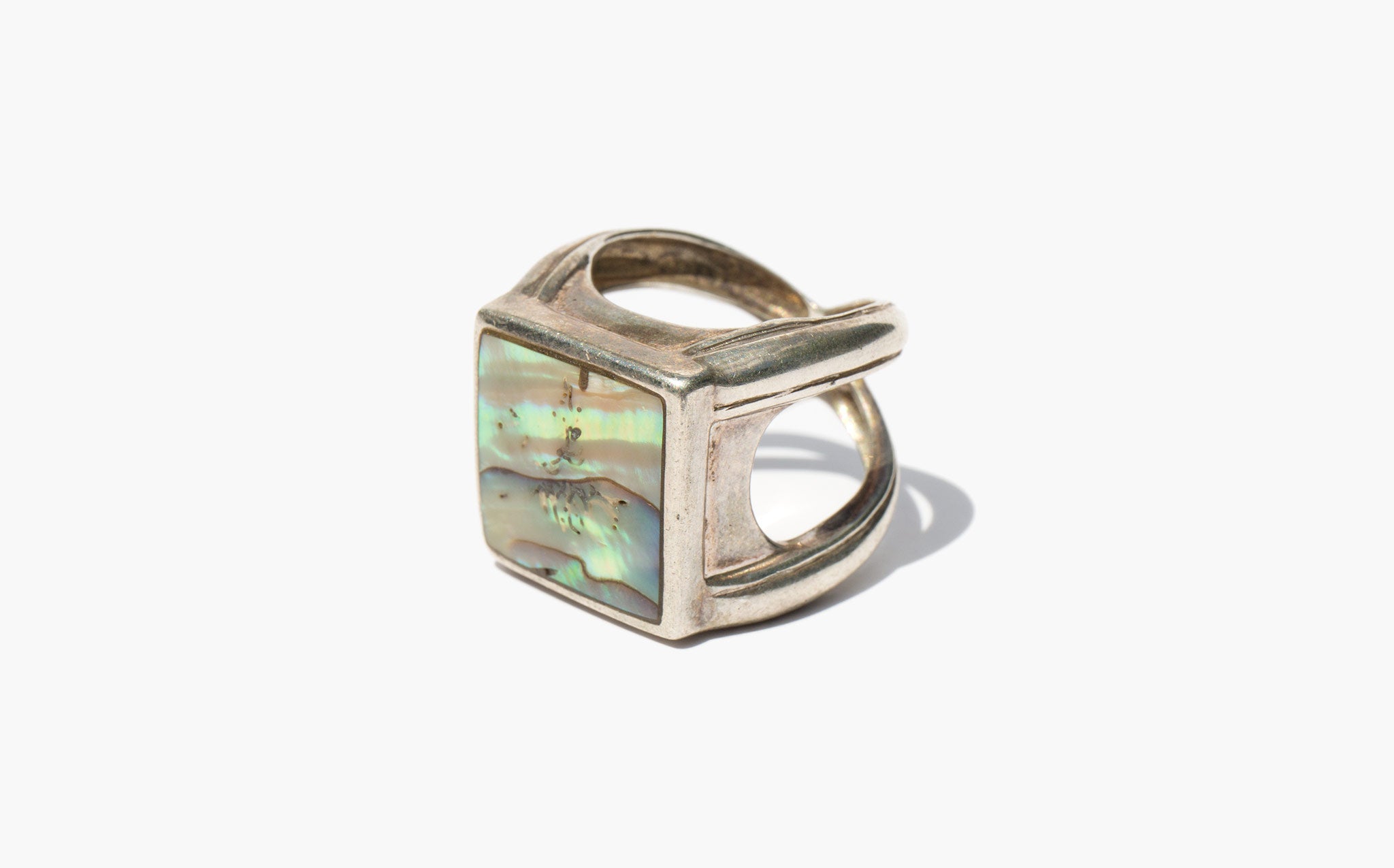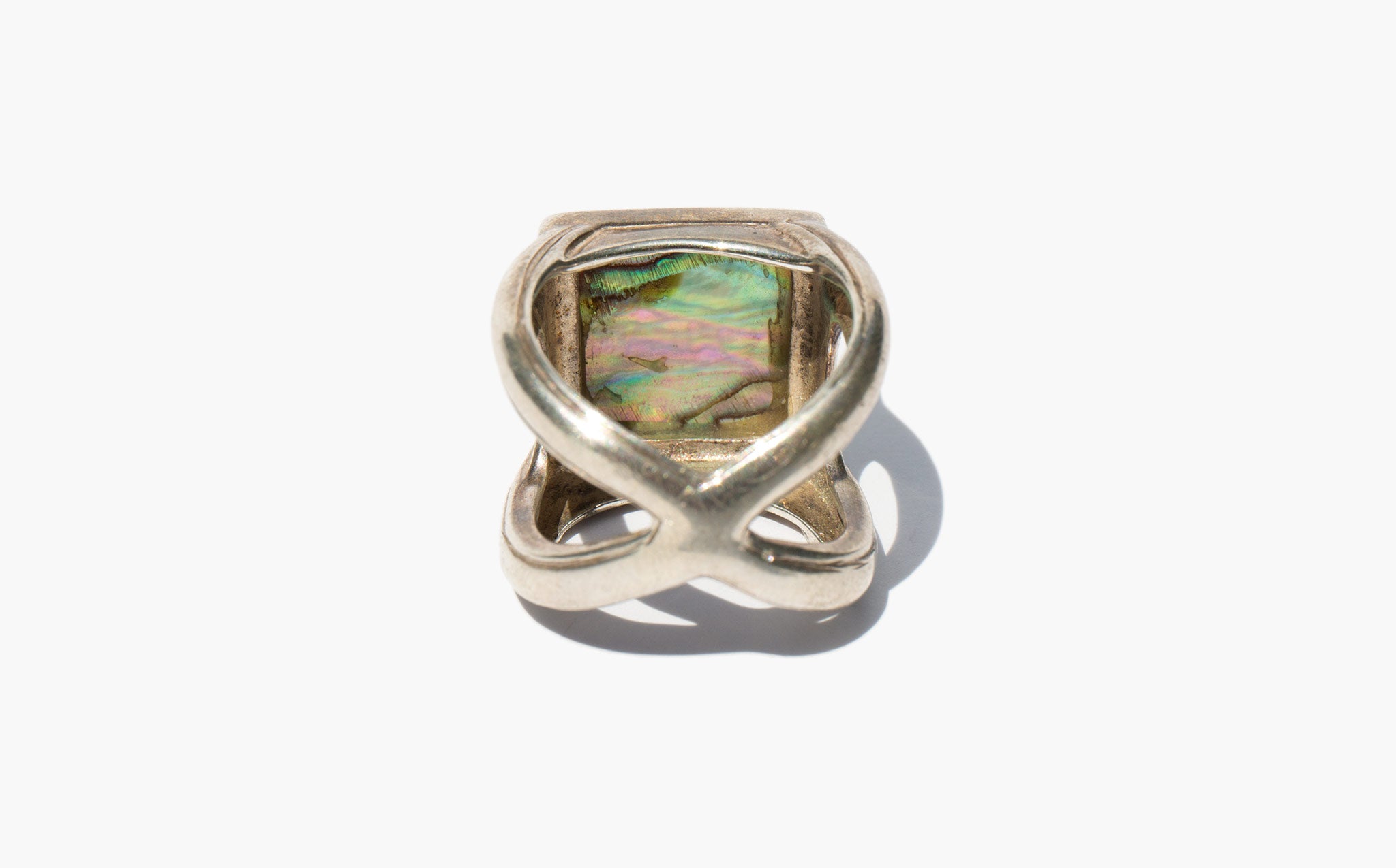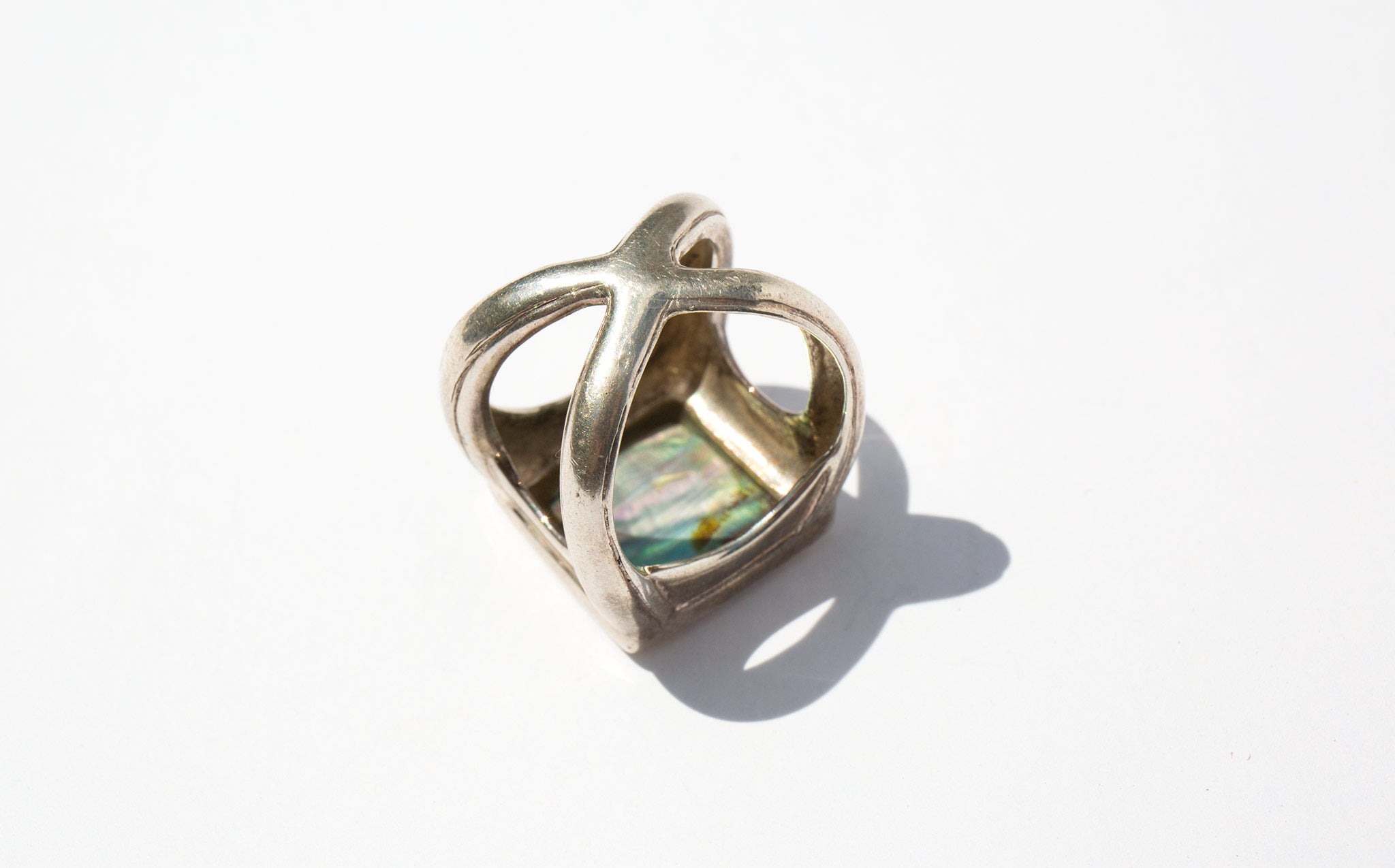 Vintage sterling silver ring with pastel colored, striated abalone.