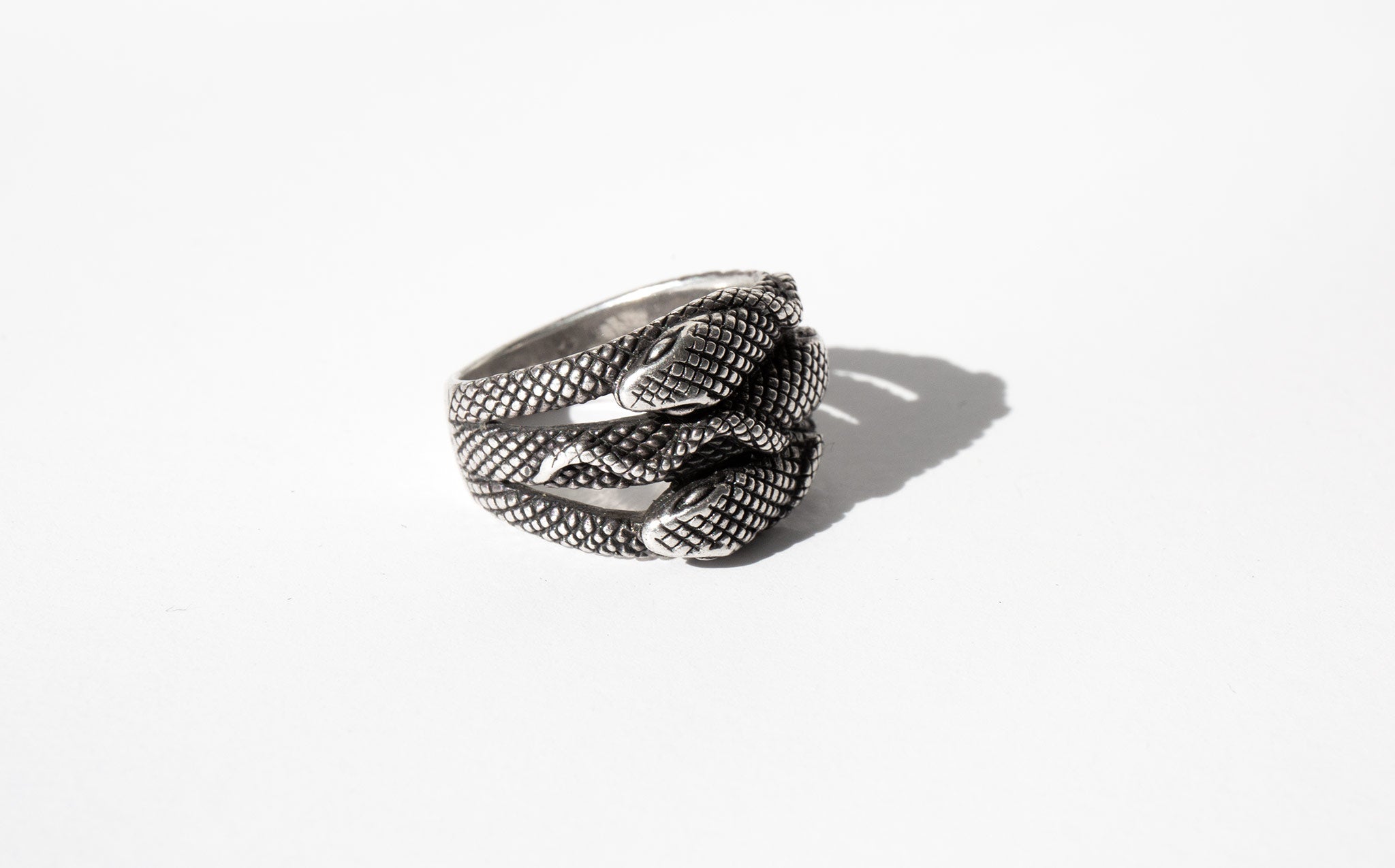 Sterling silver tripled snake ring. Three entwined snakes is thought to be a symbol of transcendence and enlightenment.
