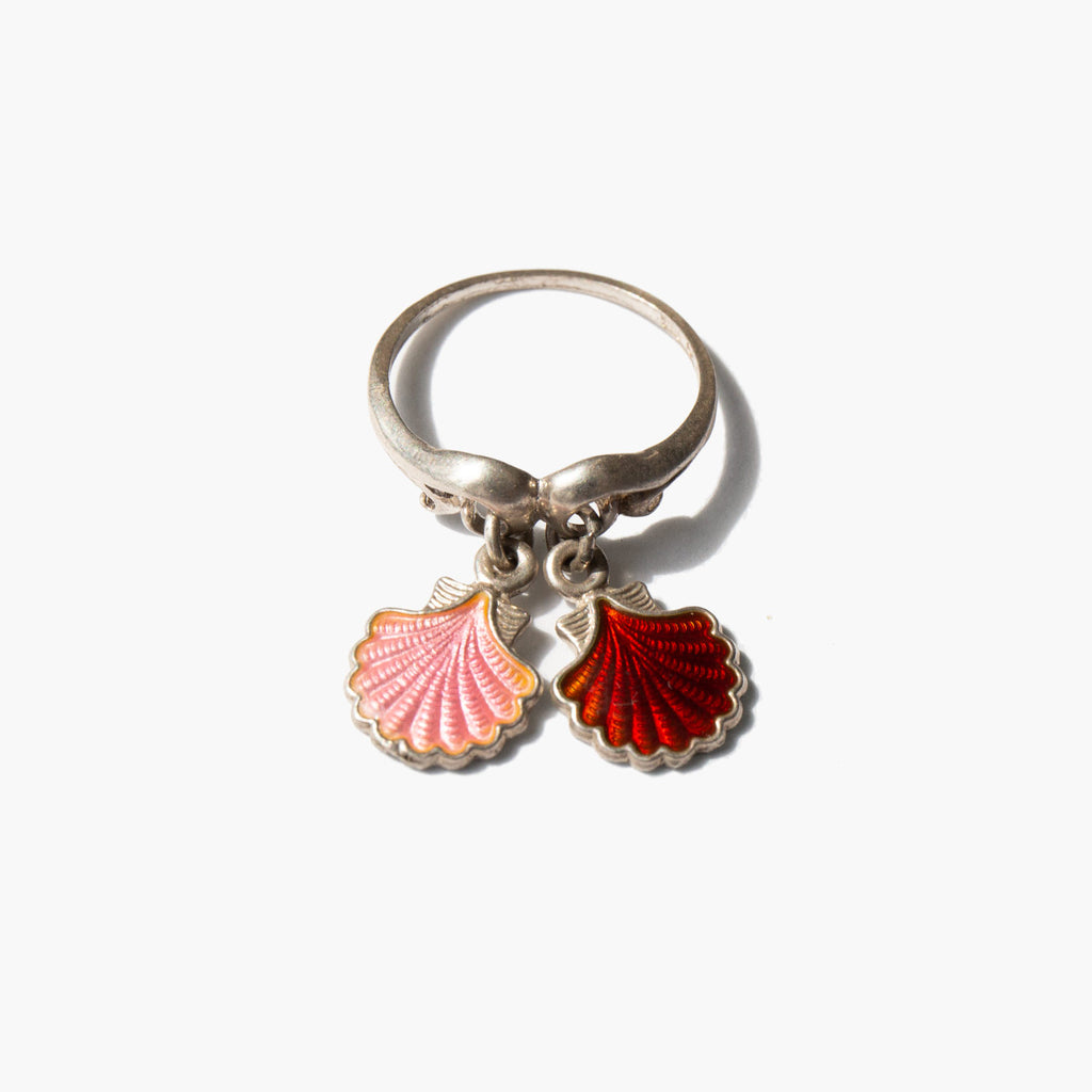 Norwegian sterling silver guilloche enamel seashells charm ring.
