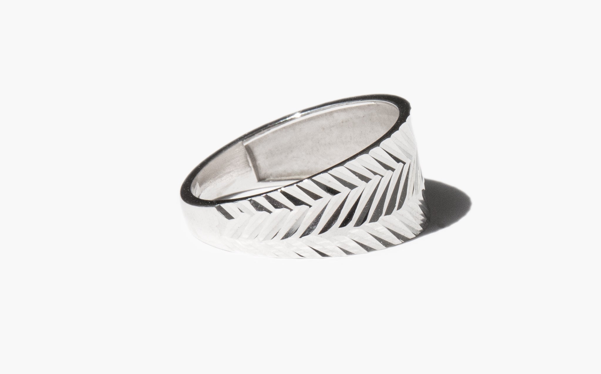 Ring is a US size { }. Most rings can be sized. Please contact info@kindredblack.com to inquire.