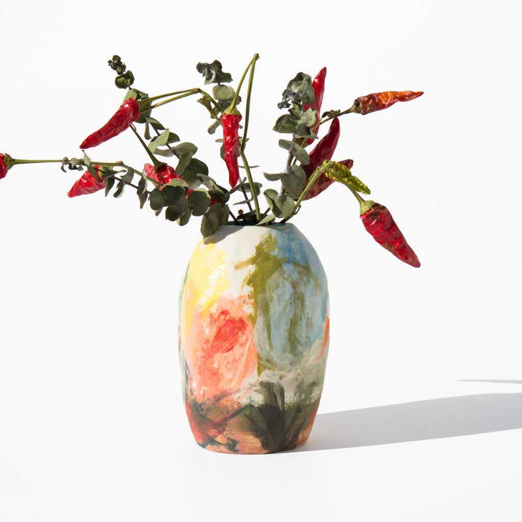 Japanese influenced, hand pinched ceramic vase made exclusively for Kindred Black and based off of our signature floral. Each piece is hand built, painted and glazed, making each vase a unique work of art.