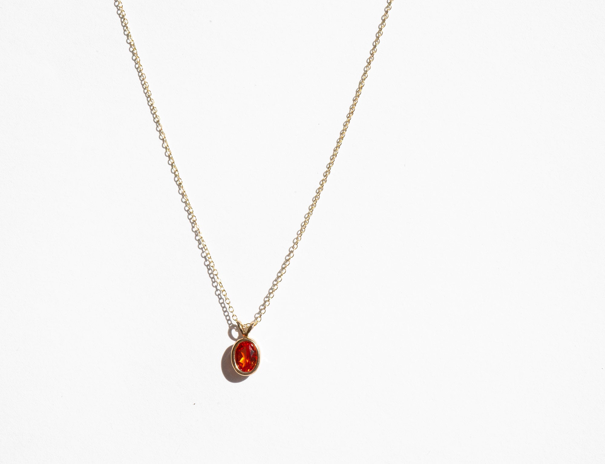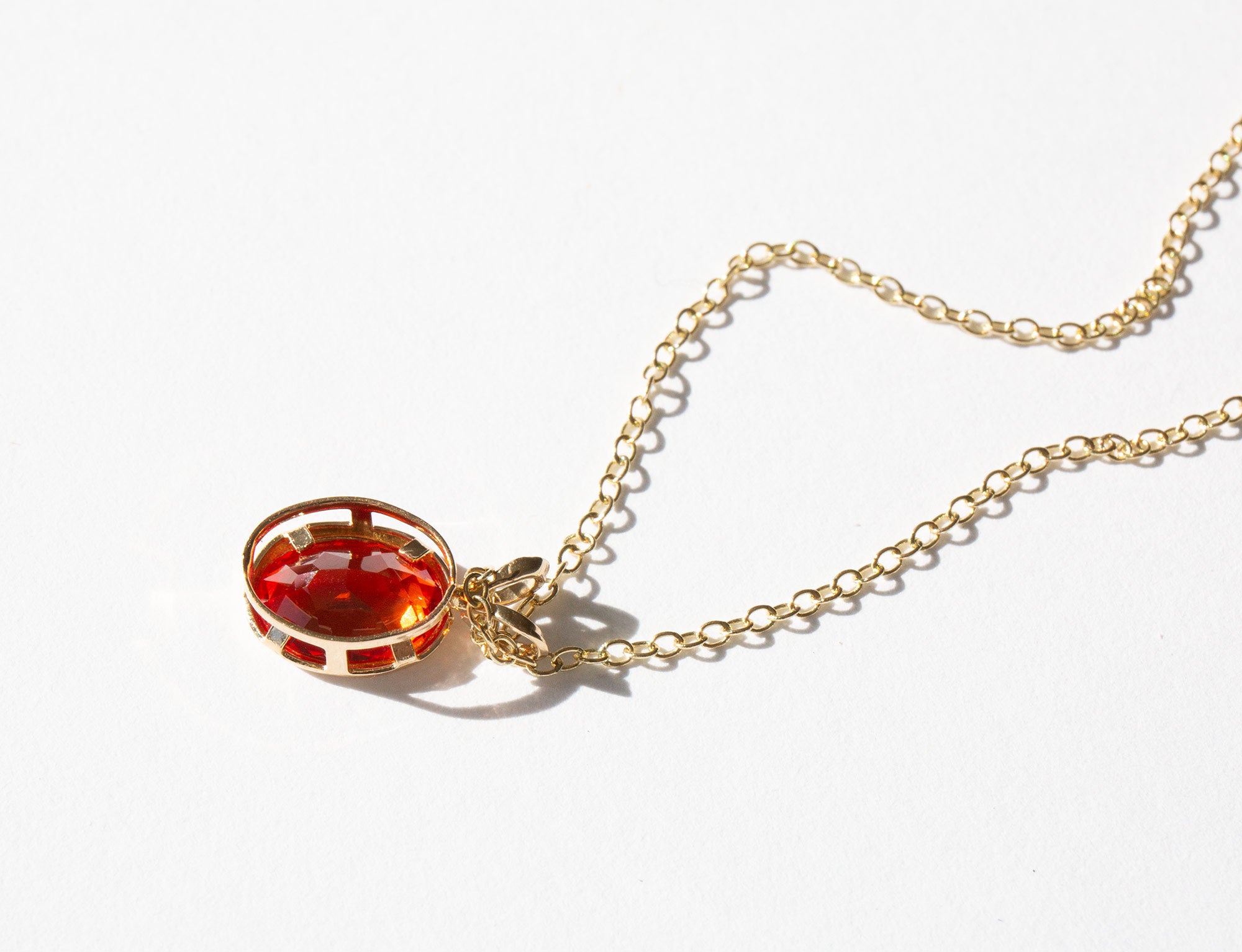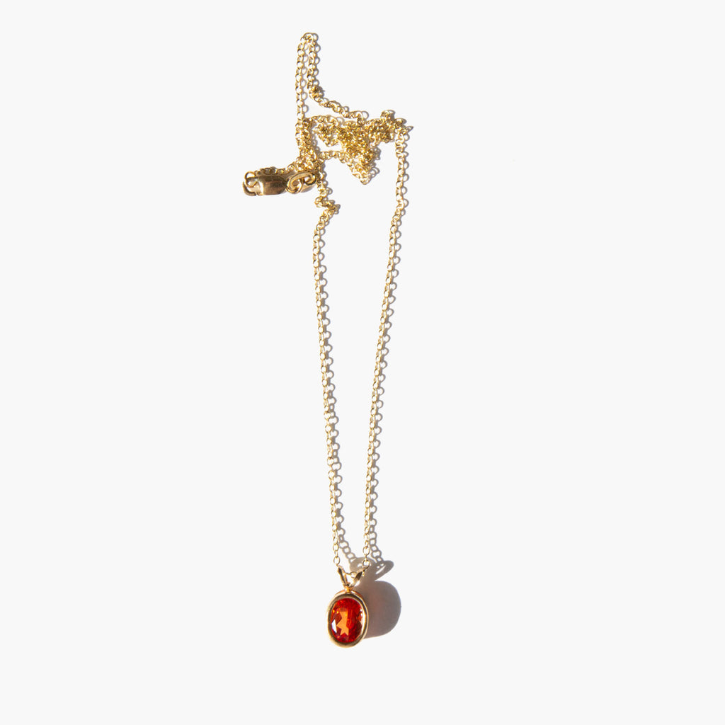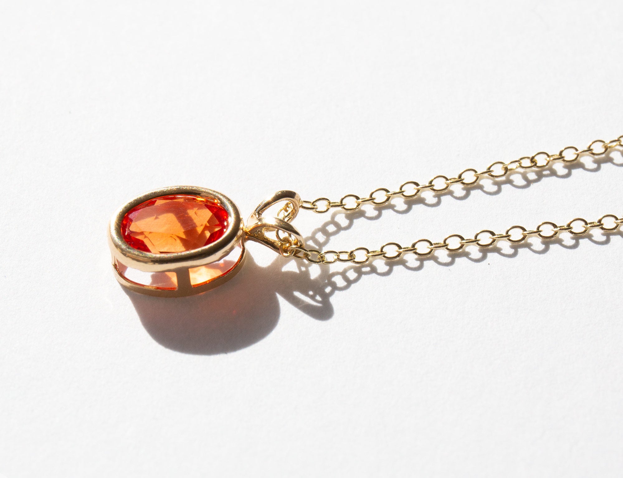 Pretty and colorful citrine gem set in 14k gold on a delicate 14k gold chain. The happy stone, citrine is said to dispel negative energy and bring happiness and positivity into the life of the those who wear it.