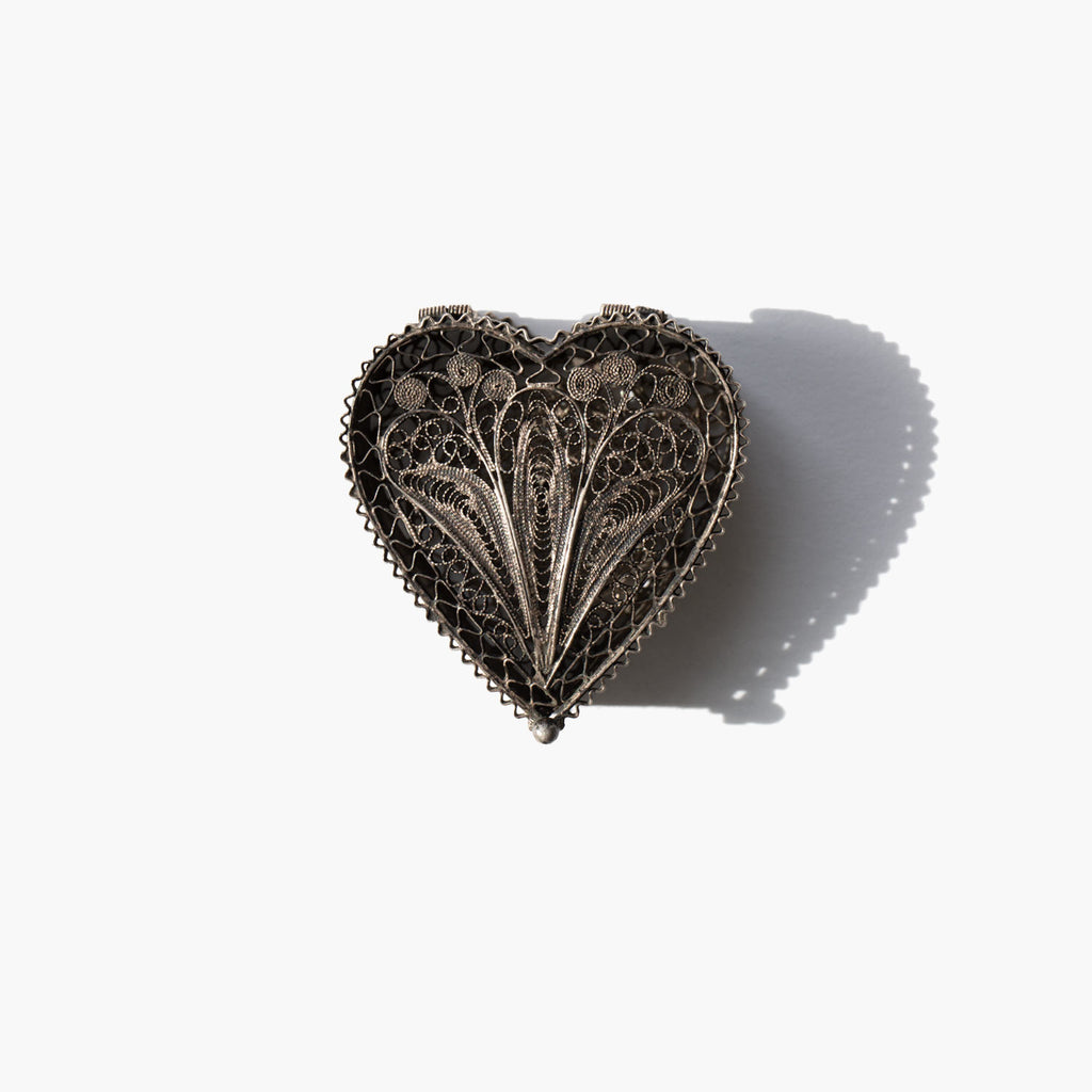 Signed filigree 800 silver heart shaped tiny treasures box.