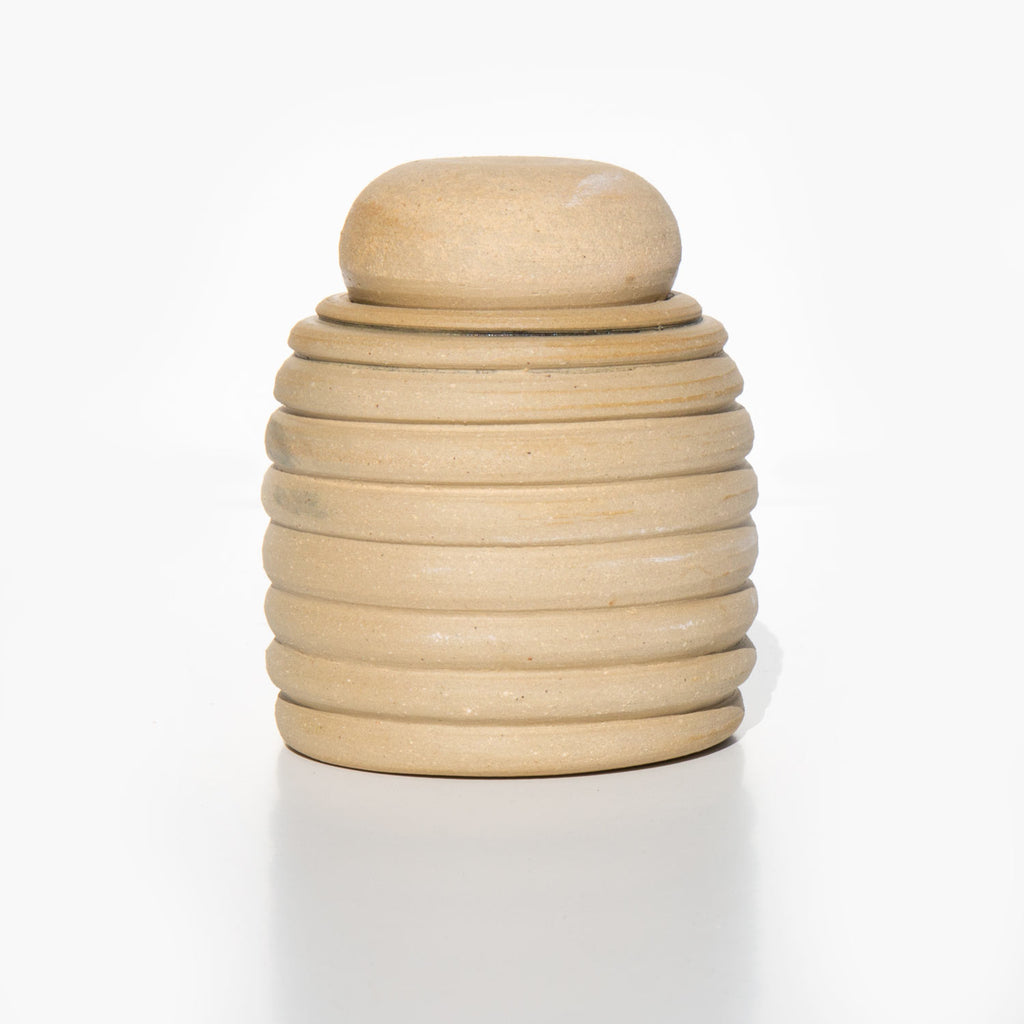 Sculptural jar with an orb shaped lid, perfect for tea, herbs, cotton balls, and tiny treasures of all kinds. Handmade with wild clay collected in Abiquiu, New Mexico with a deep black glazed interior.