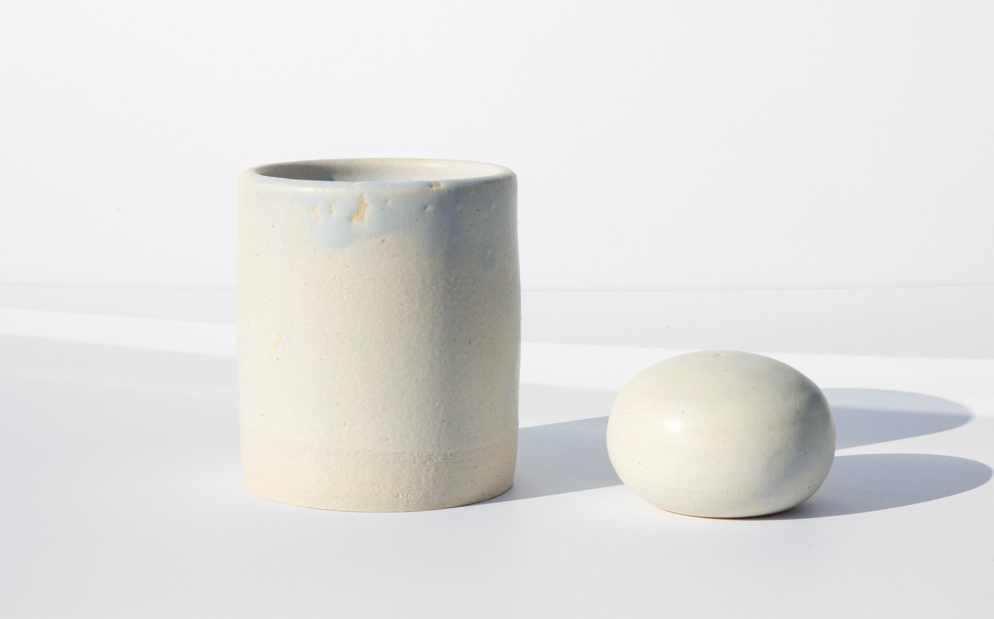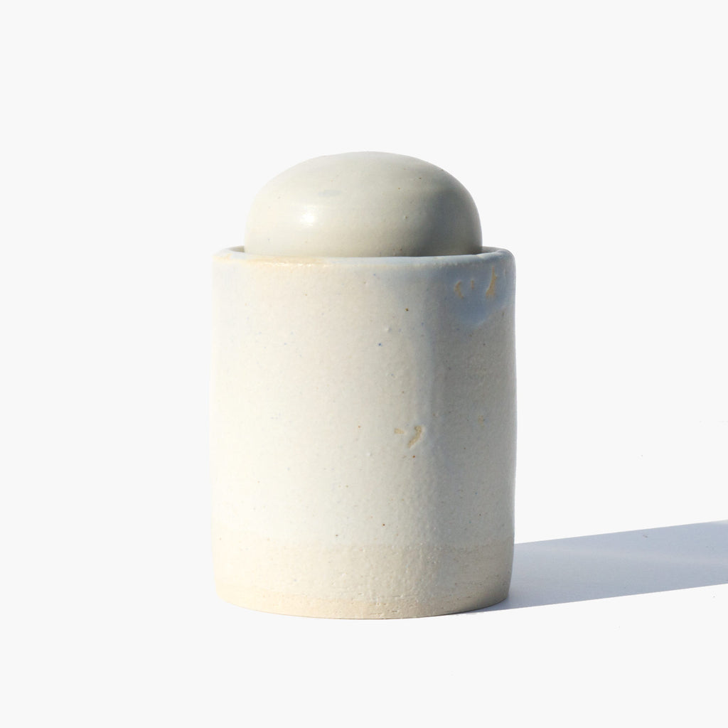 Sculptural jar with an orb shaped lid, perfect for tea, herbs, cotton balls, and tiny treasures of all kinds.