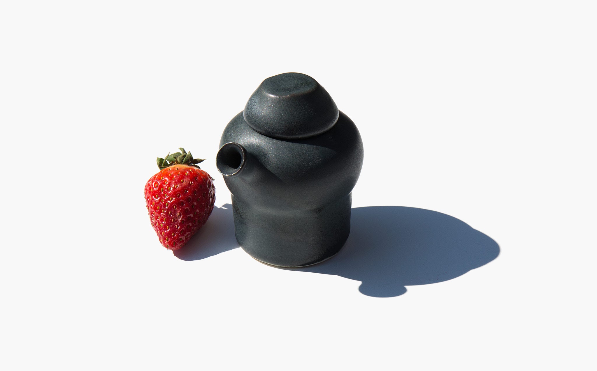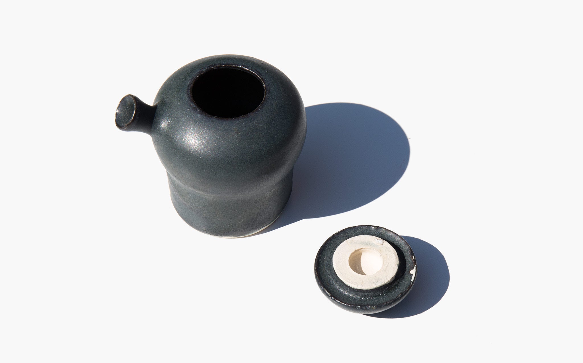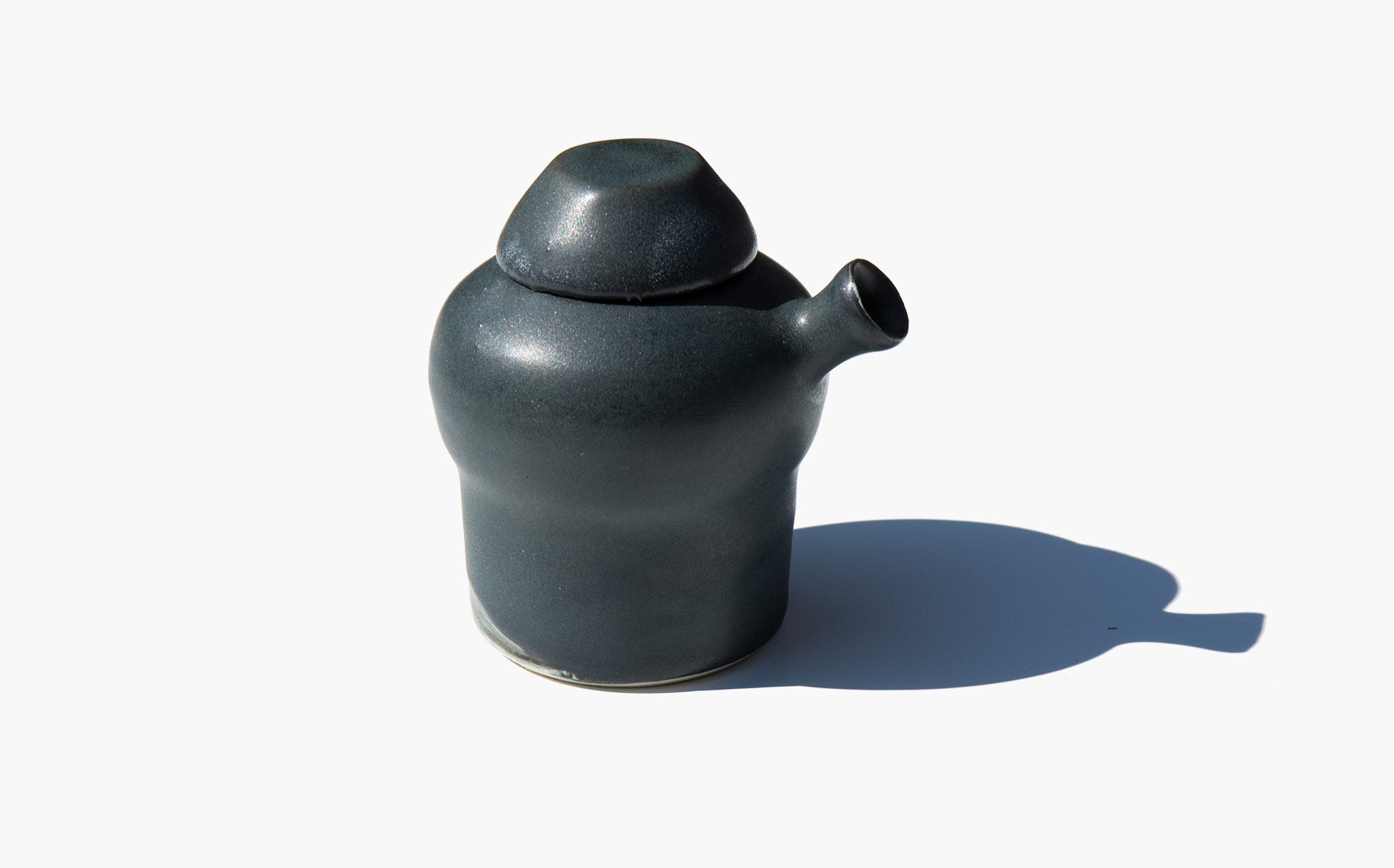 Spouted table sculpture that can hold up to 4 ounces of soy sauce, vinegar, oils, and other cooking essentials.