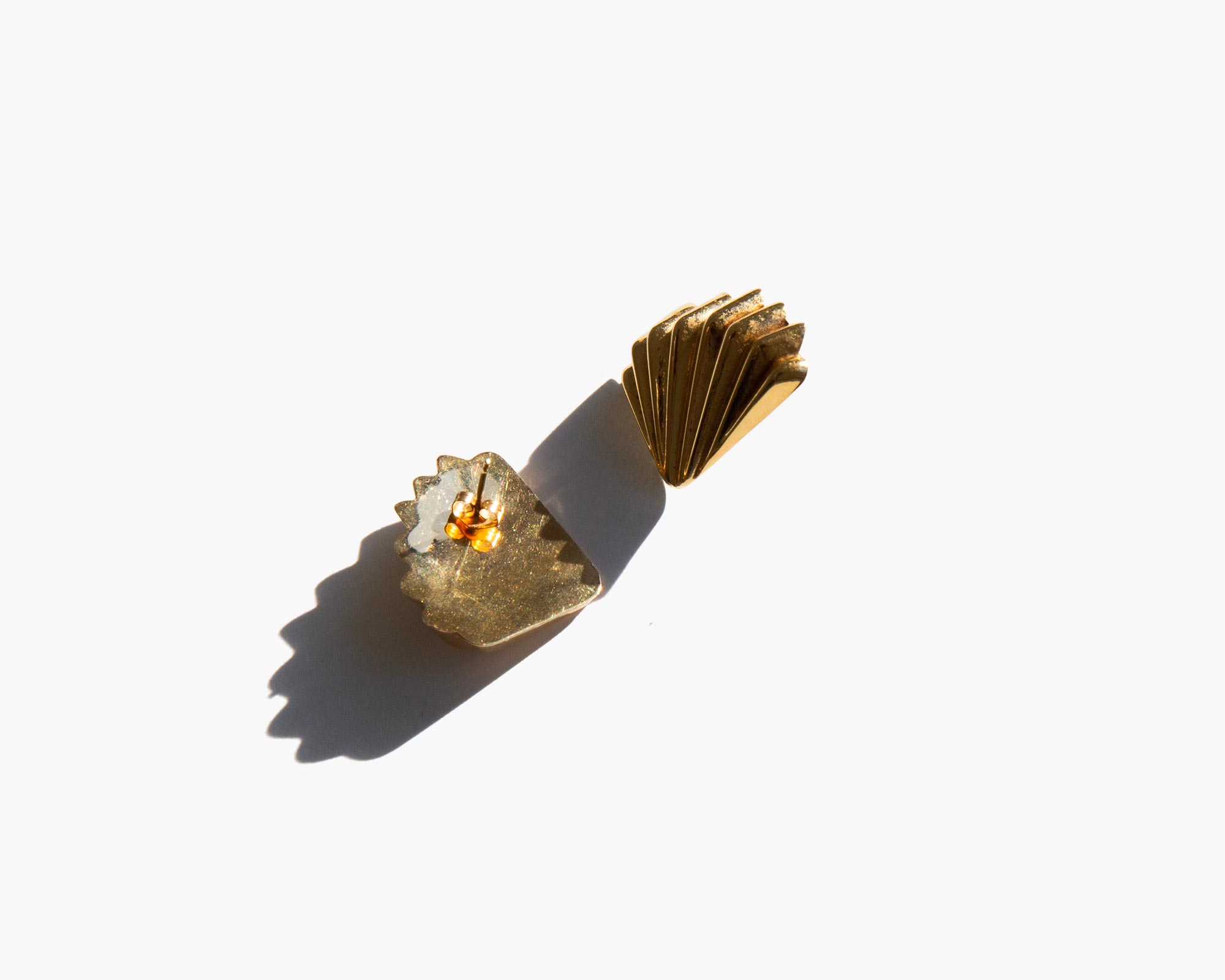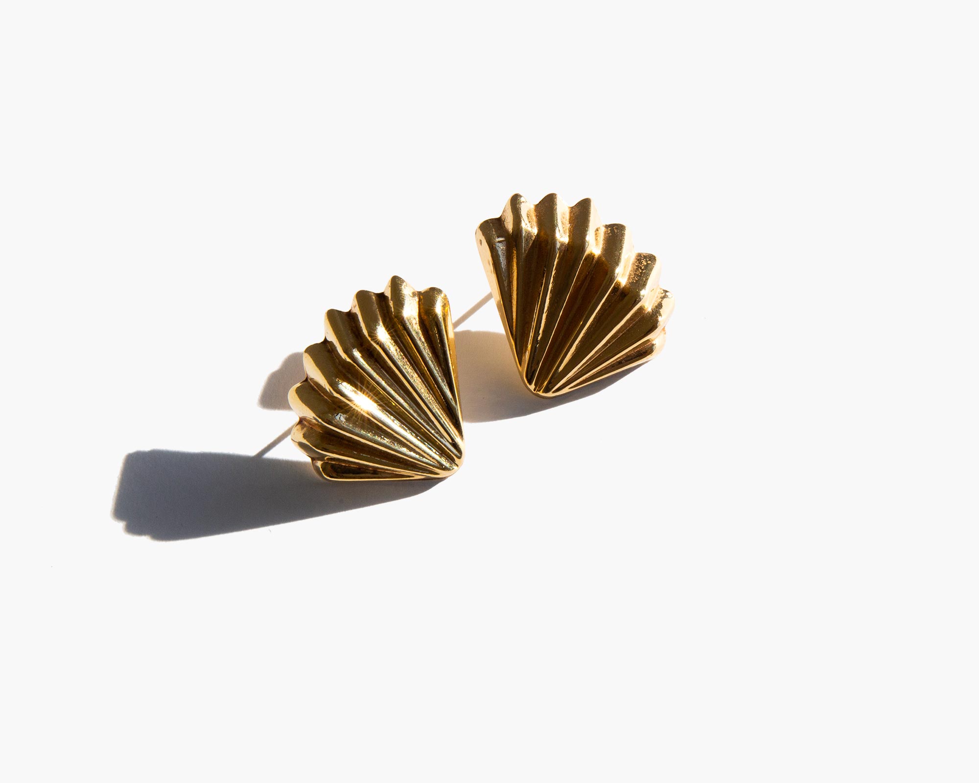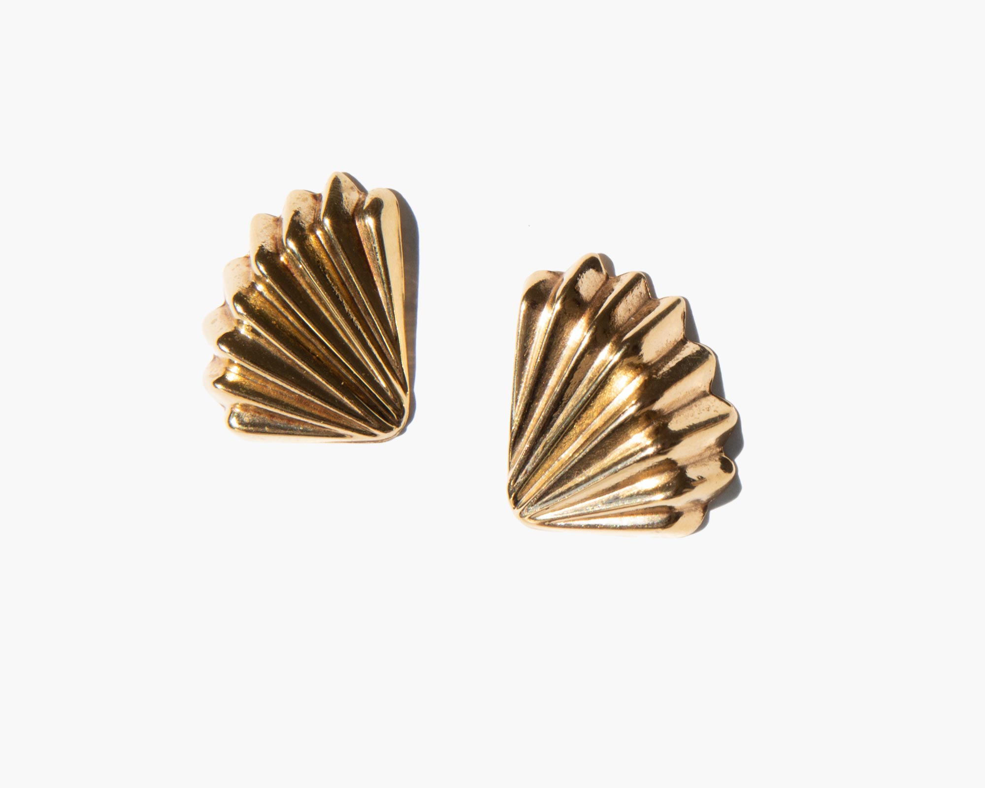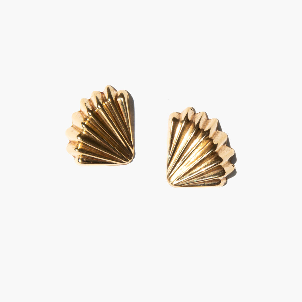 Glimmering 14k gold fan earrings.