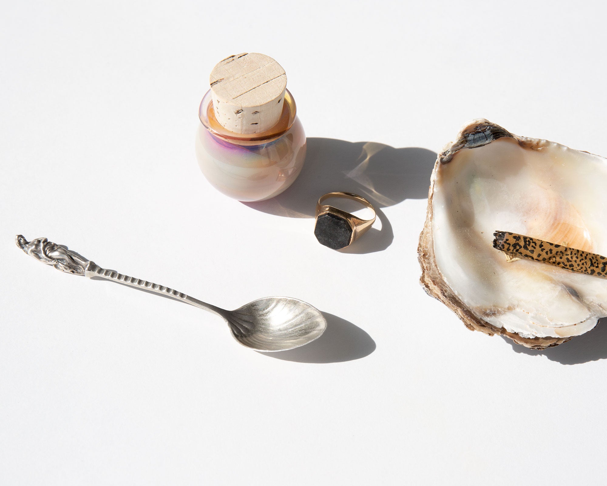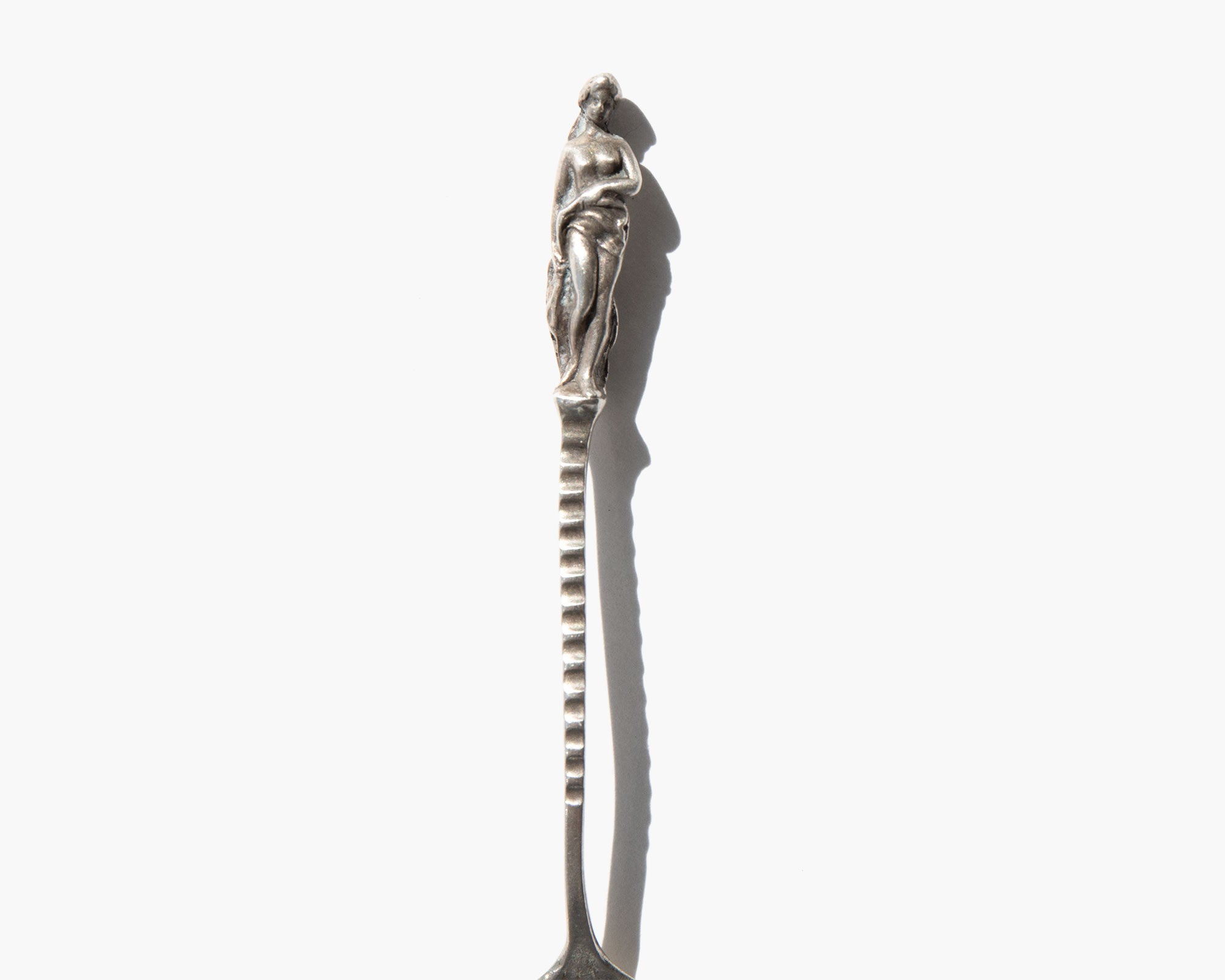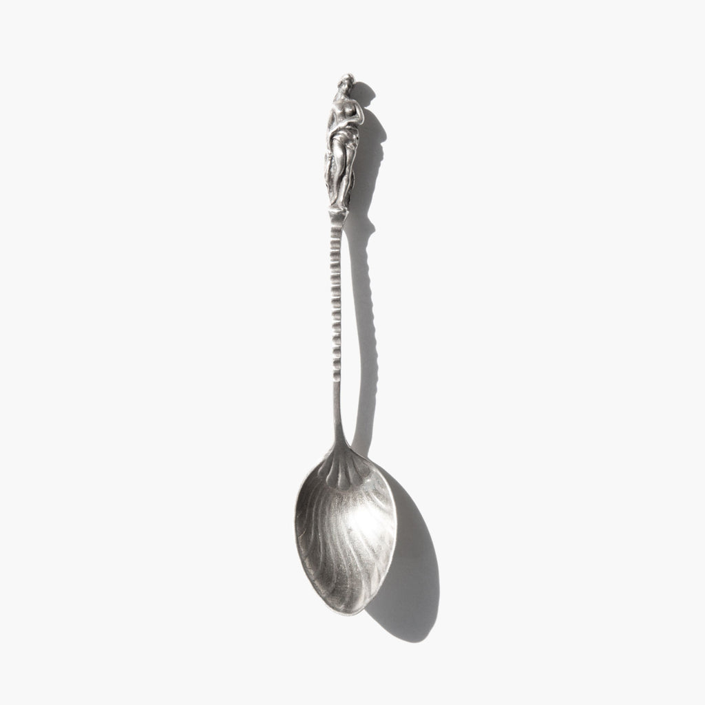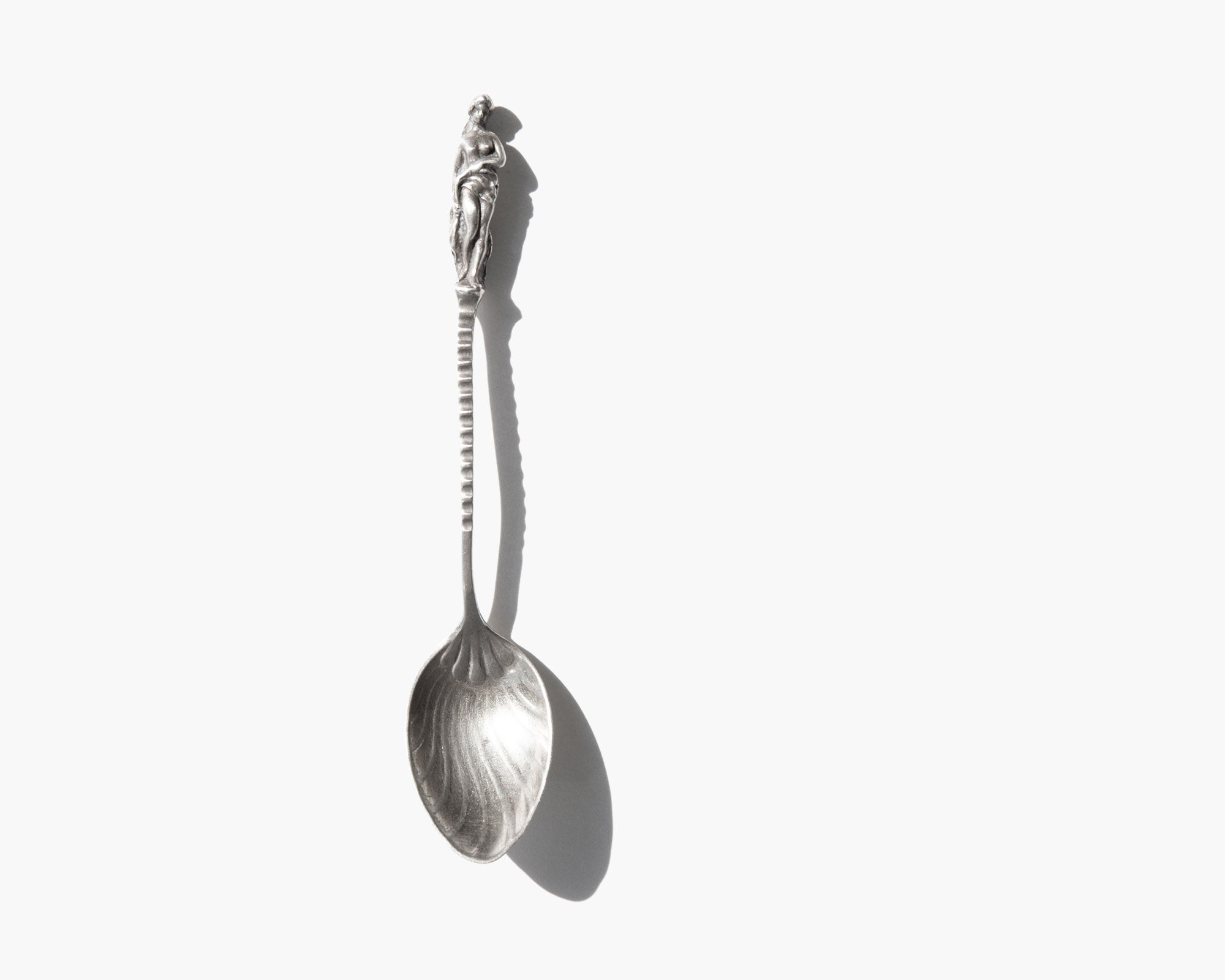 Tiny sterling silver mask spoon for the vanity or curio piece.