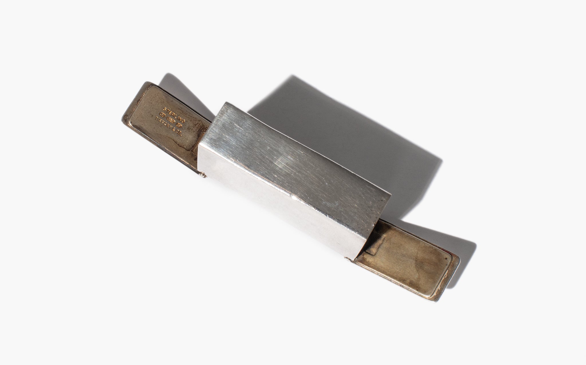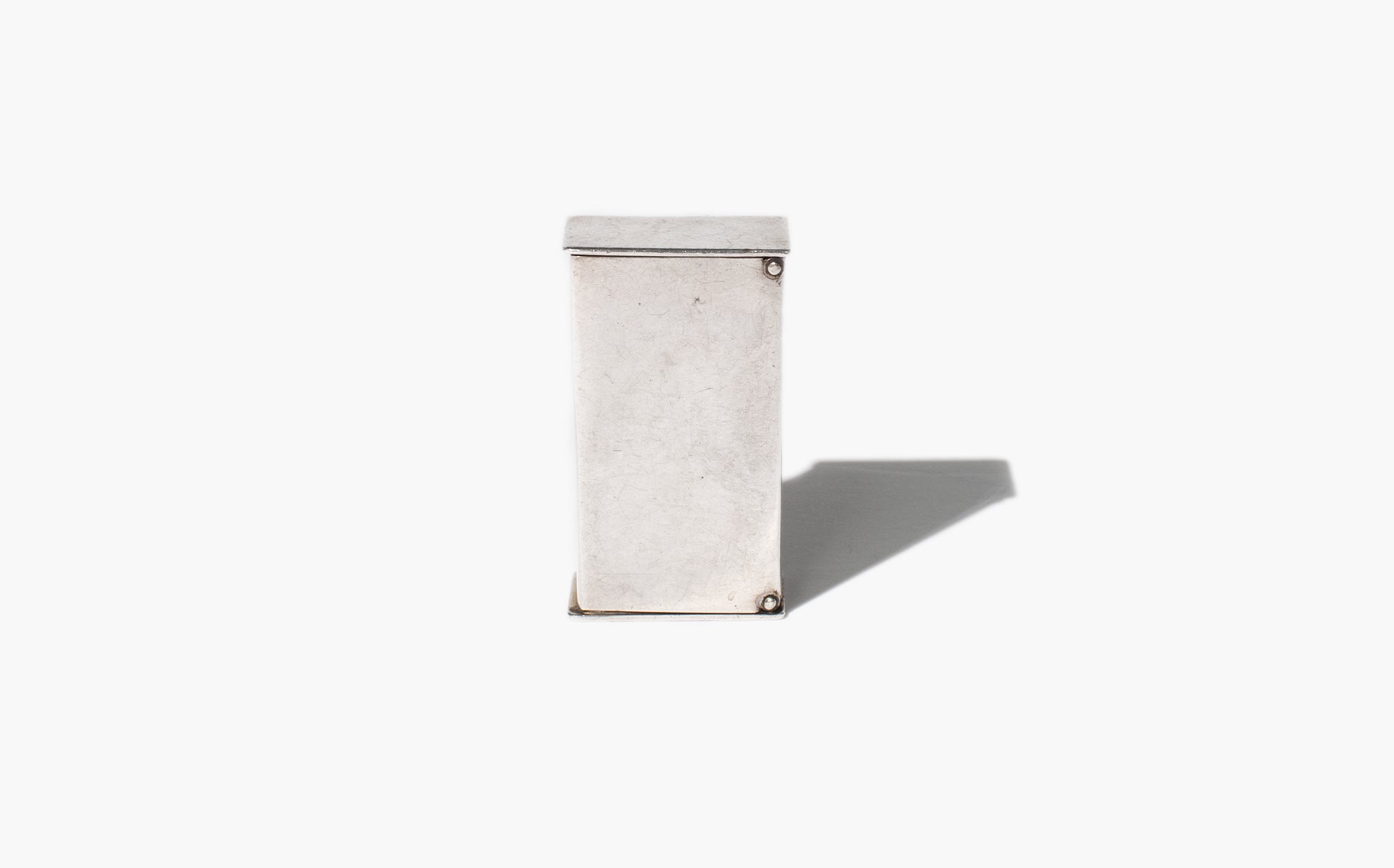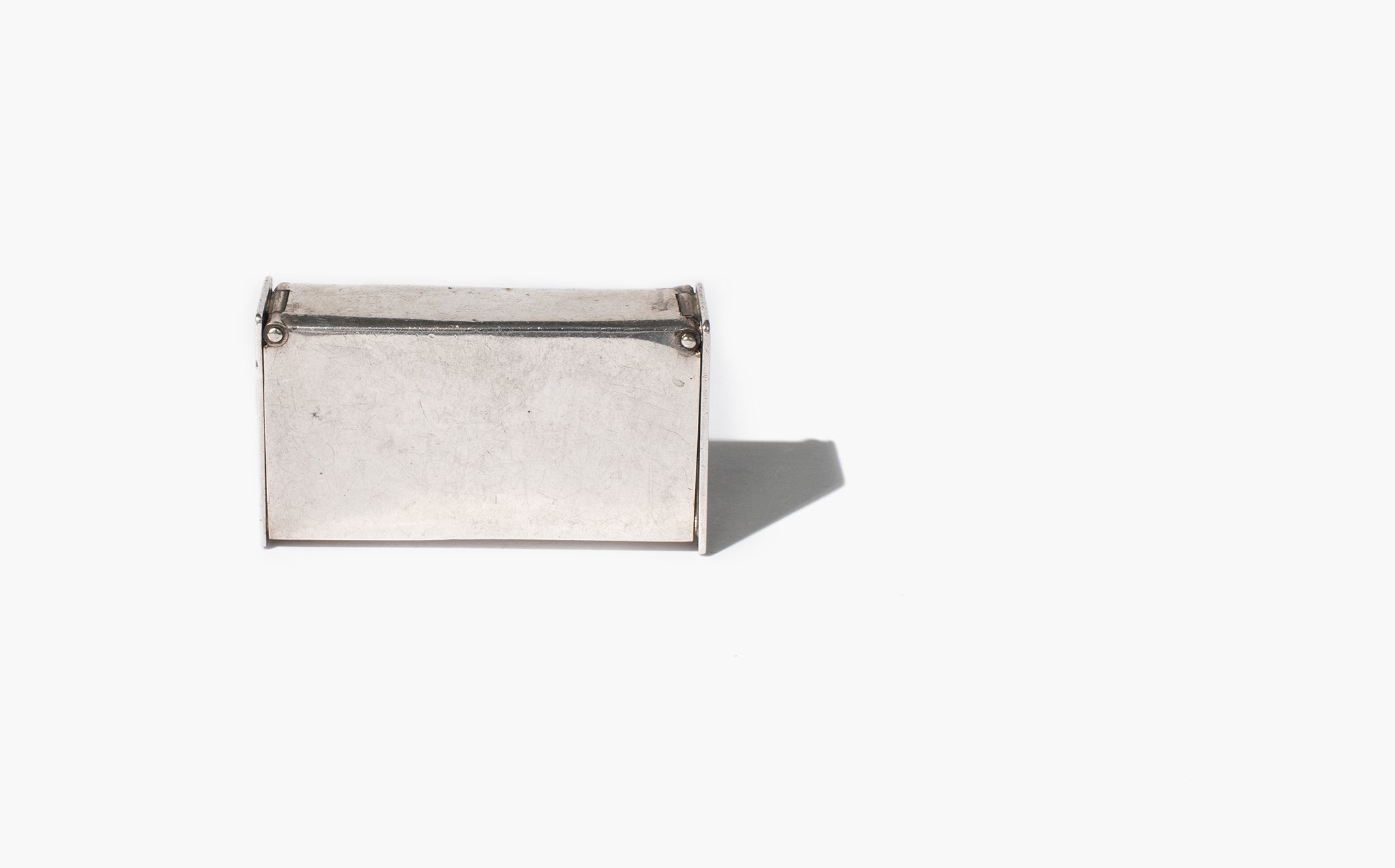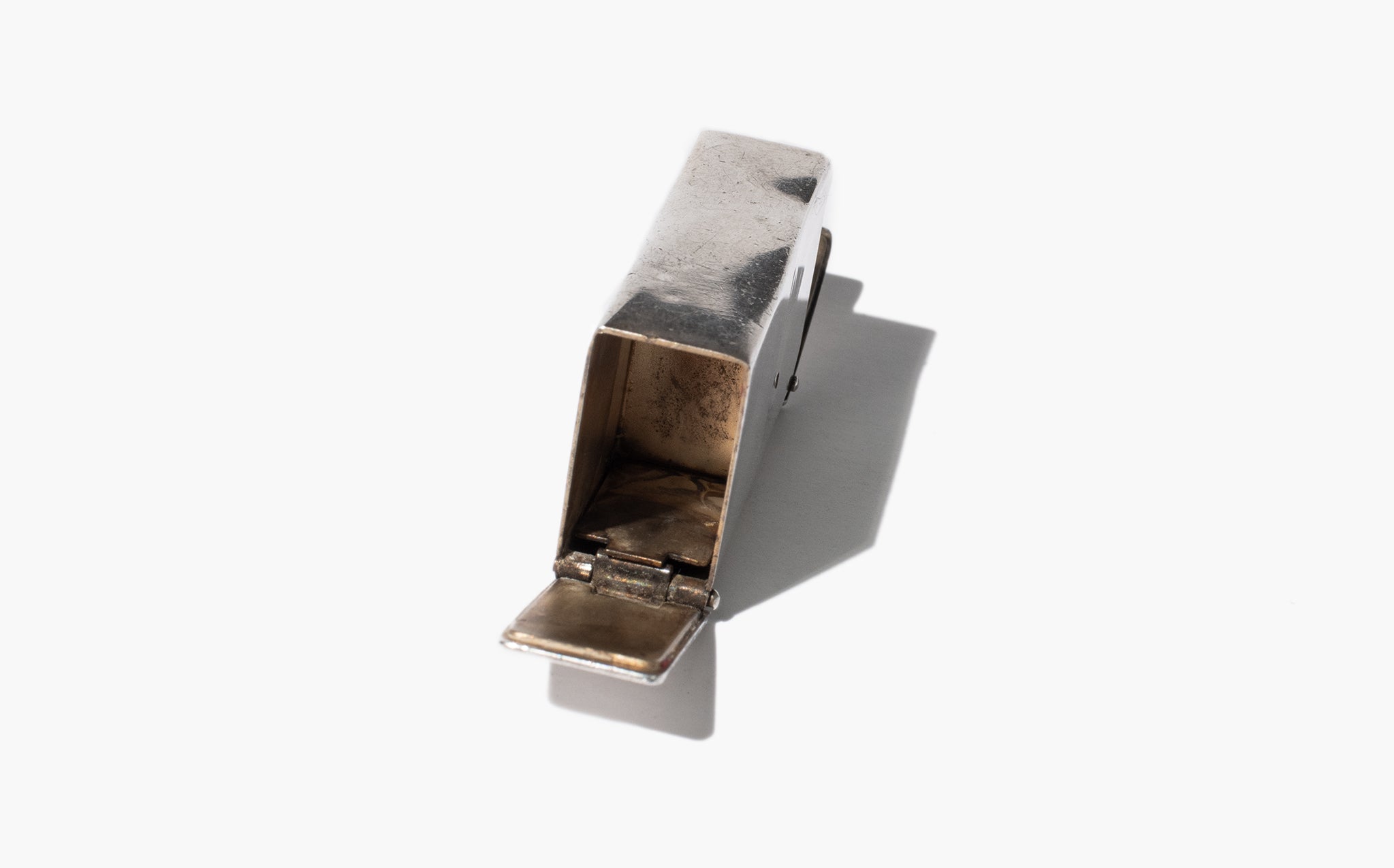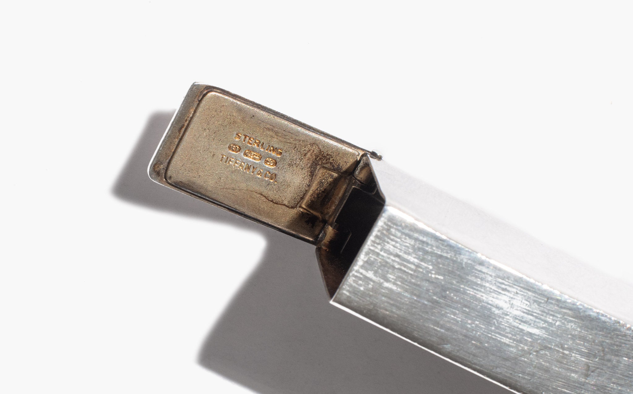 Tiffany & Co R. Blackinton sterling silver match safe with carefully wrought hinged doors at both ends. Beautifully aged and perfect for tiny treasures.